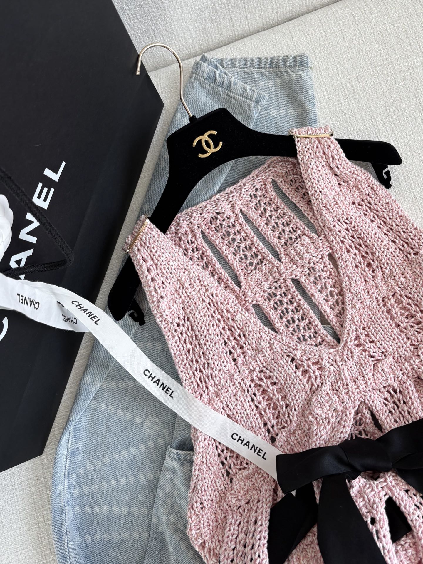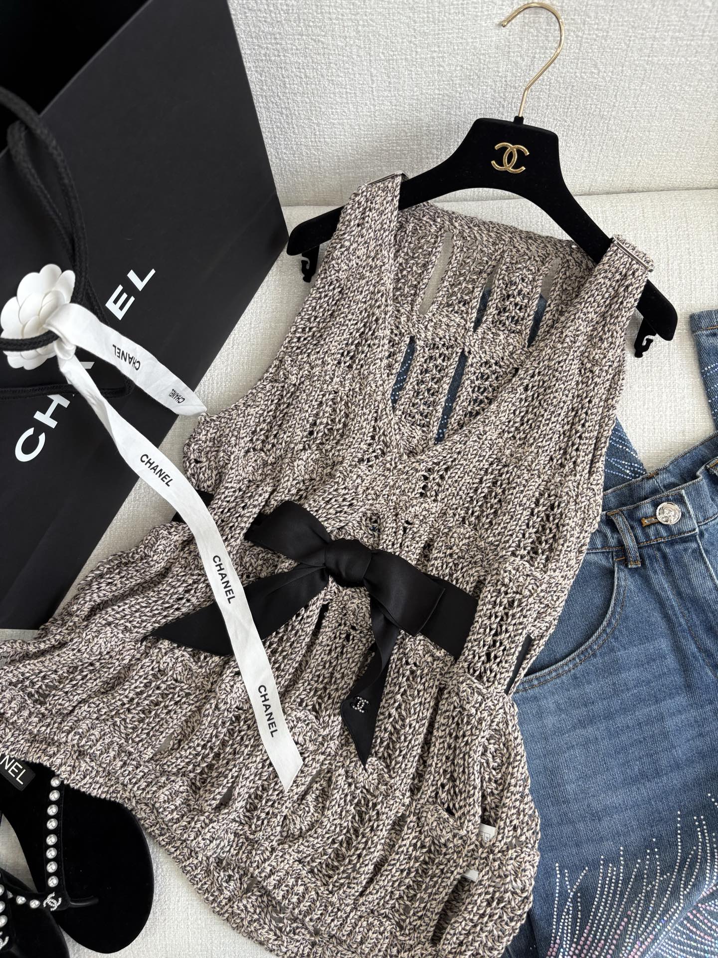 NIGO Chanel Women's Spring Summer Wispy Crochet Vest Knitted Top V-neck Sleeveless Vest T-shirt Ngvp #nigo1597