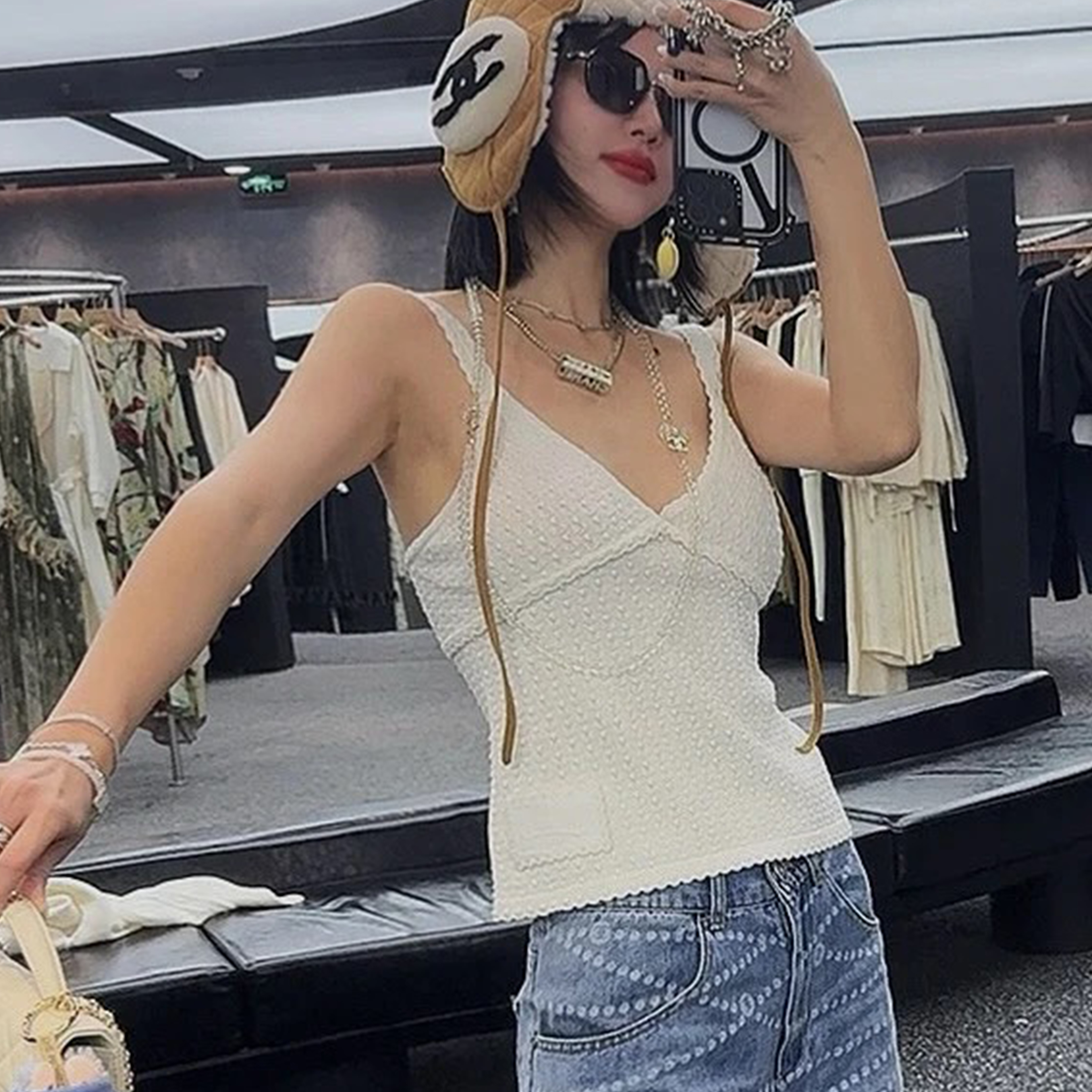 NIGO Chanel Women's Summer Knitted Solid Colour Camisole Vest Sexy Temperament Jumper Simple Versatile Tops T-shirt Ngvp #nigo1625