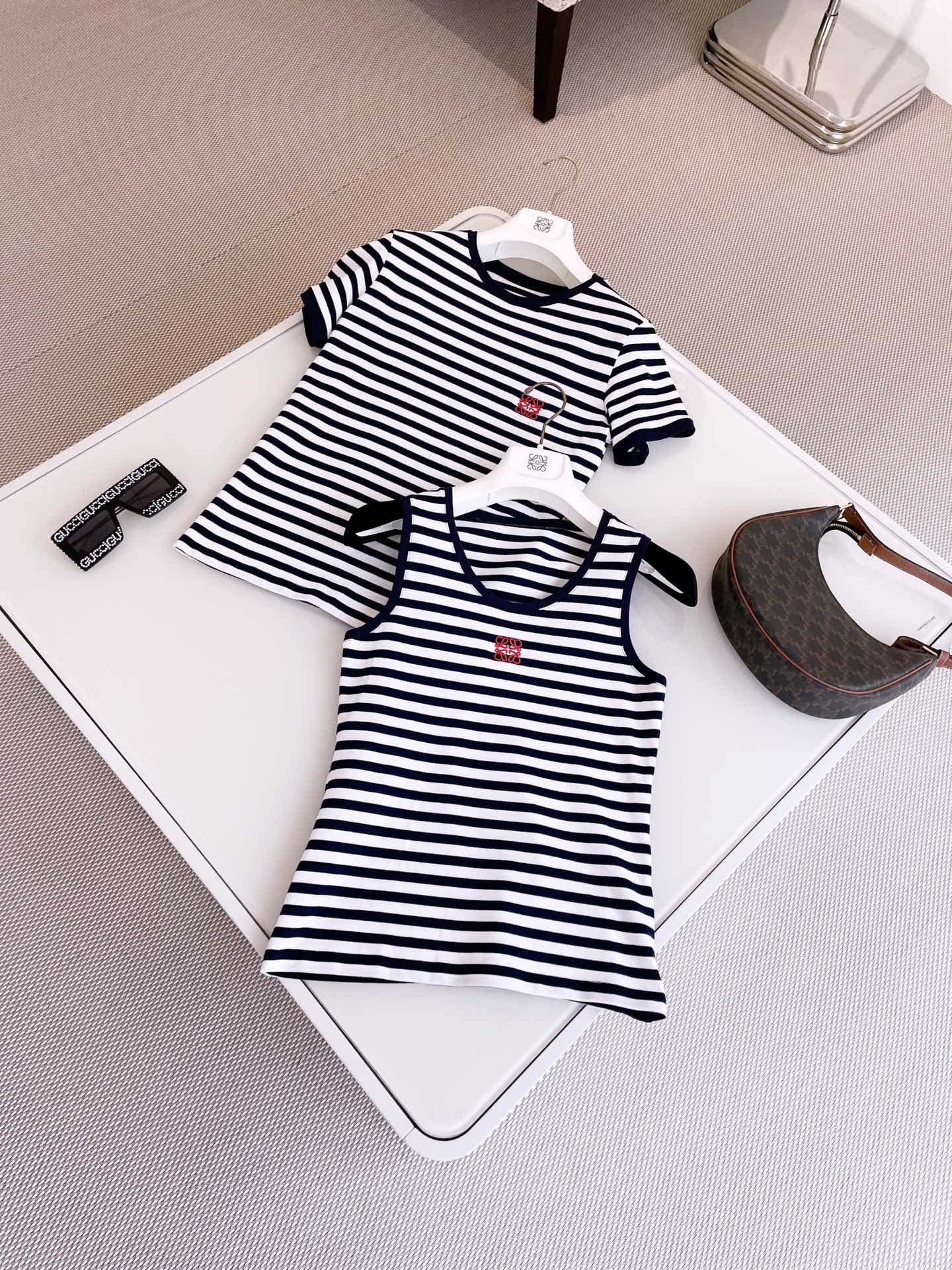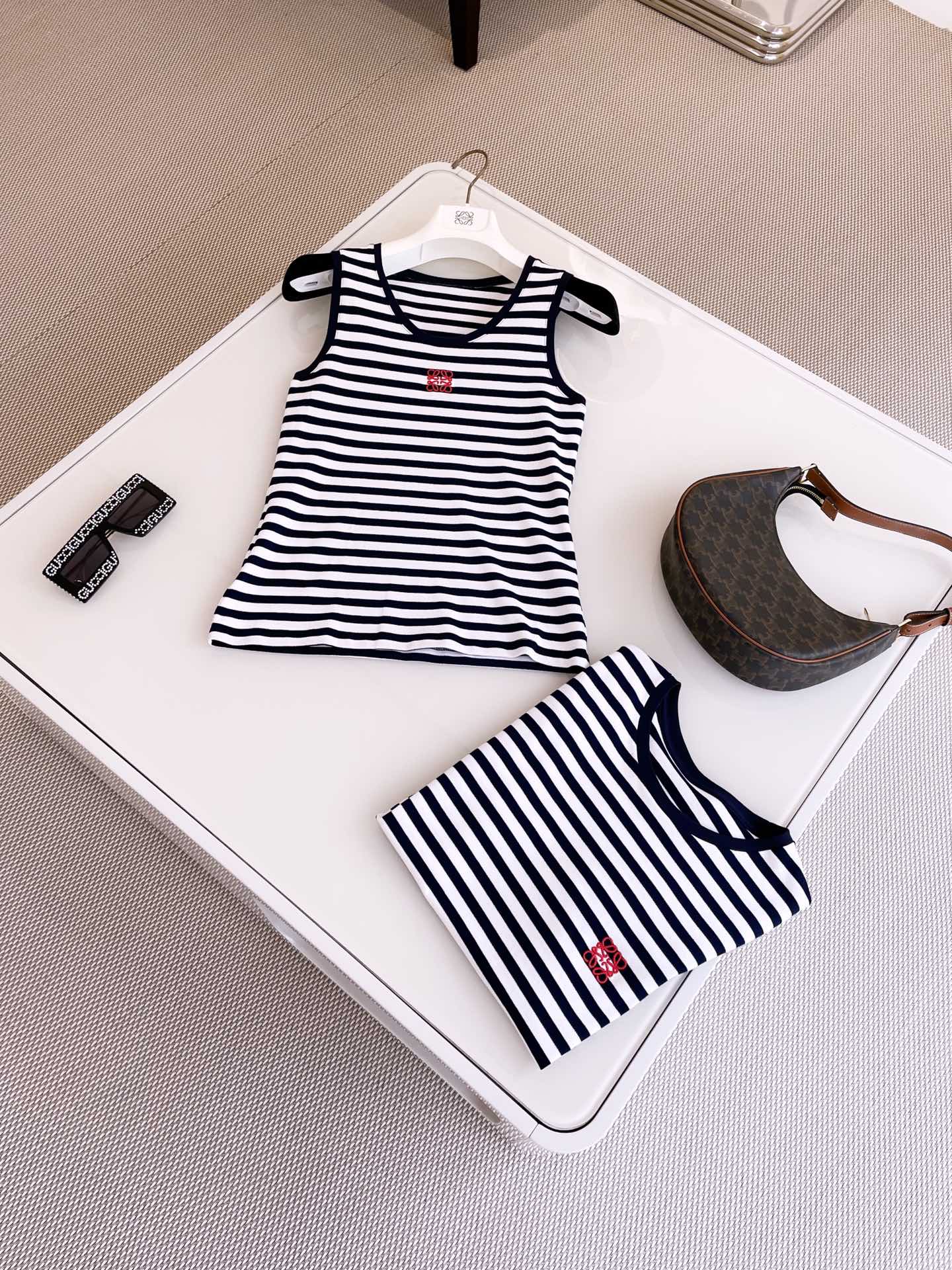NIGO Loewe Women's Summer Pattern Printed Stripe Round Neck Sleeveless Tank Top Vest #nigo99919