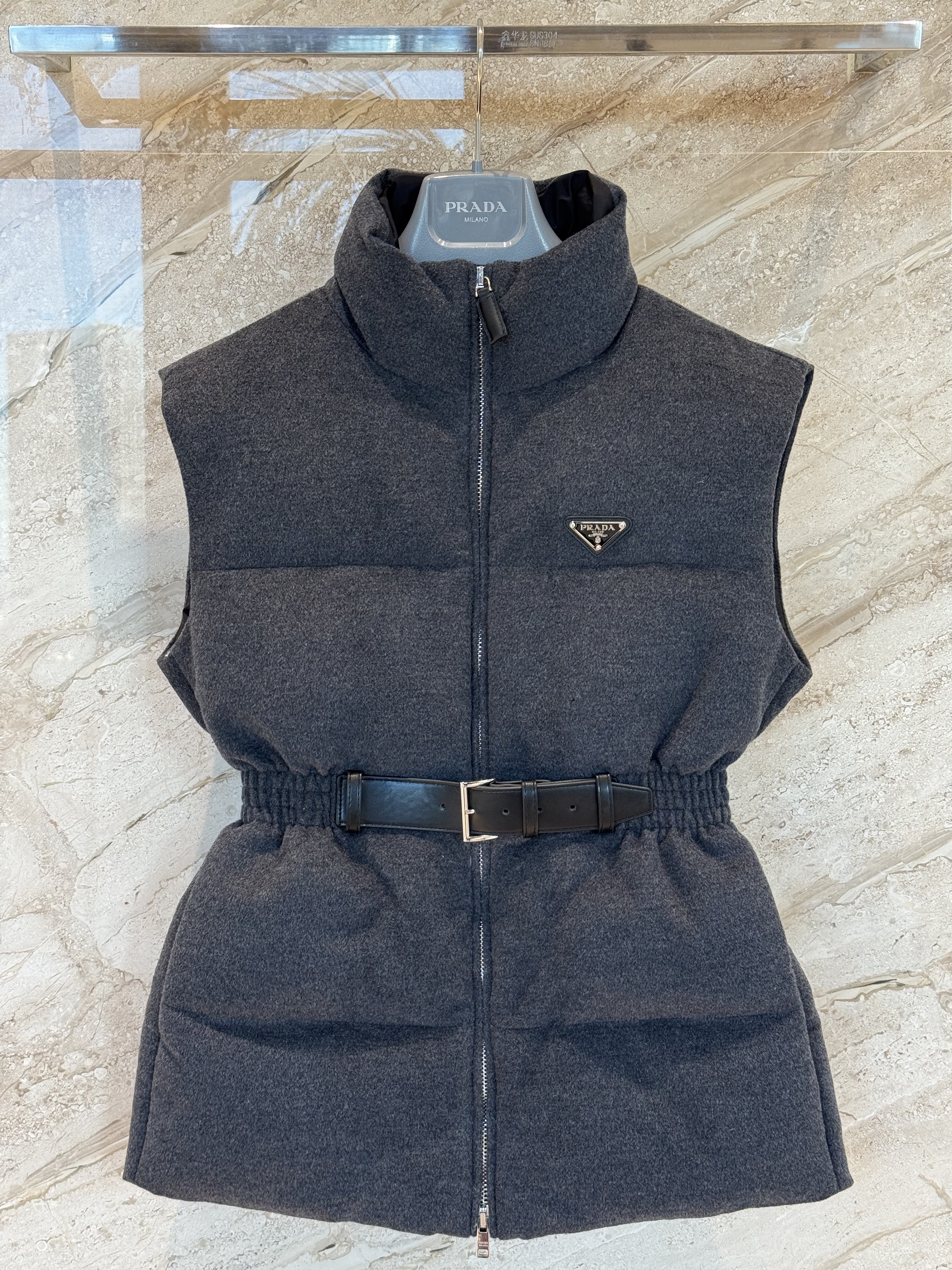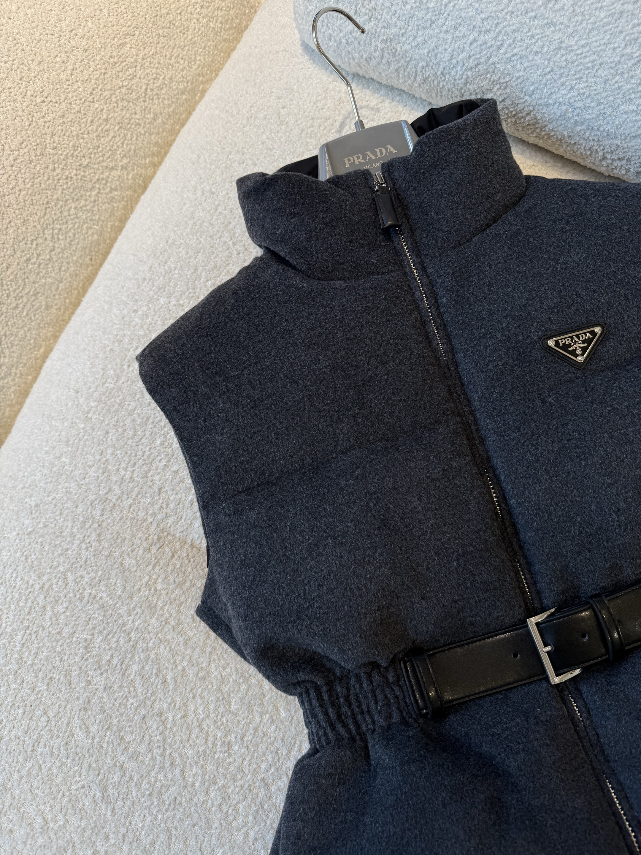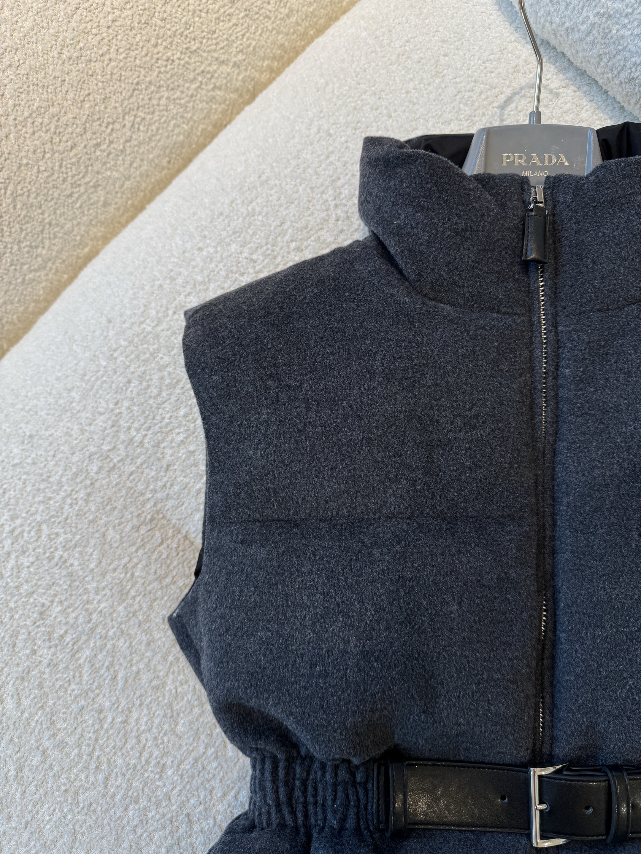 NIGO Prada Women's Winter Fashion Casual Stand Collar Zipper Waist Belt Wool Down Vest #nigo78821