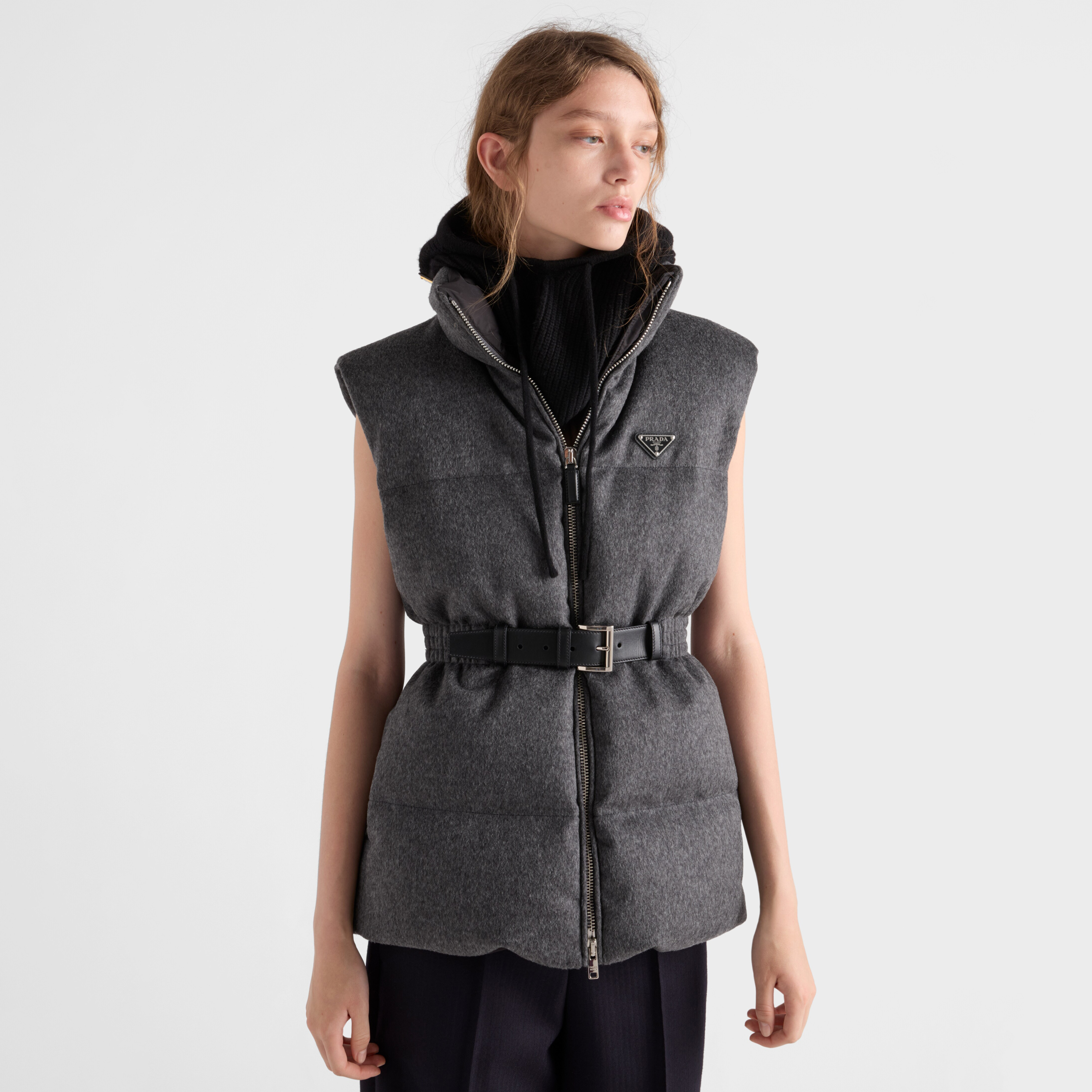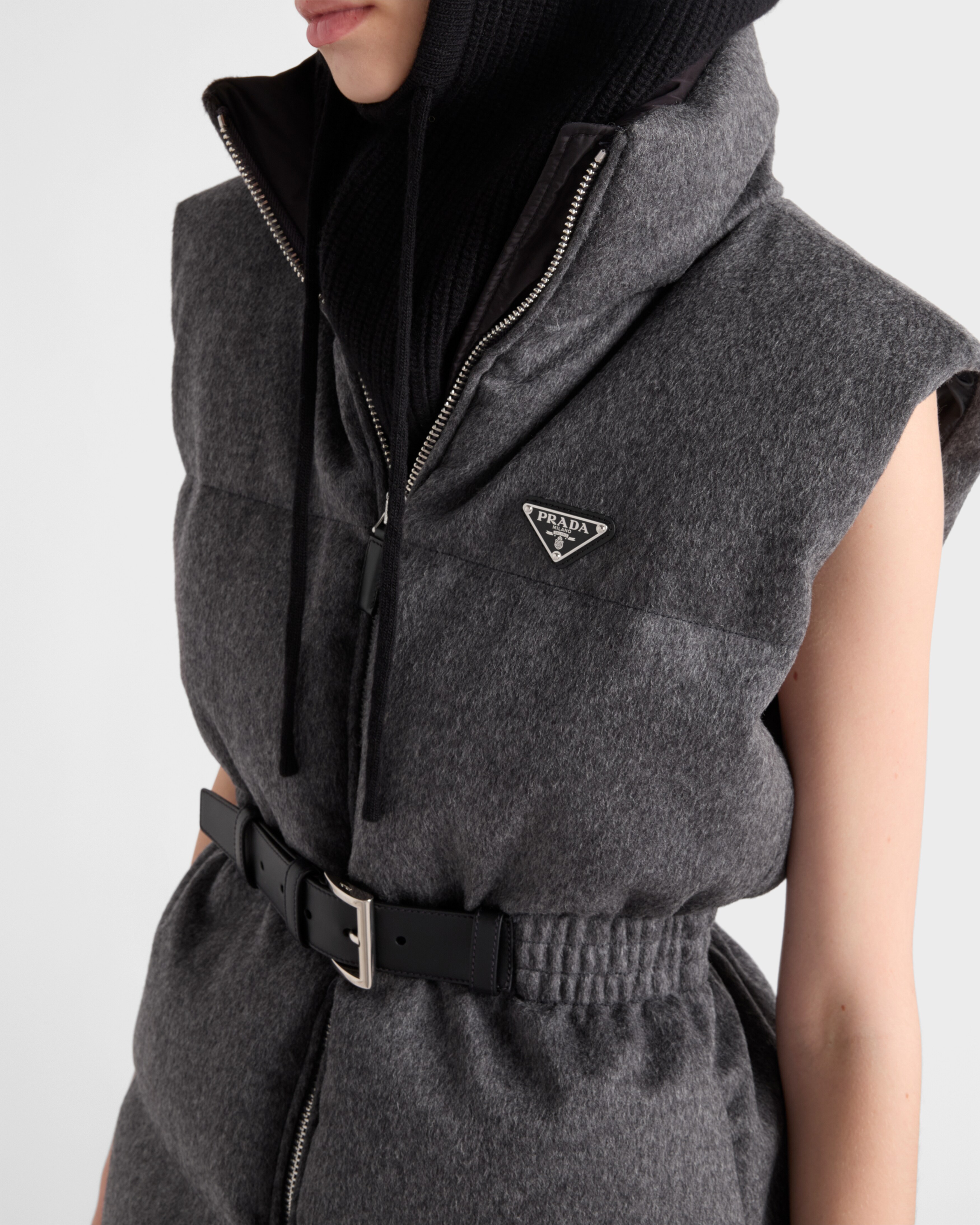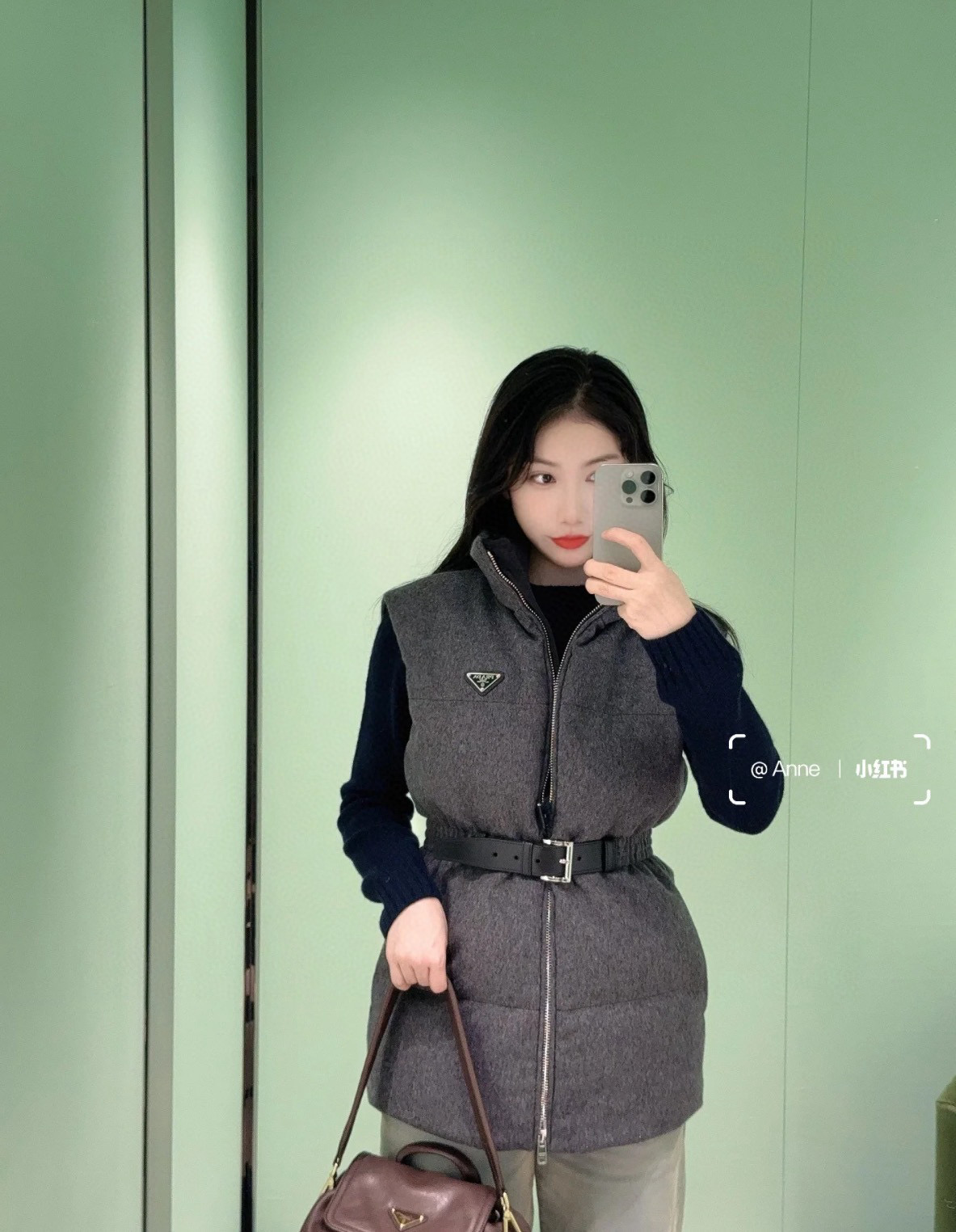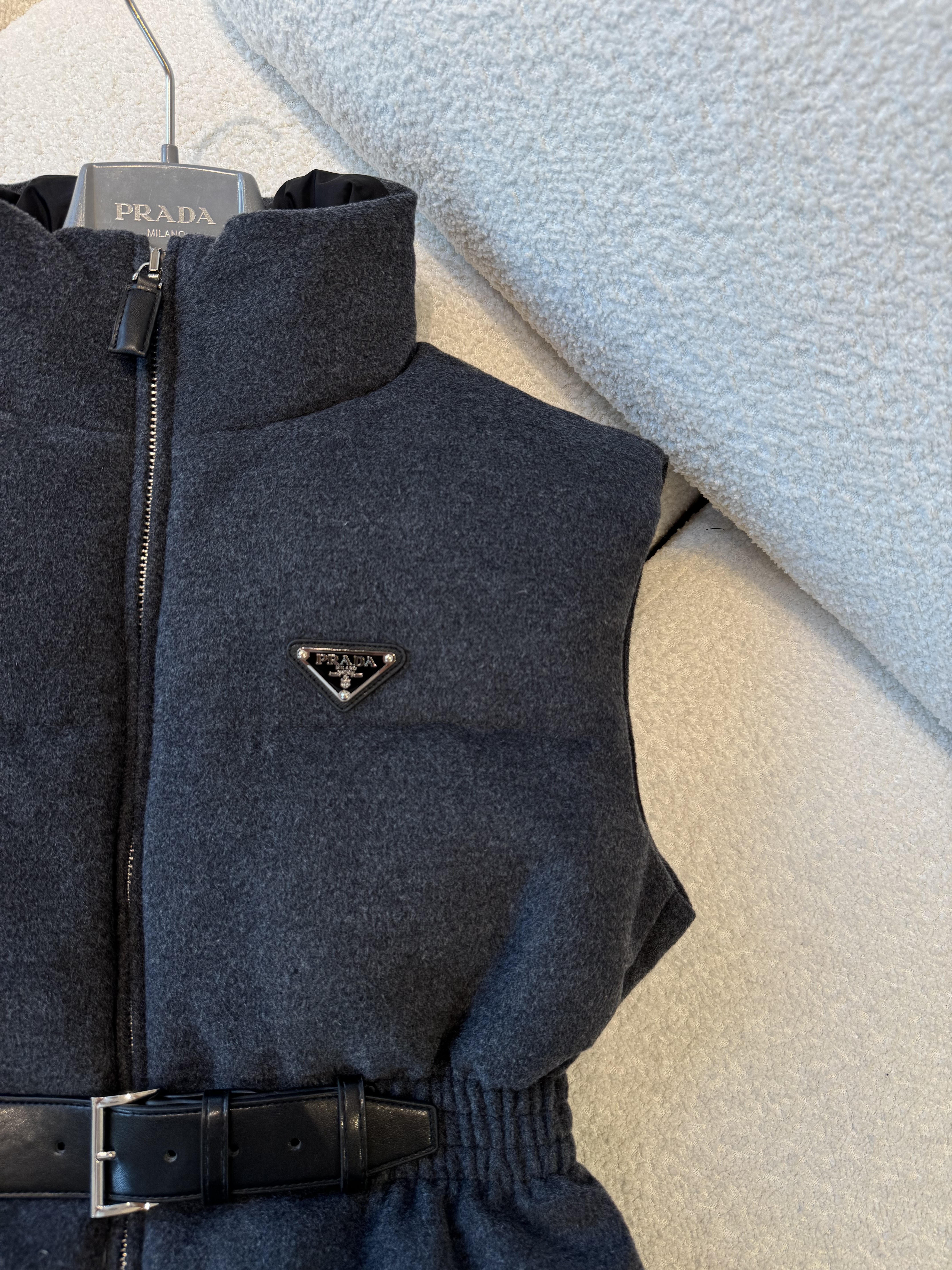 NIGO Prada Women's Winter Fashion Casual Stand Collar Zipper Waist Belt Wool Down Vest #nigo78821