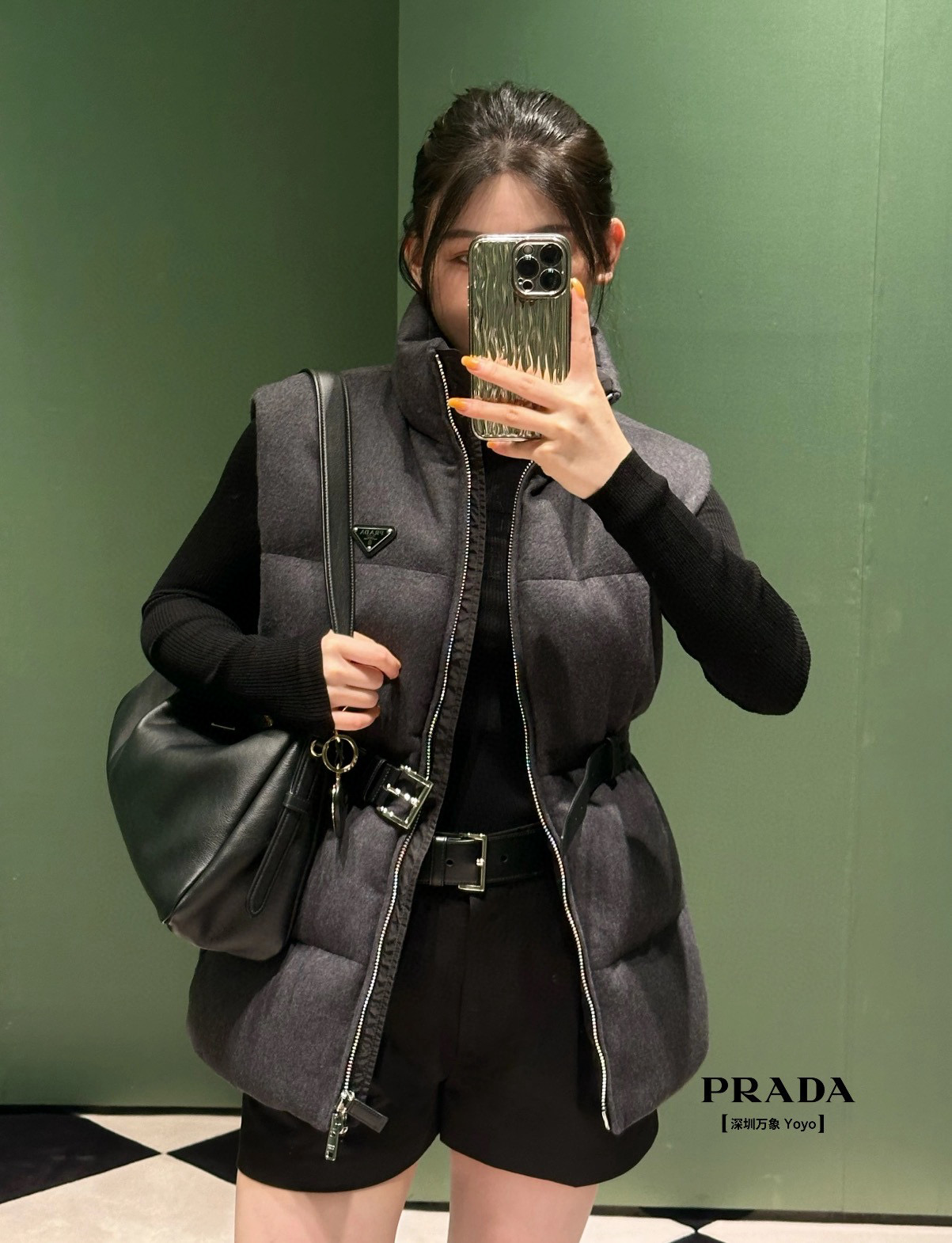 NIGO Prada Women's Winter Fashion Casual Stand Collar Zipper Waist Belt Wool Down Vest #nigo78821