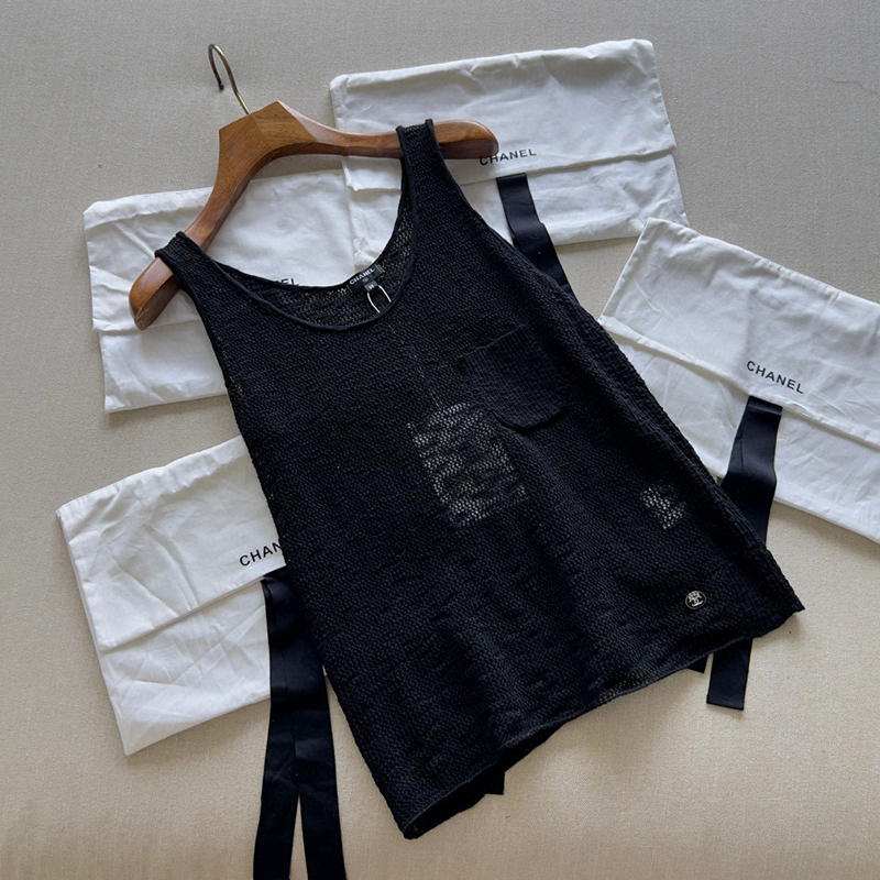 NIGO Chanel Women's Summer High Street Hollow Mesh Solid Color Round Neck Cotton Sleeveless Tank Top Vest Ngvp #nigo1923