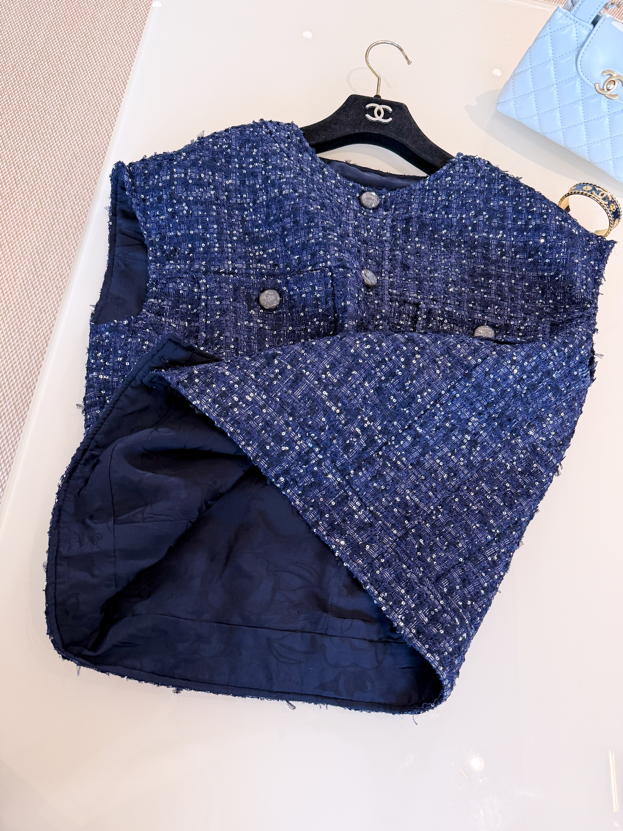 NIGO Chanel Women's Spring And Summer Sequins Tweed Single-Breasted Solid Color Round Neck Sleeveless Vest Ngvp #nigo1933