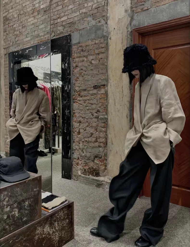 NIGO Y/Project Men's And Women's Spring And Autumn Black And Grey Twisted Pants Three-dimensional Tailoring Suit Trousers Loose Drape Dragging Casual Trousers Ngvp #nigo1867