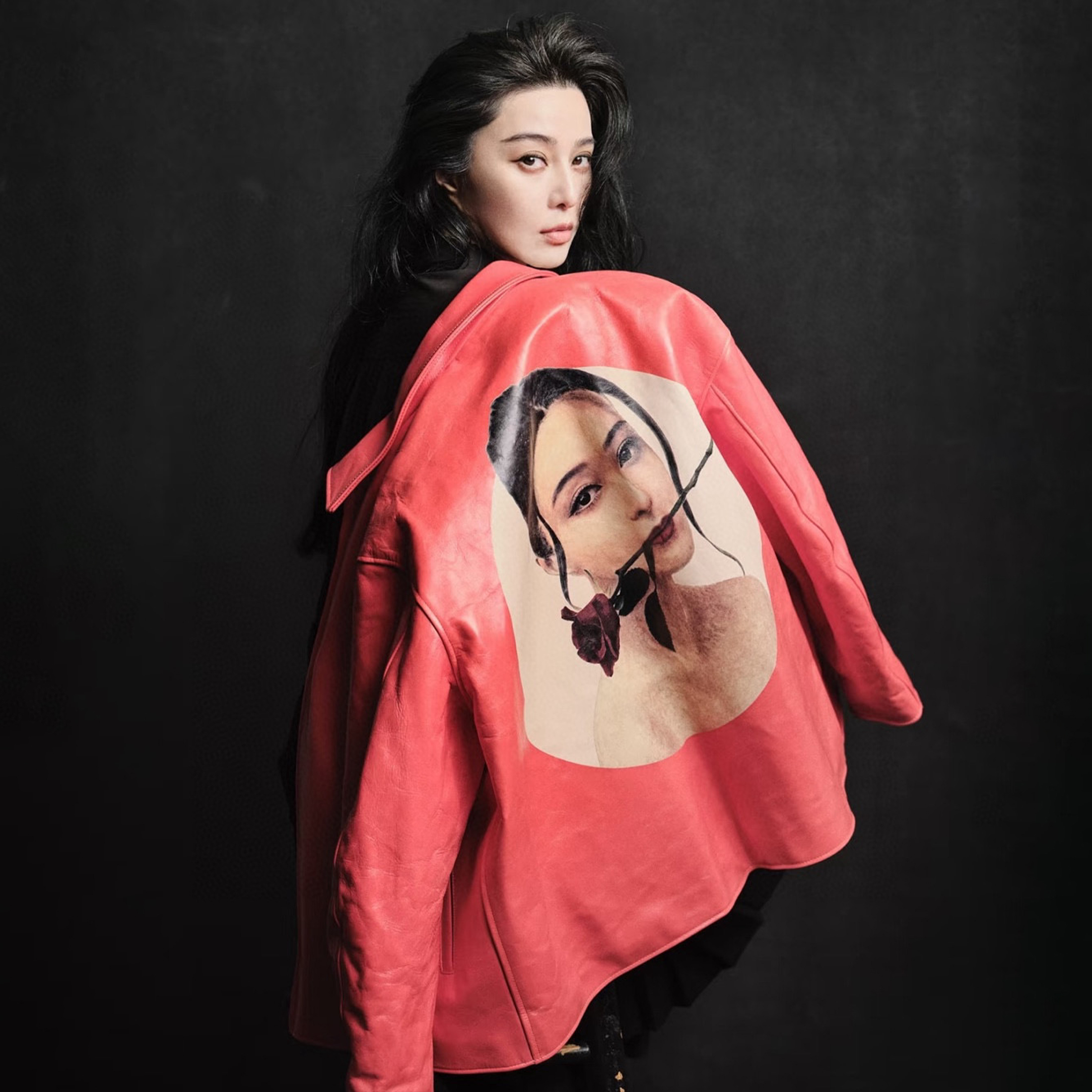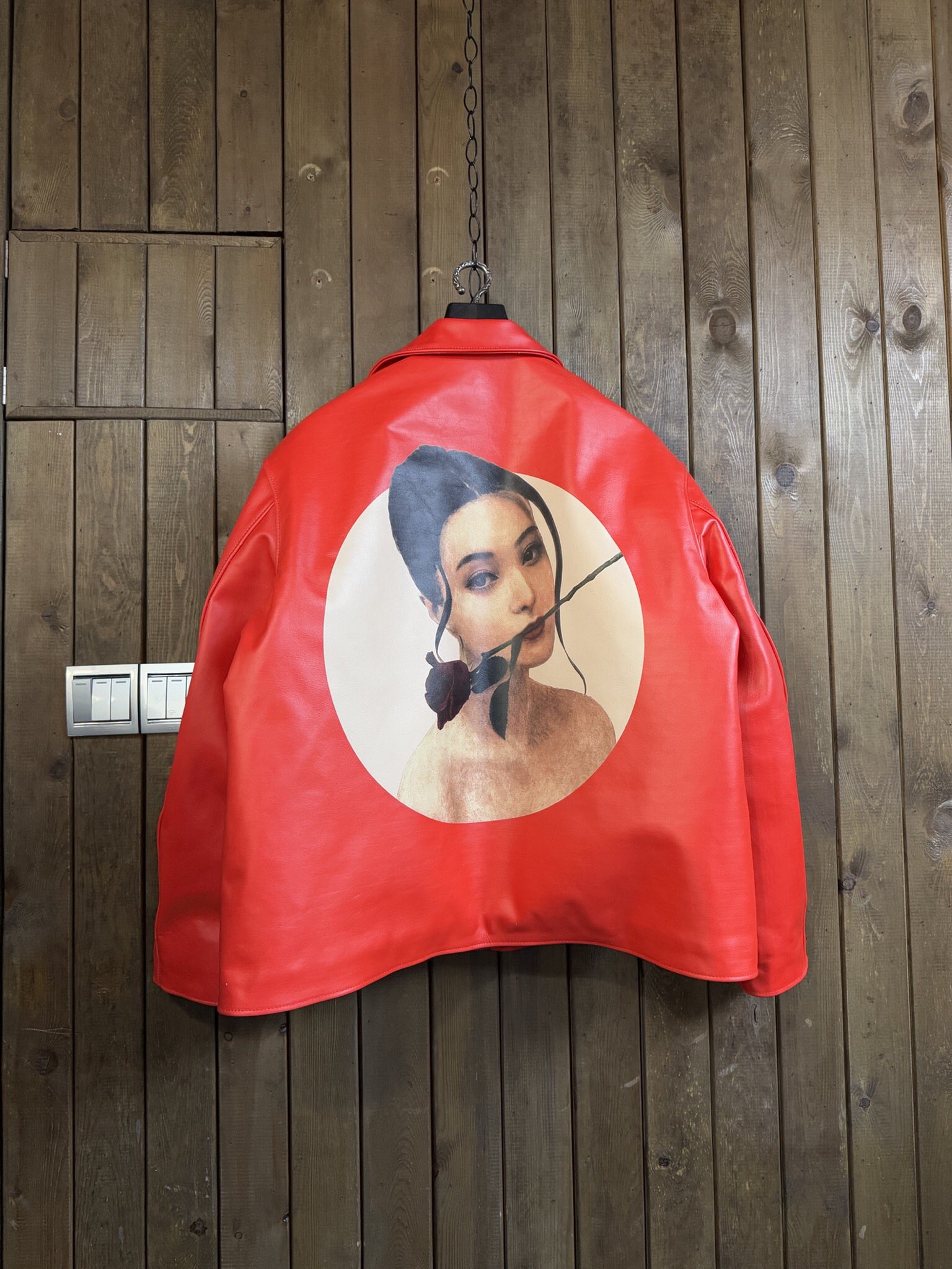 NIGO Yohji Yamamoto Pour Homme X Fan Bingbing Portrait Leather Jacket Men's Women's Autumn/winter Fashion Red Lapel Leather Zip Jacket Ngvp #nigo9866