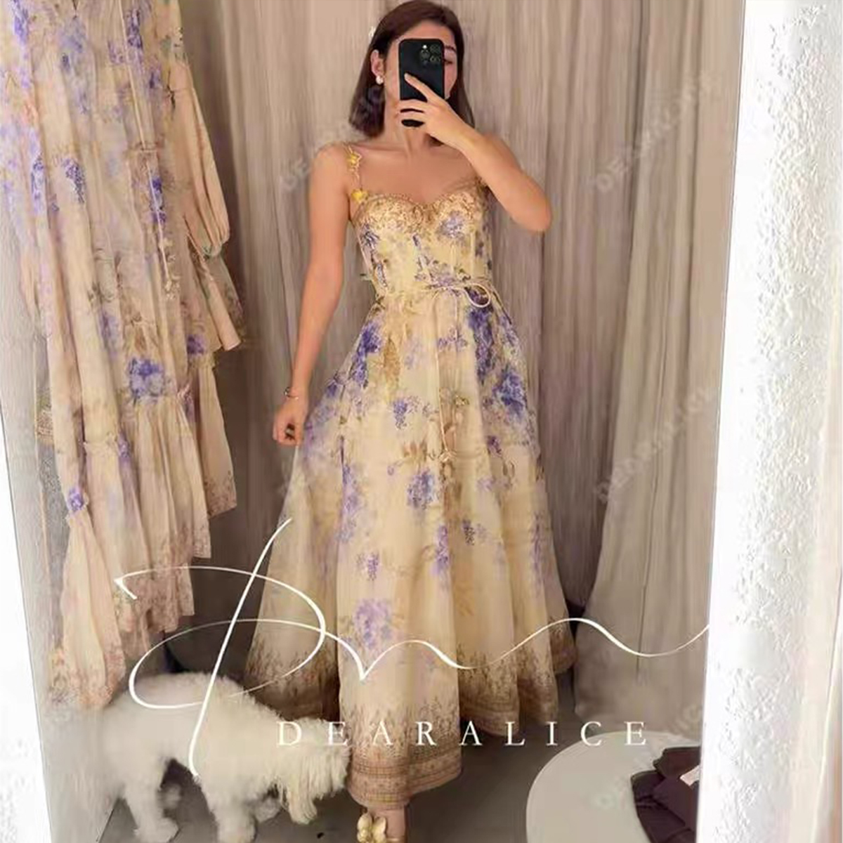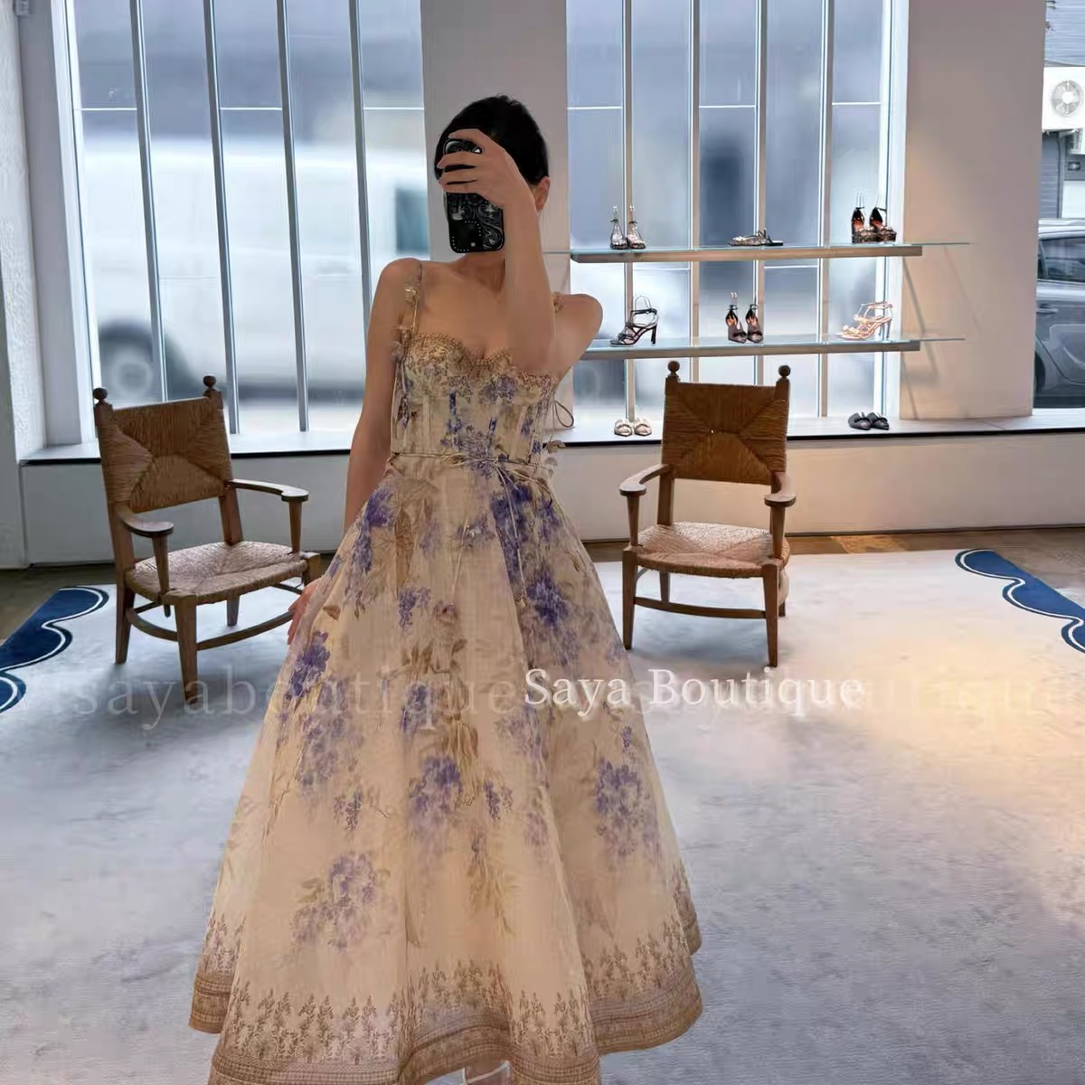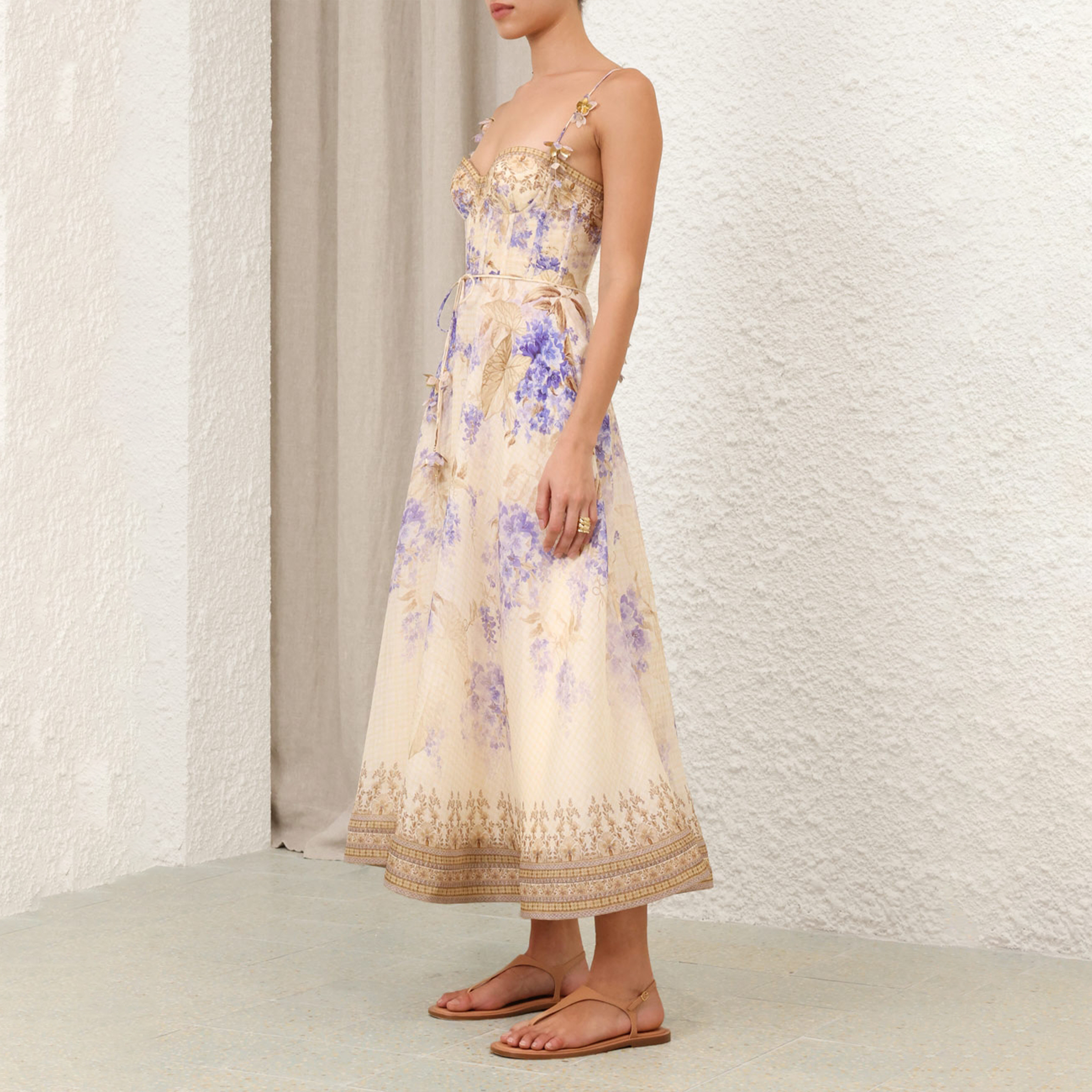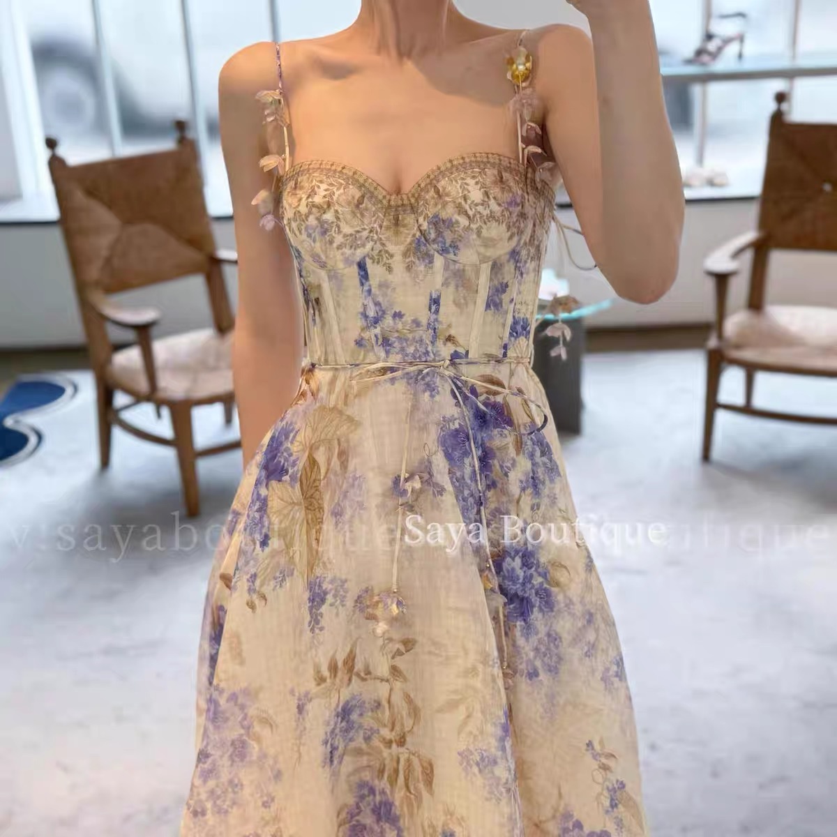 NIGO Zimmermann Dawning Picnic Dress Women's Spring And Summer Silk Linen Mid-length Dress Heart-shaped Neckline Spaghetti Straps Large Hem Dress Fashionable Temperament Elegant Luxury Dresses #nigo81131