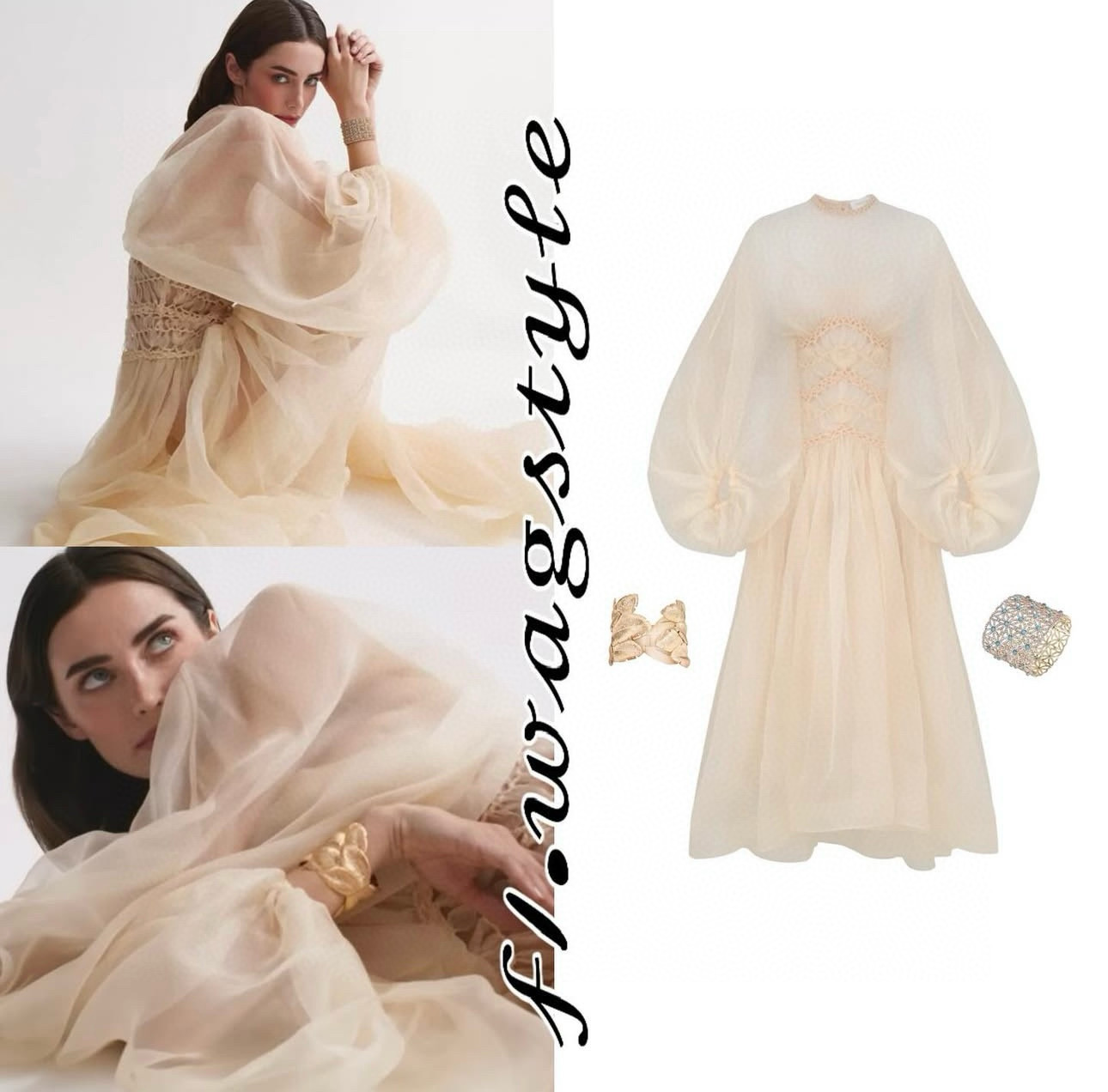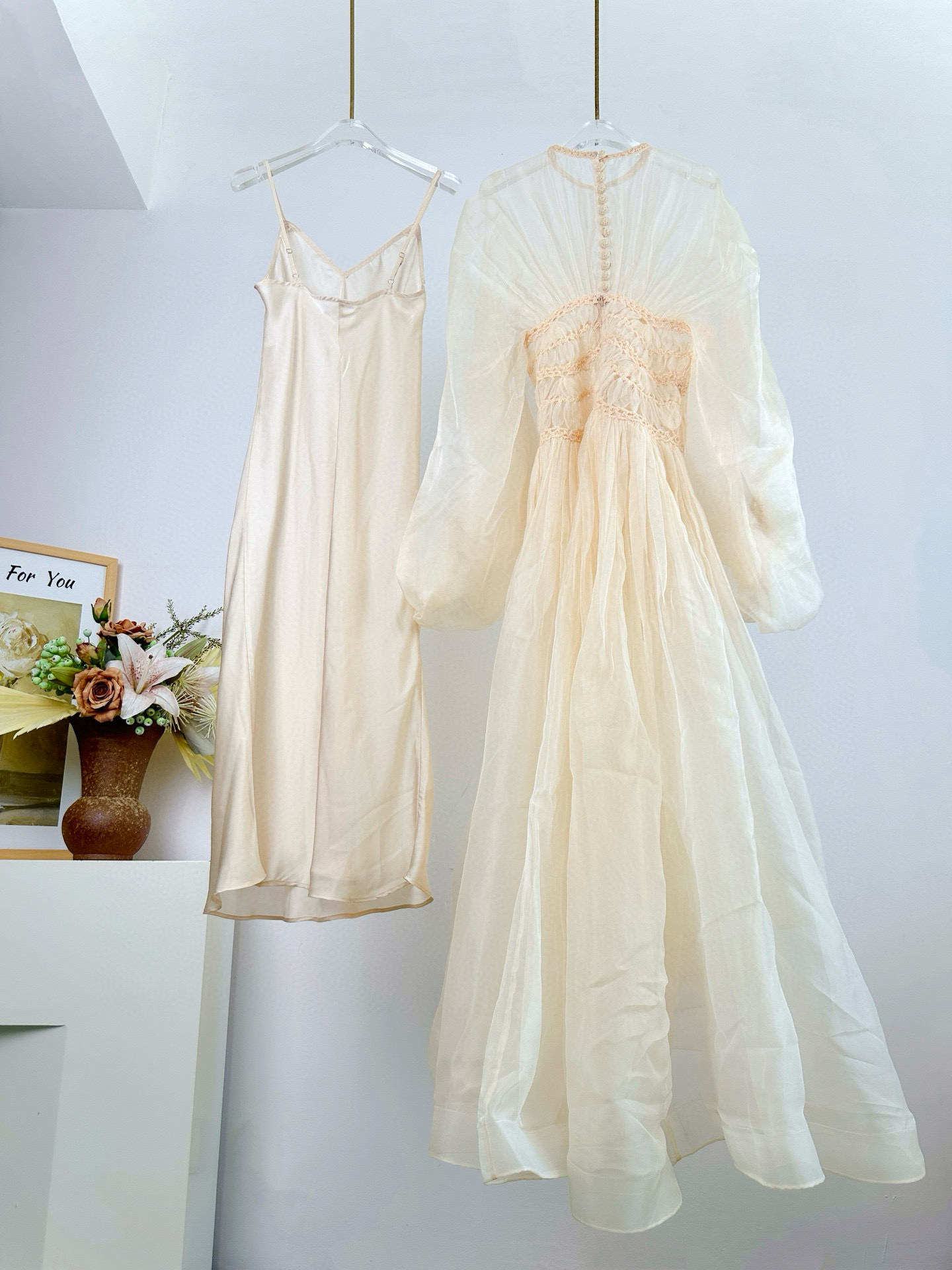 NIGO Zimmermann Illuminate Macrame Gown Women's Spring And Summer Tulle Transparent Bubble Sleeve Hand Crocheted Fashion Temperament Elegant Long Sleeve Dresses Ngvp #nigo1889