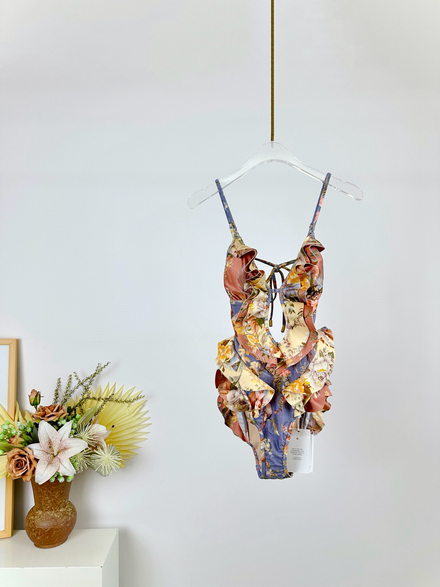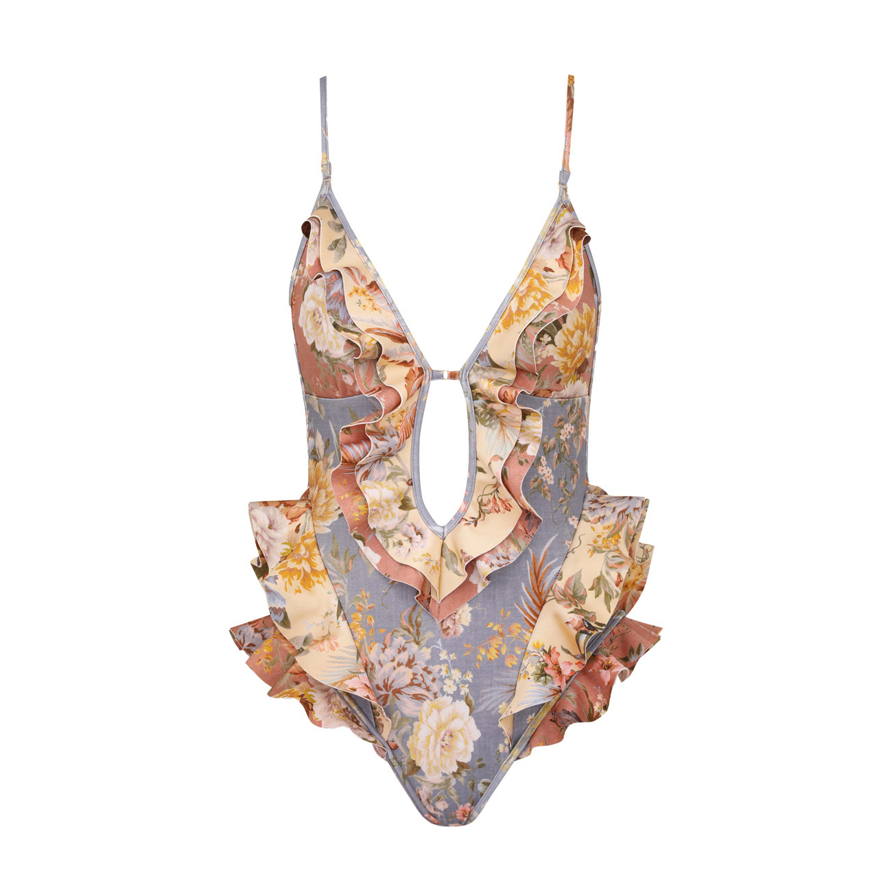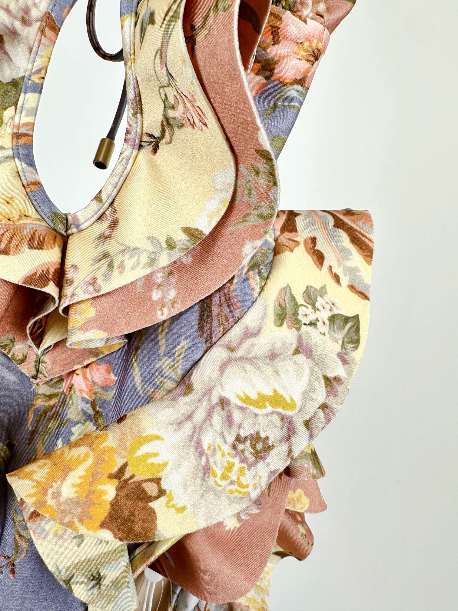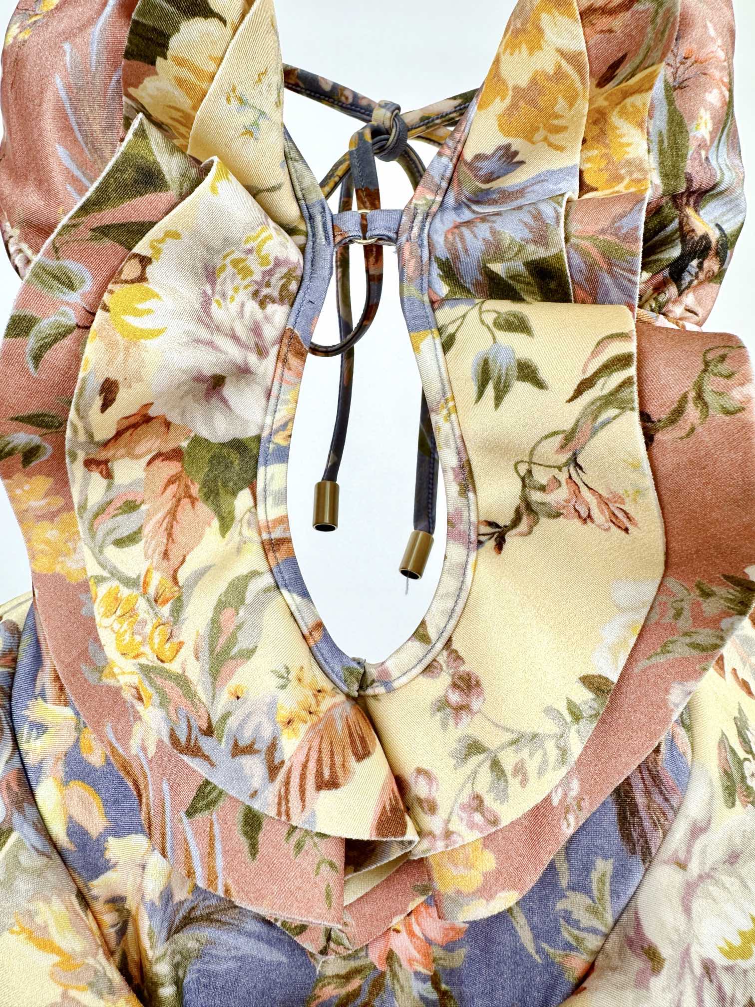 NIGO Zimmermann Women's Patchwork Chartreuse Ruffle Halter One-piece Swimsuit #nigo75153