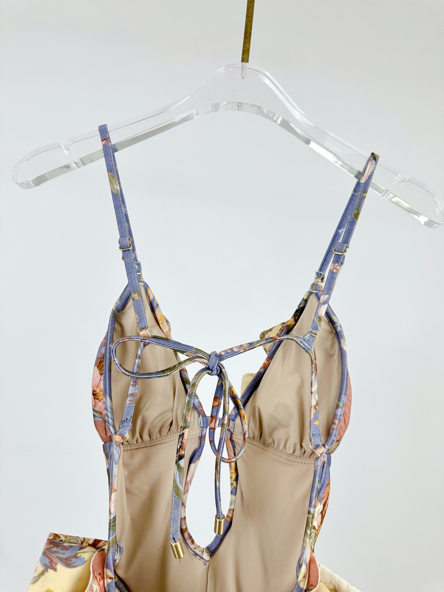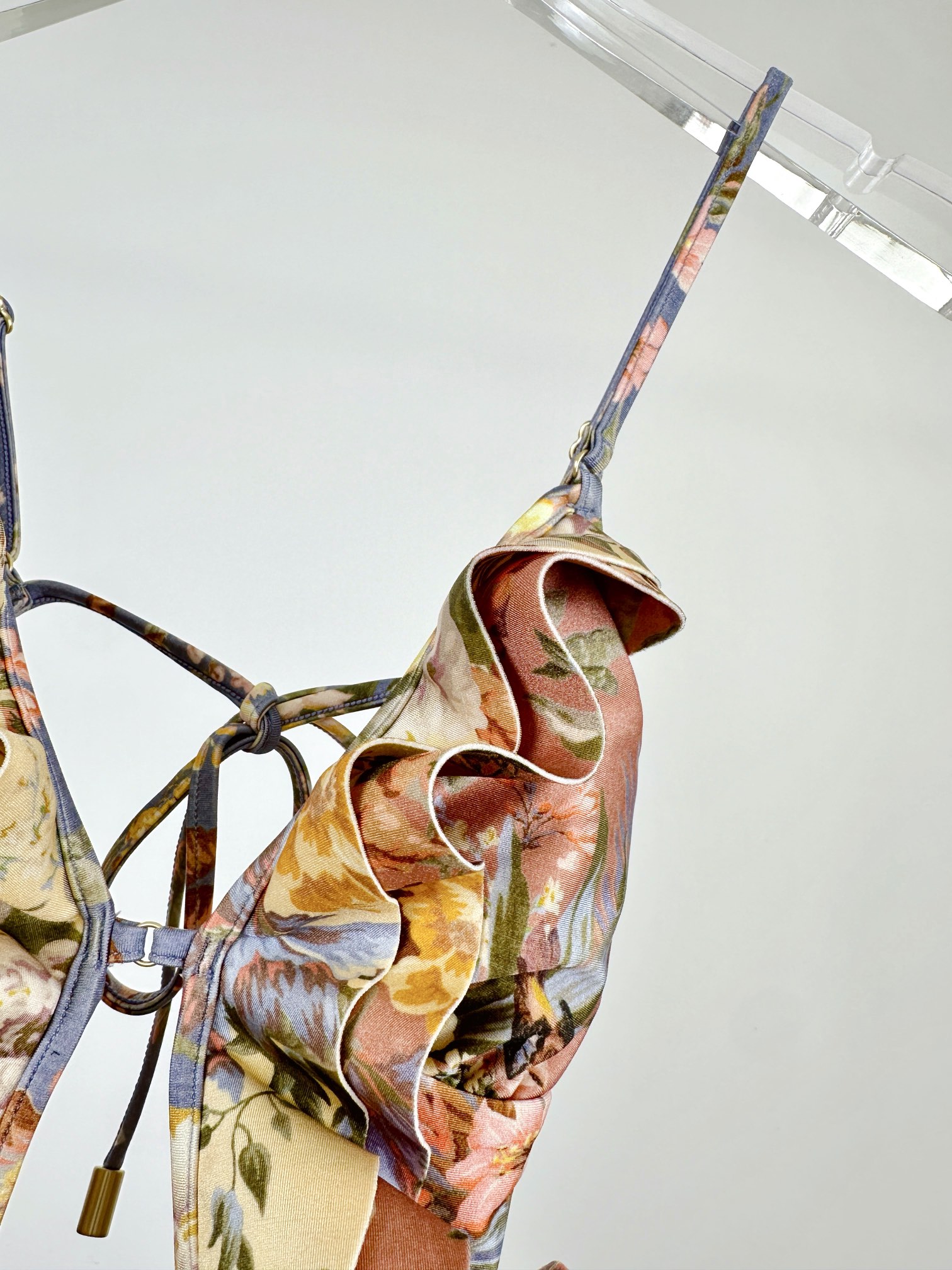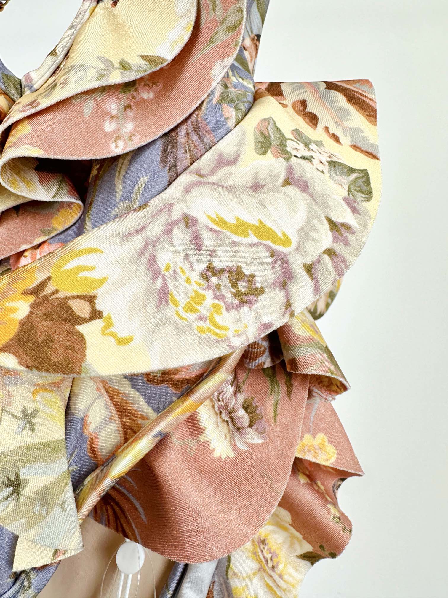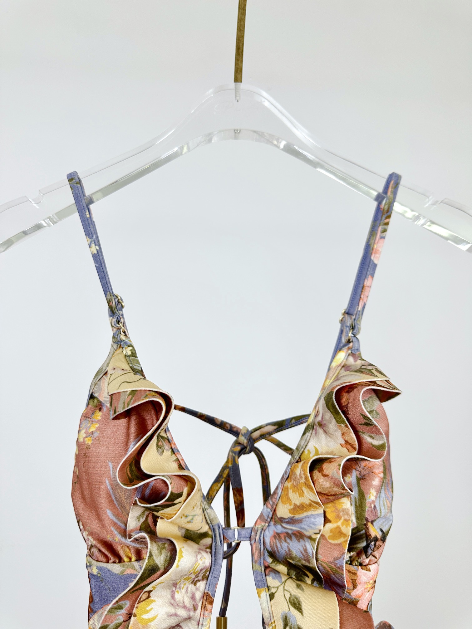 NIGO Zimmermann Women's Patchwork Chartreuse Ruffle Halter One-piece Swimsuit #nigo75153