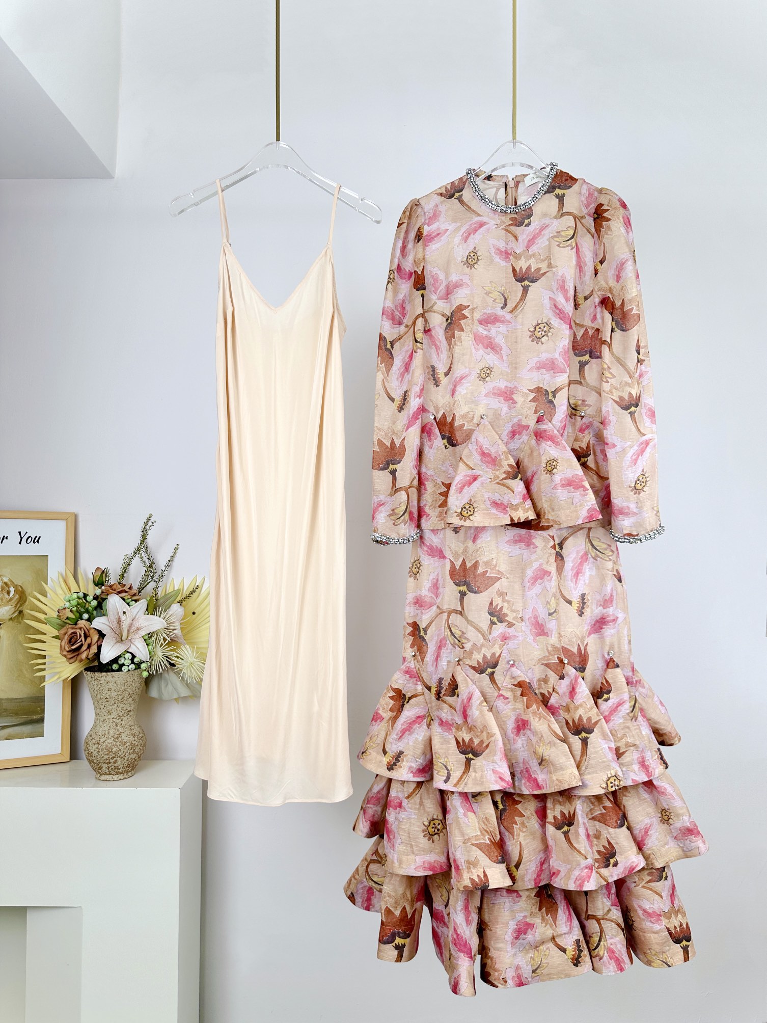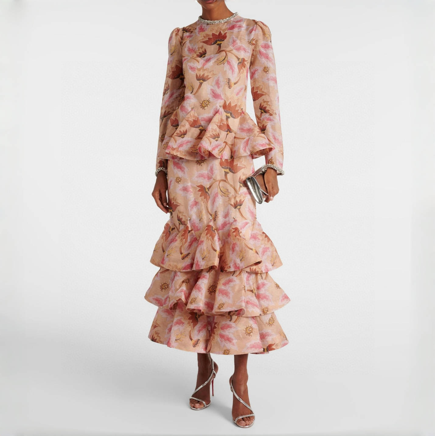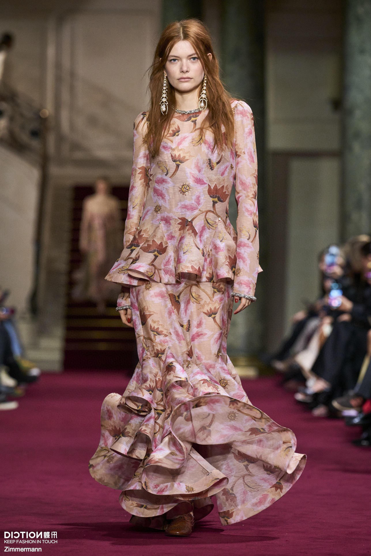 NIGO Zimmermann Women's Spring/summer Elegant Floral Print Dress With Multi-layer Ruffled Puff Skirt, Form-fitting Fashionable Dresses Ngvp #nigo2181