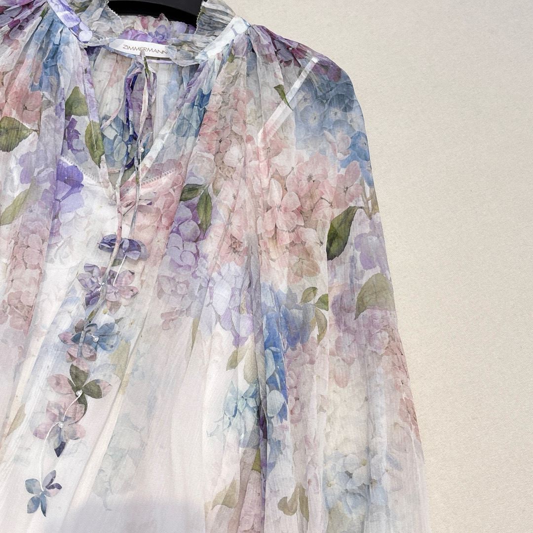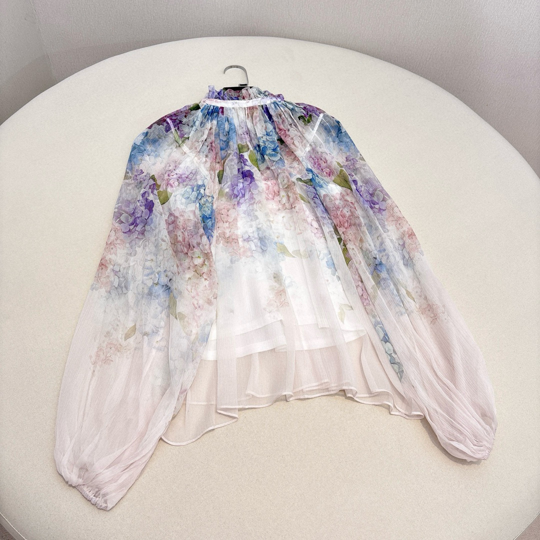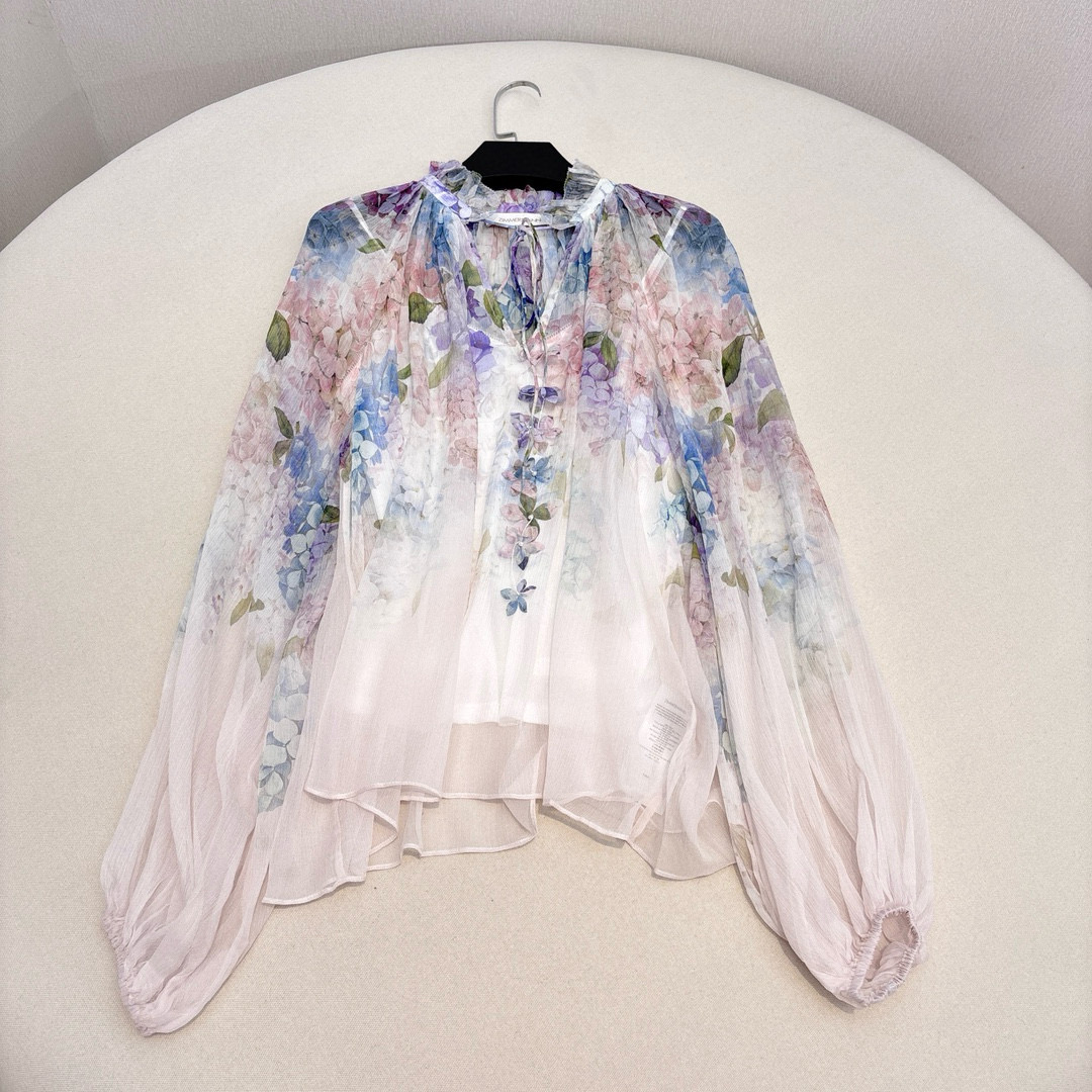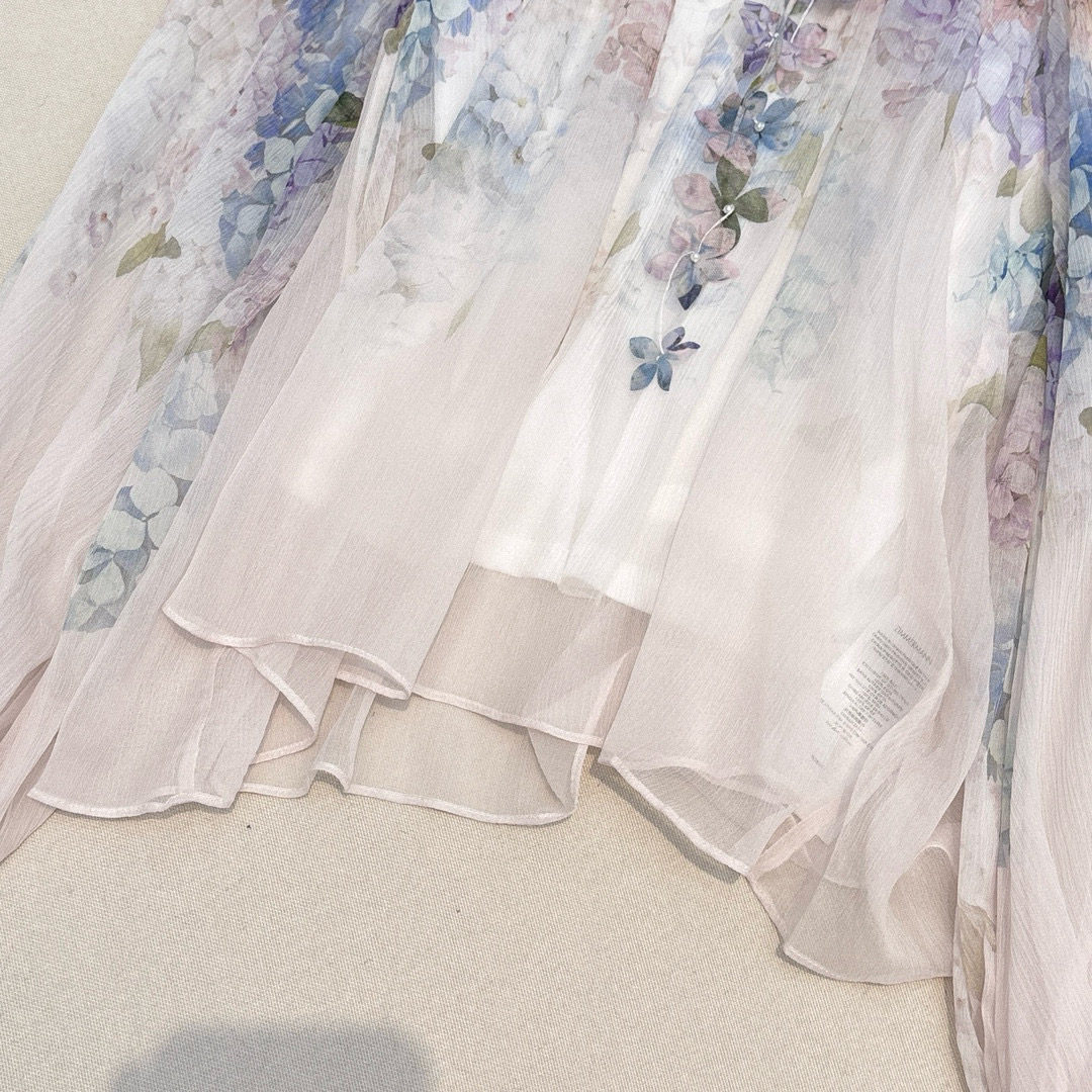 NIGO Zimmermann Women's Spring Summer Floral Print Lantern Sleeve Shirt Top Lined Solid Camisole #nigo76857