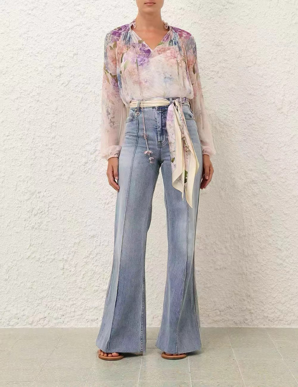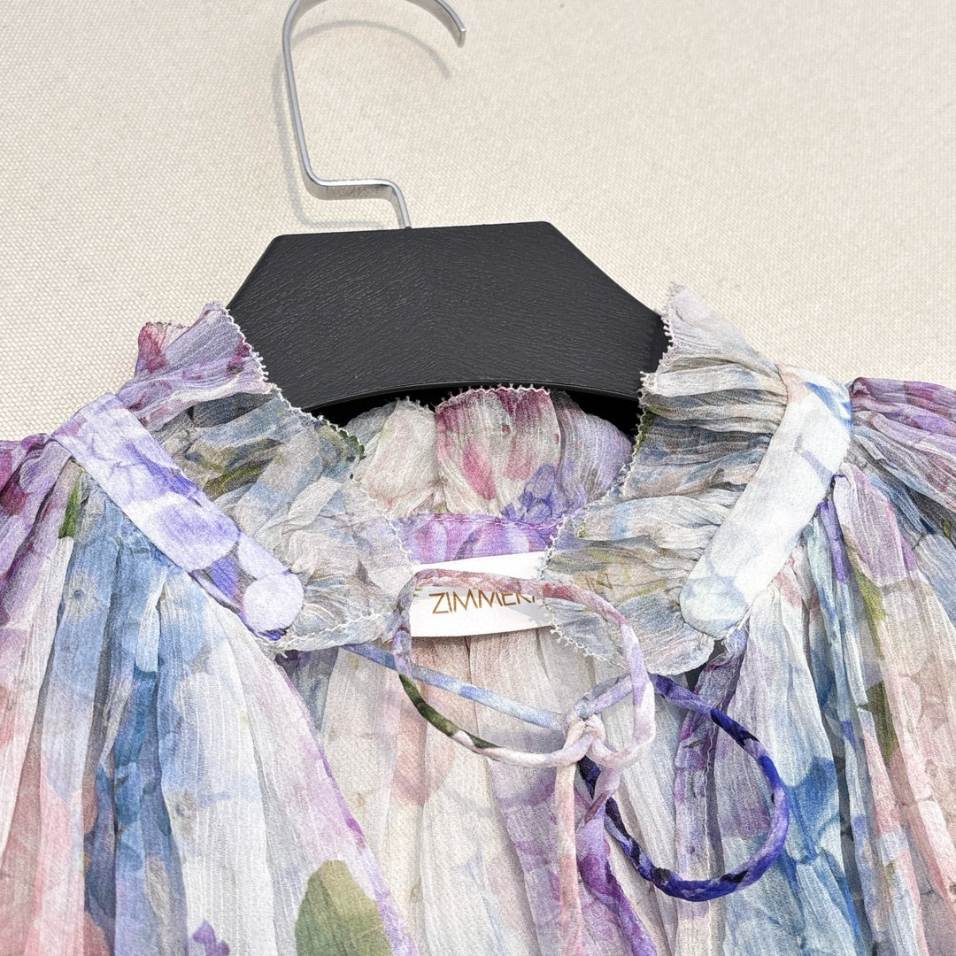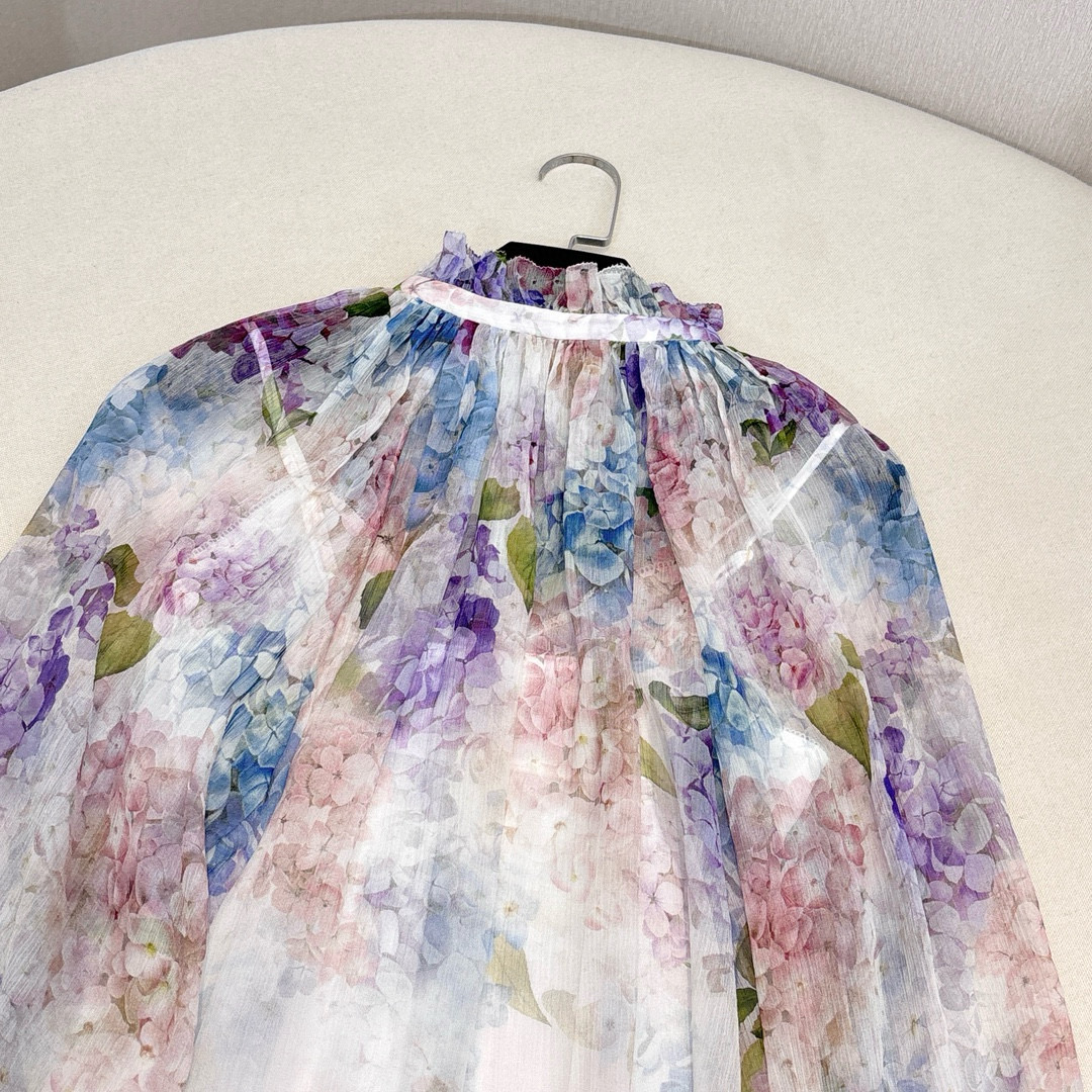 NIGO Zimmermann Women's Spring Summer Floral Print Lantern Sleeve Shirt Top Lined Solid Camisole #nigo76857