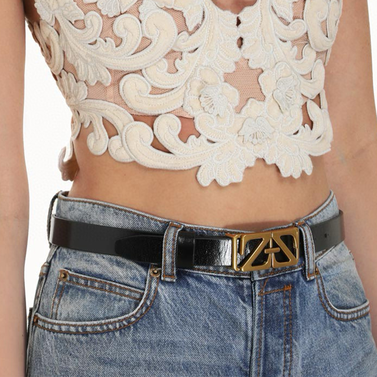 NIGO Zimmermann Women's Spring Summer Metal Leather Belt Letter Fashion Suede Black And White Classic Belt Ngvp #nigo7725