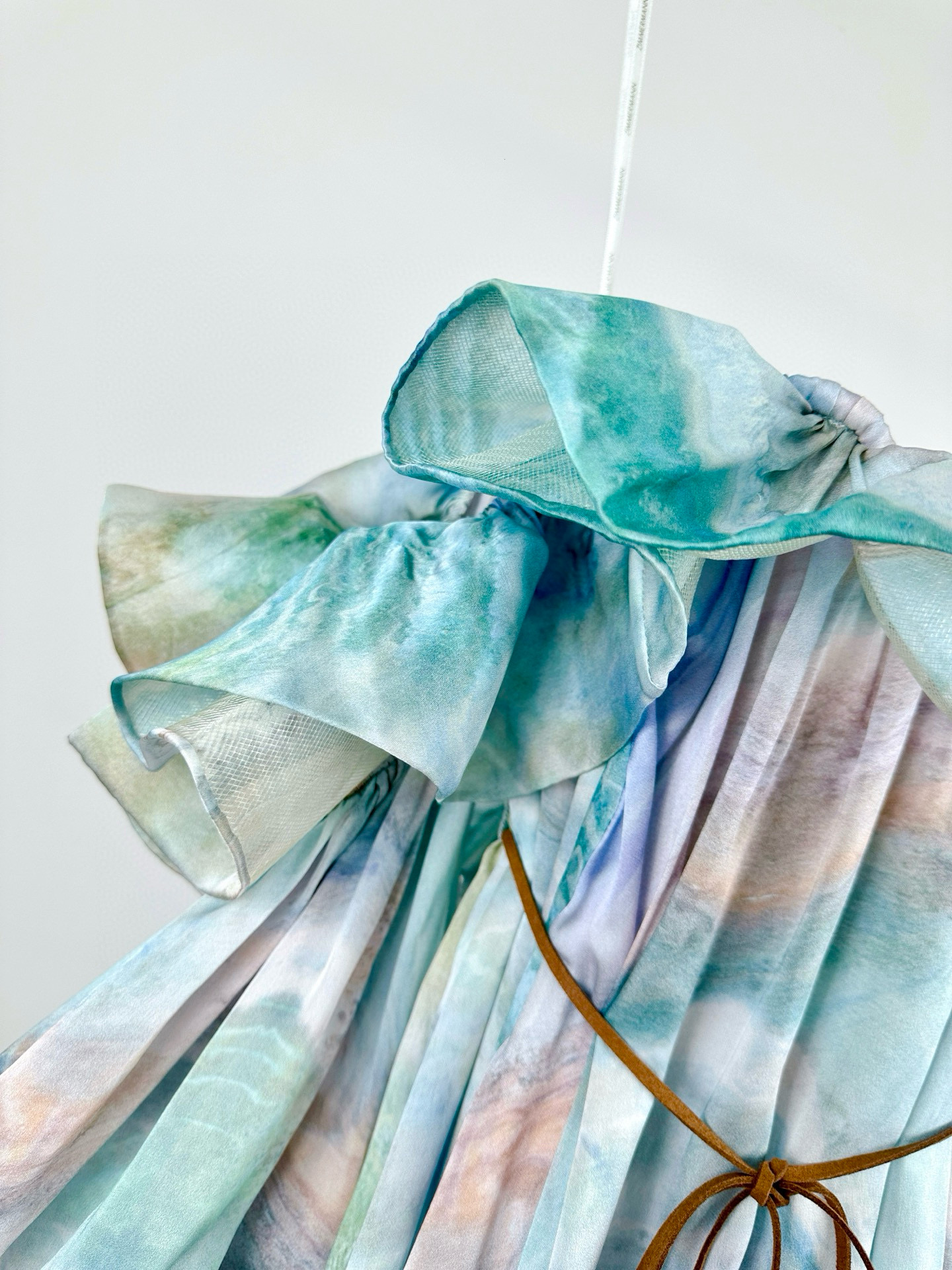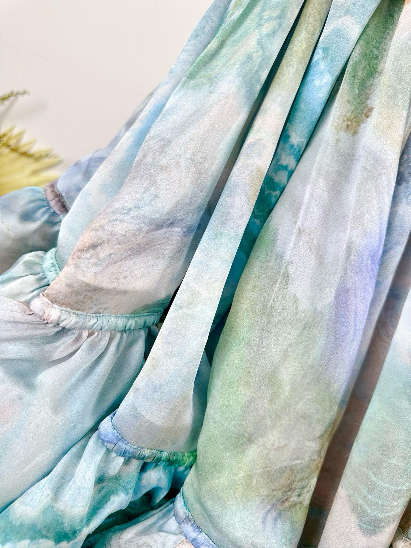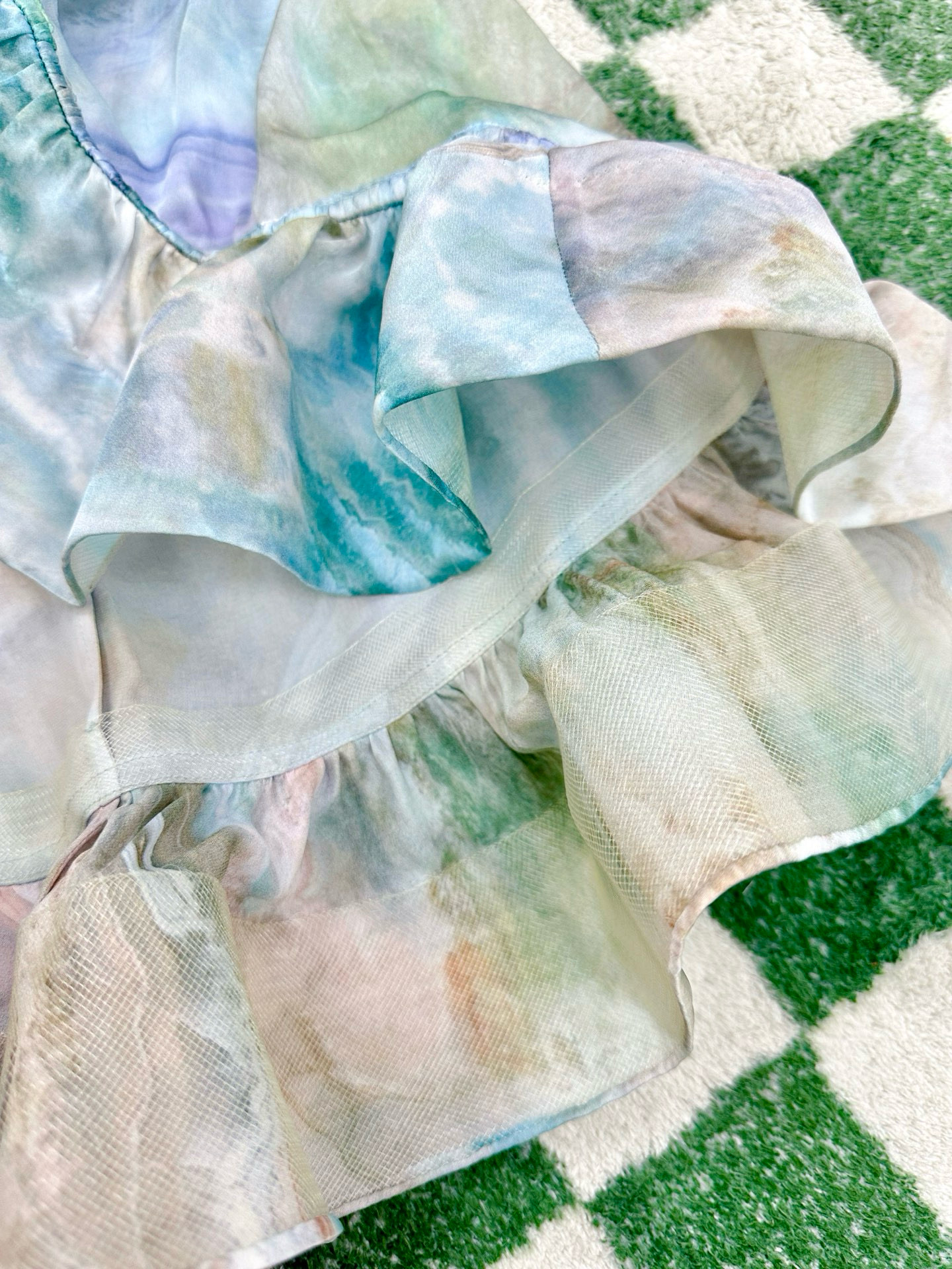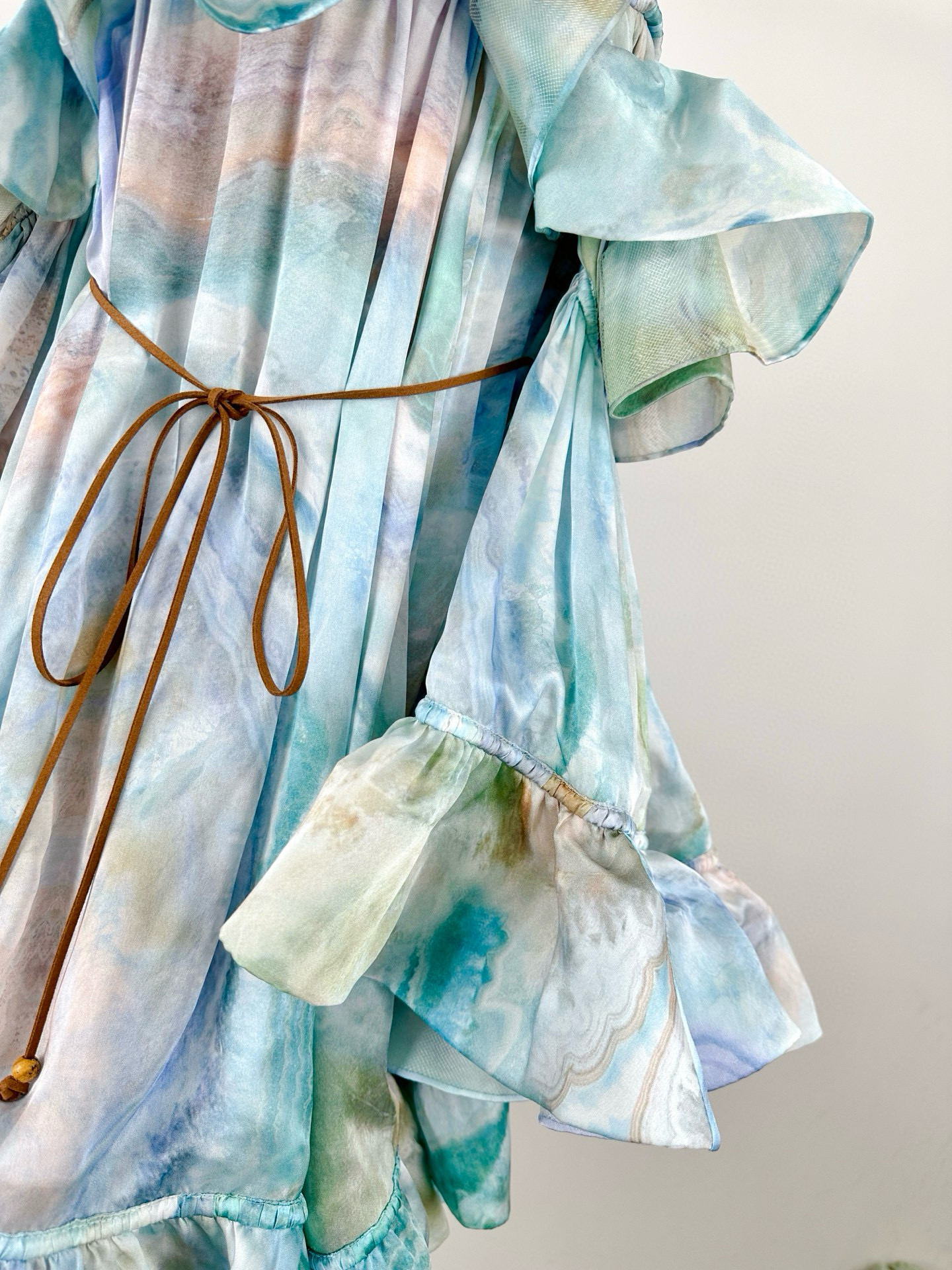 NIGO Zimmermann Women's Summer Blue Printed Silk Ruffle Strapless Mini Silk Dress #nigo77178