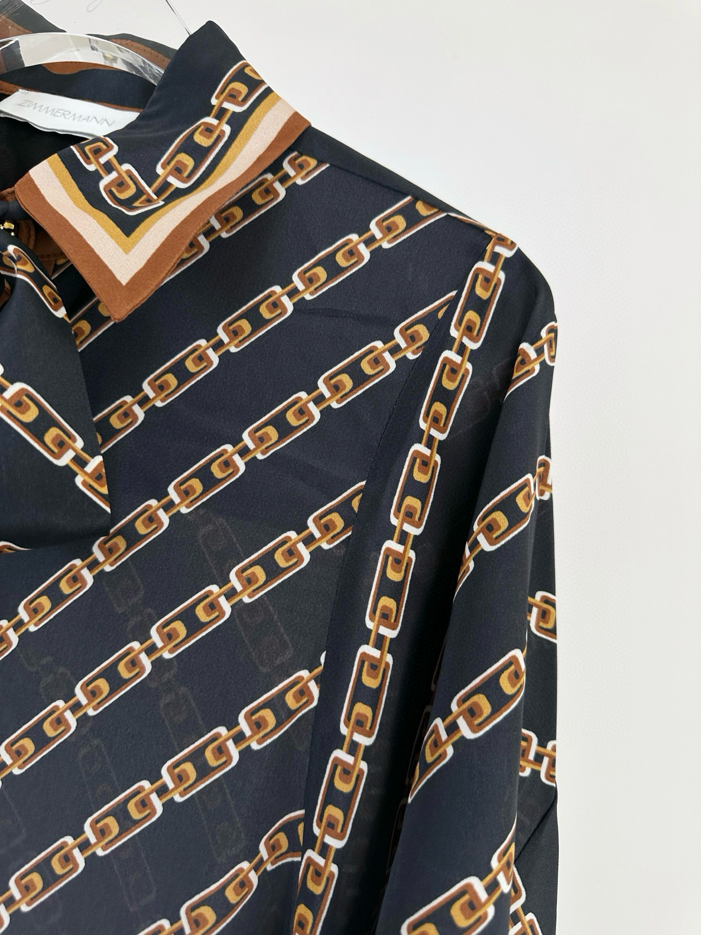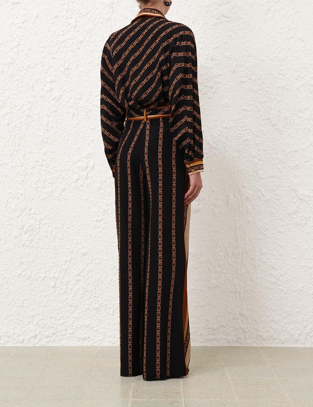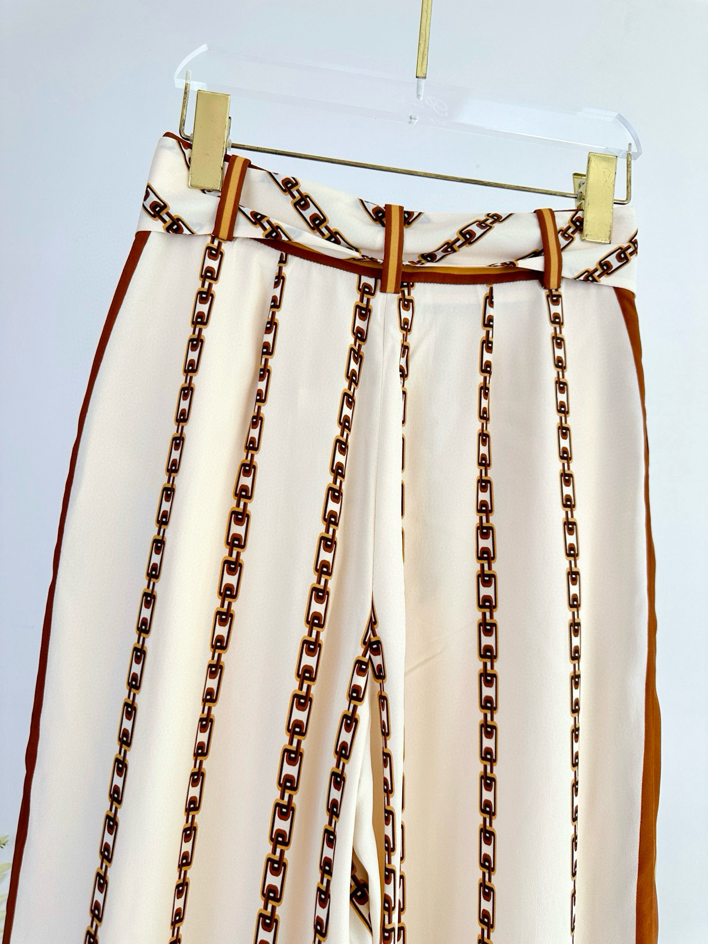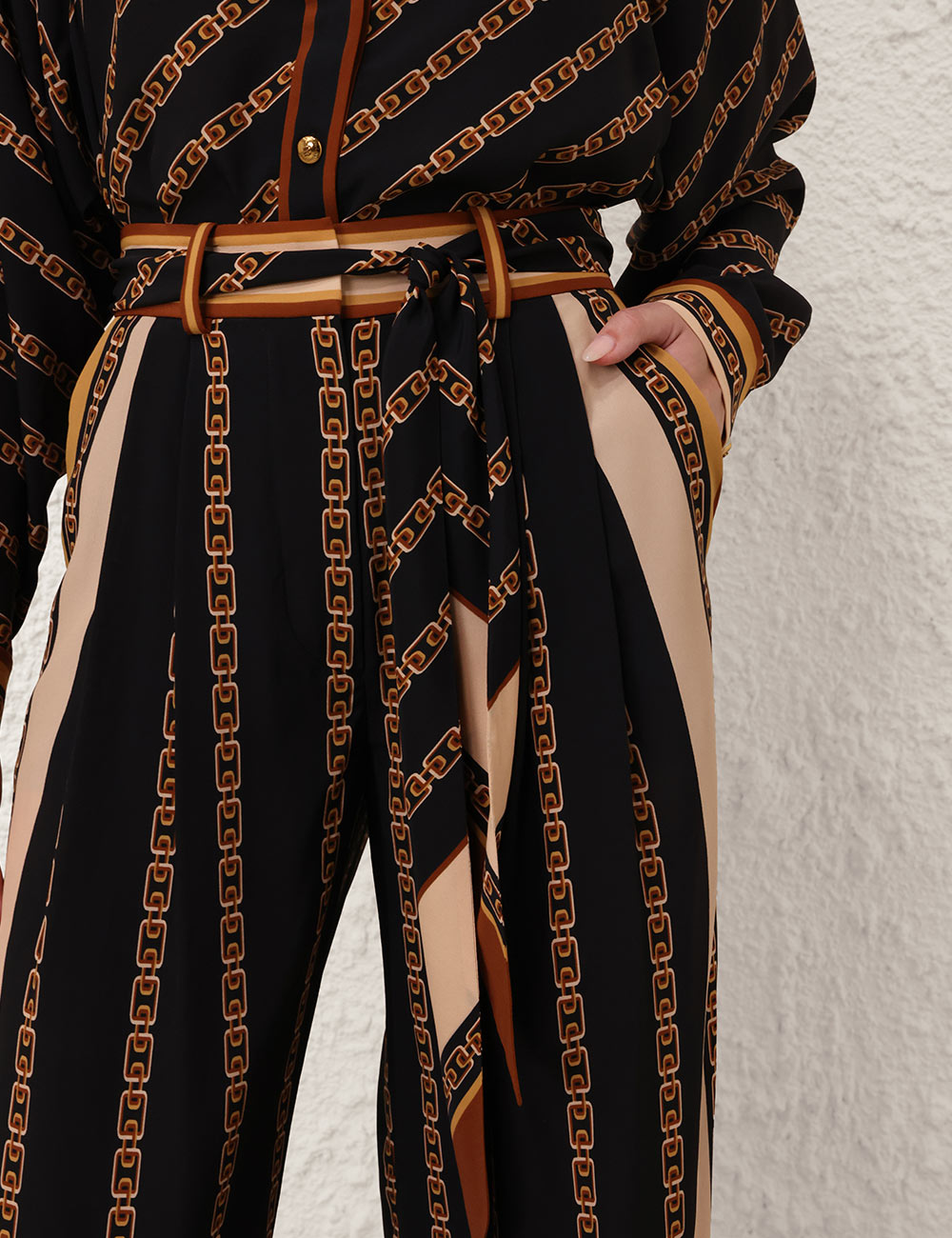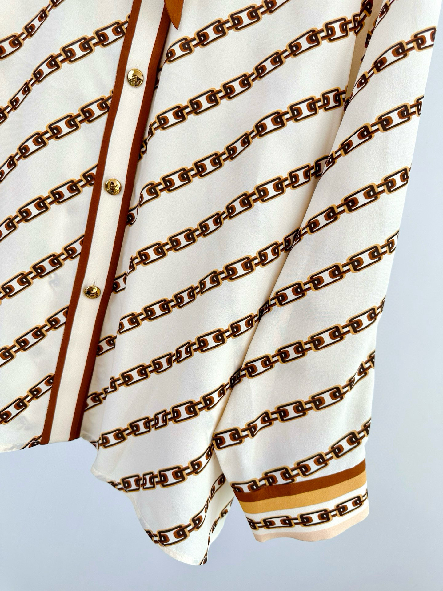 NIGO Zimmermann Women's Summer Bow Tie Neckline Chain Print Single Breasted Long Sleeved Shirt Casual Wide Leg Pants Suit Set #nigo76595