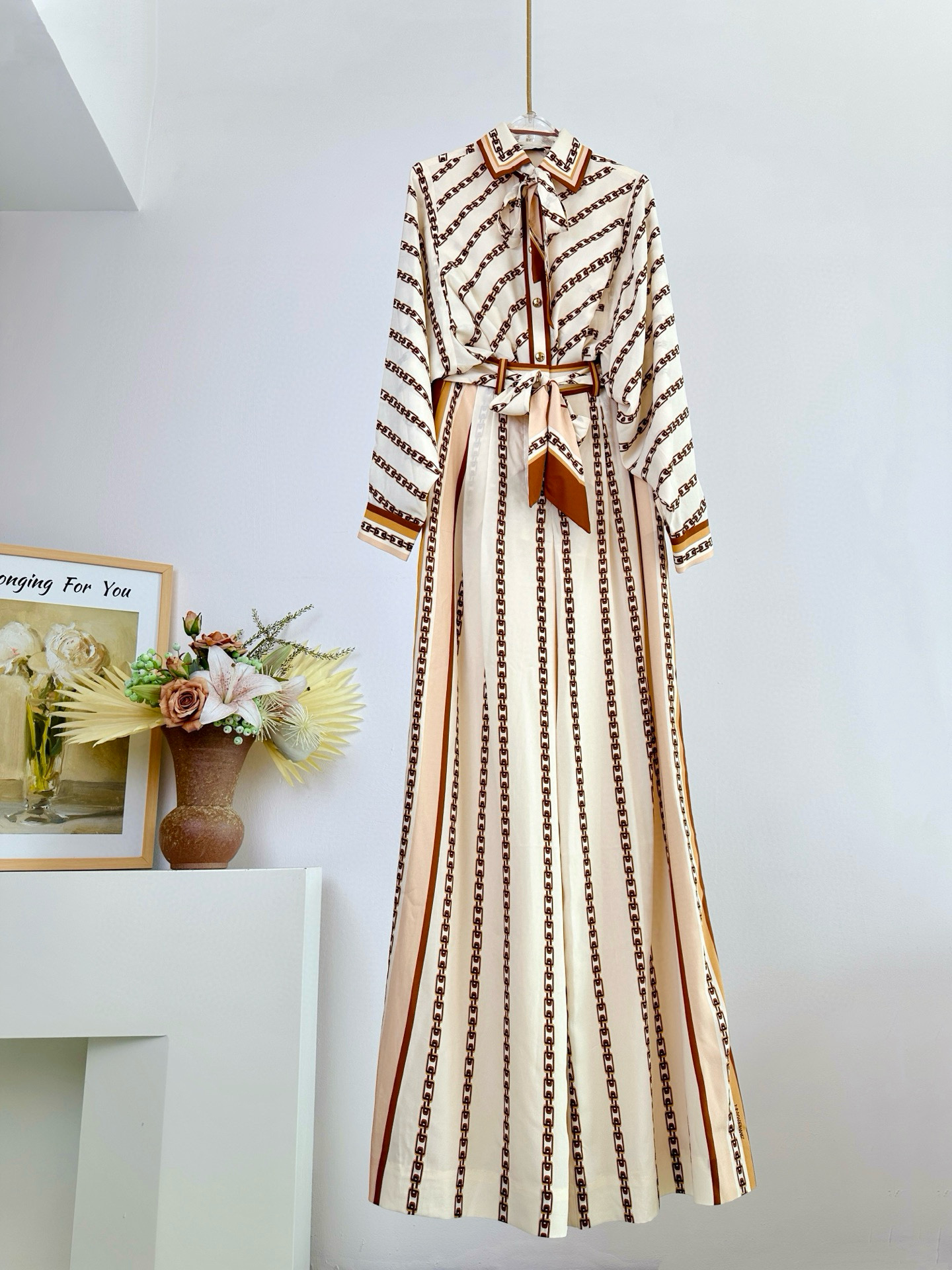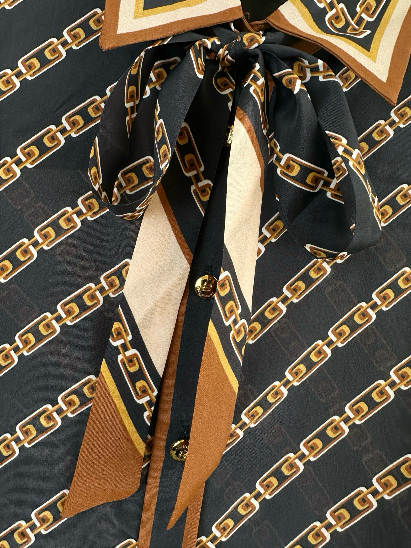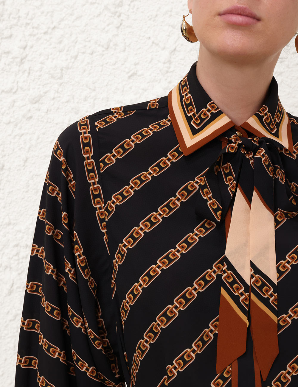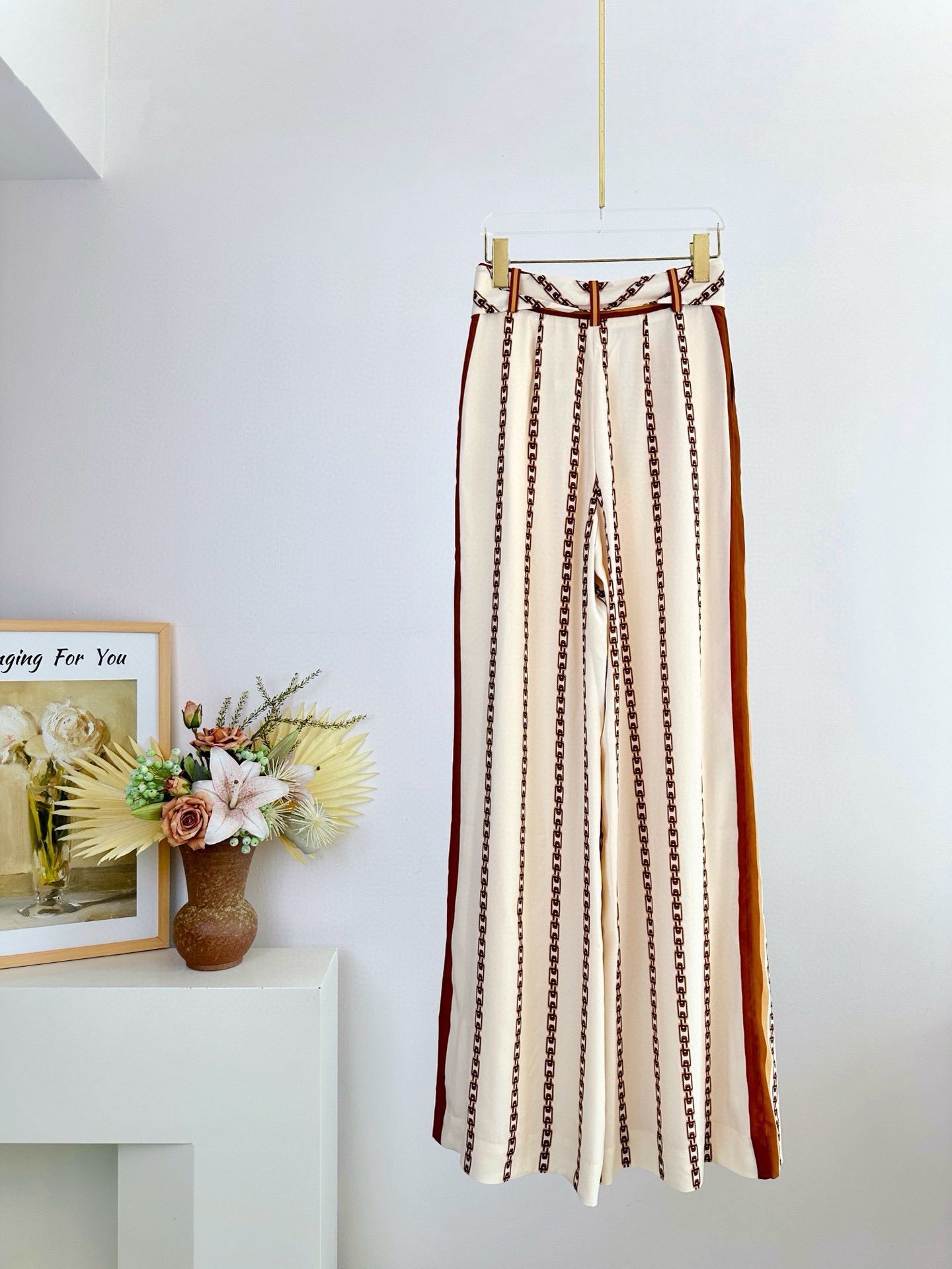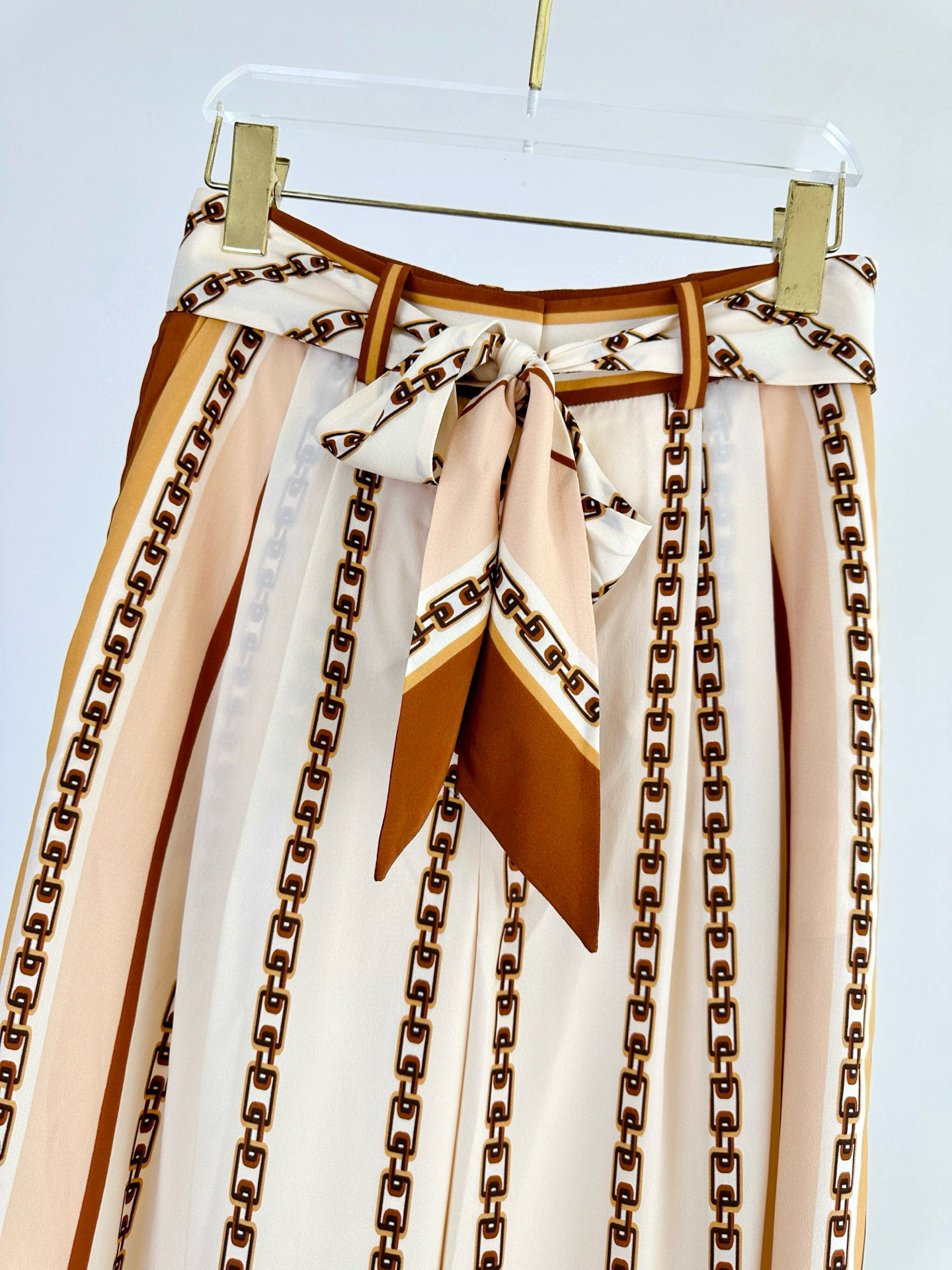 NIGO Zimmermann Women's Summer Bow Tie Neckline Chain Print Single Breasted Long Sleeved Shirt Casual Wide Leg Pants Suit Set #nigo76595