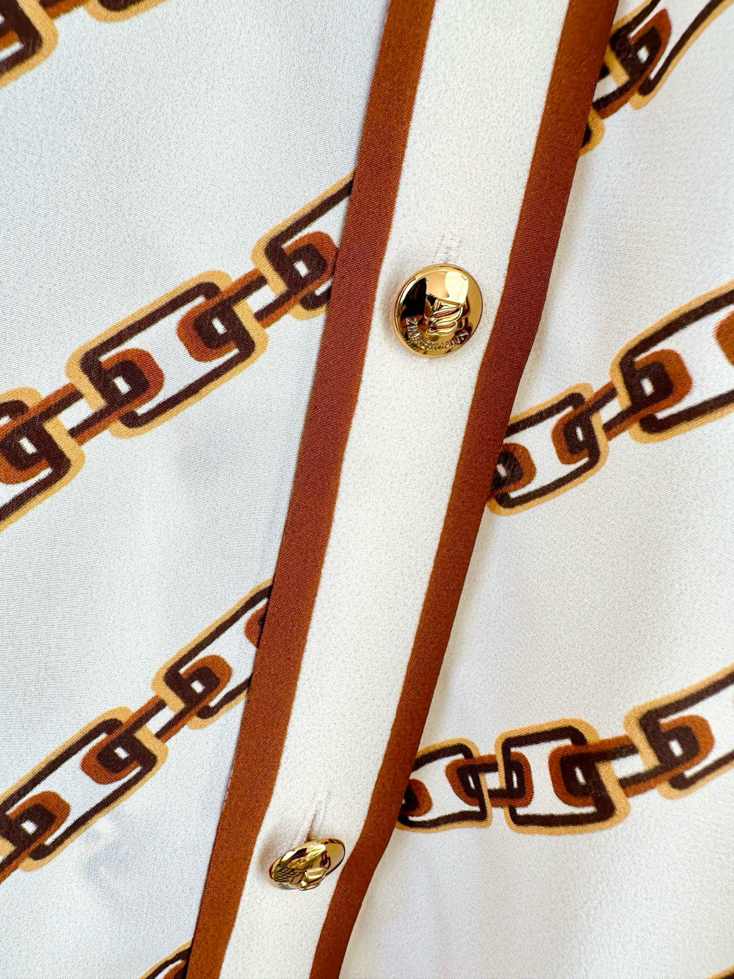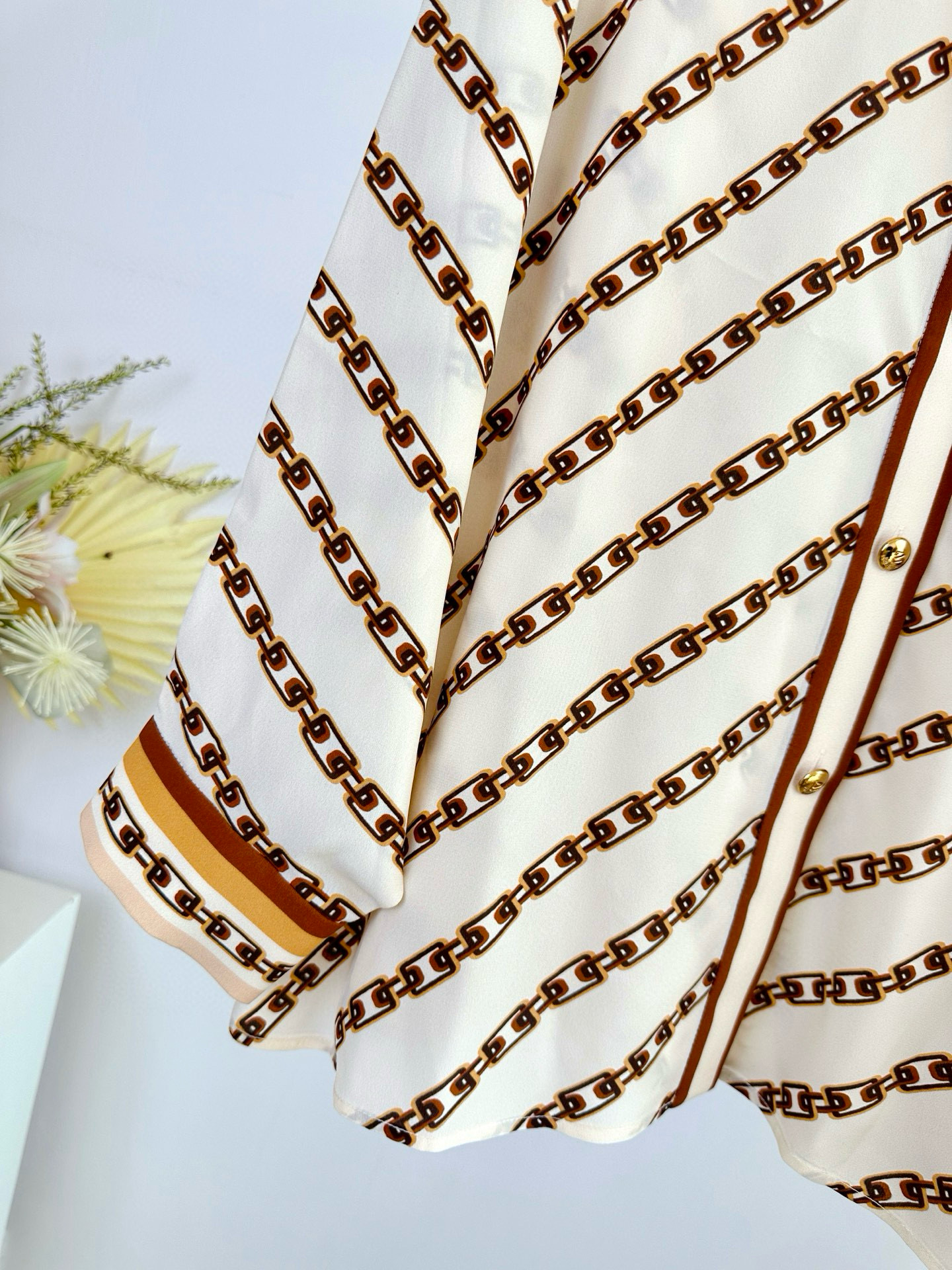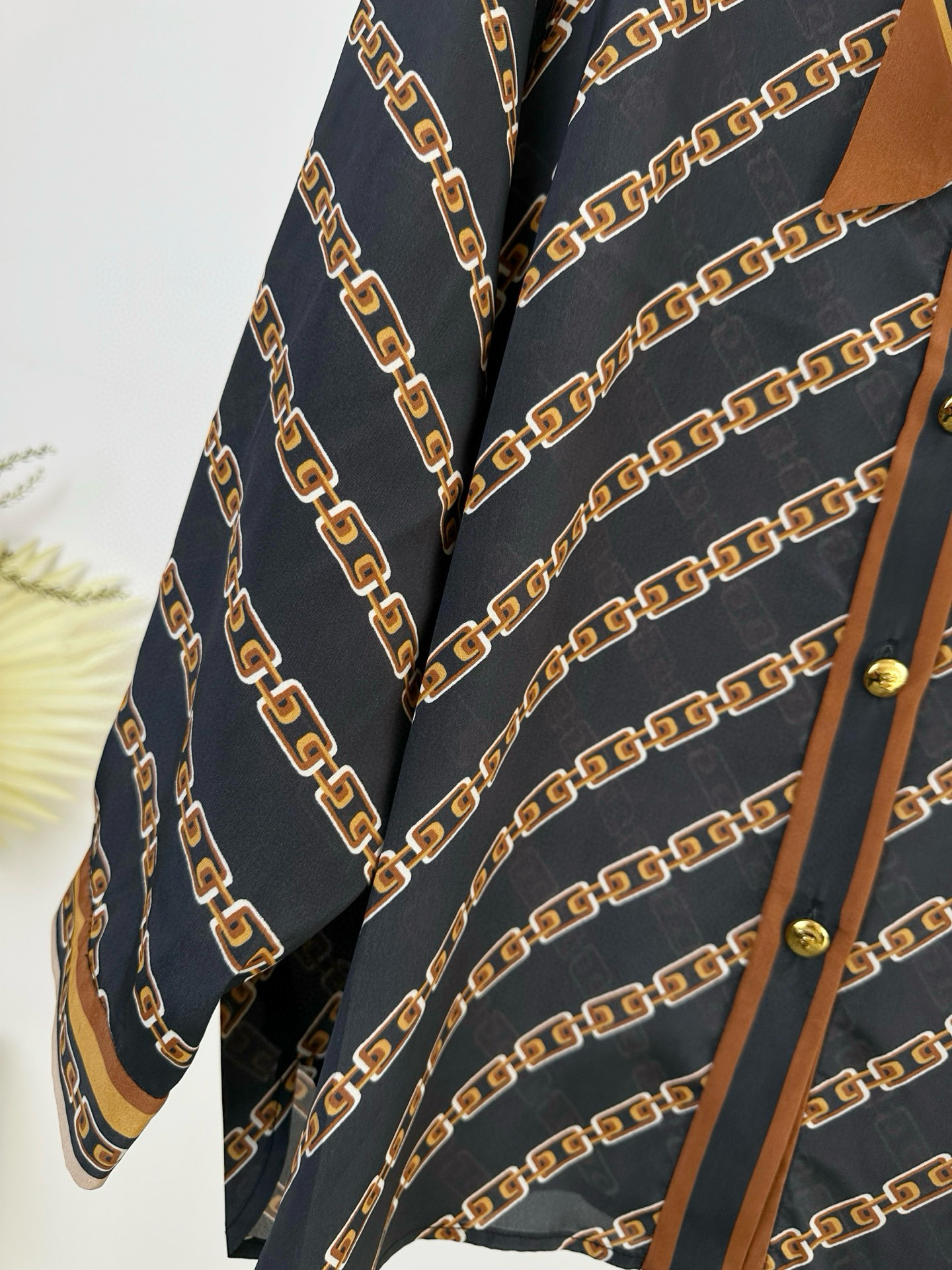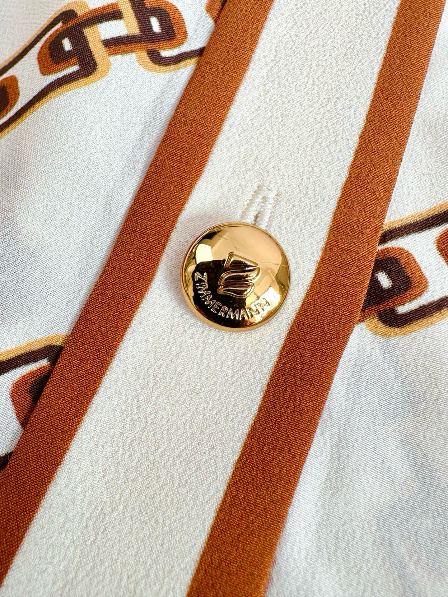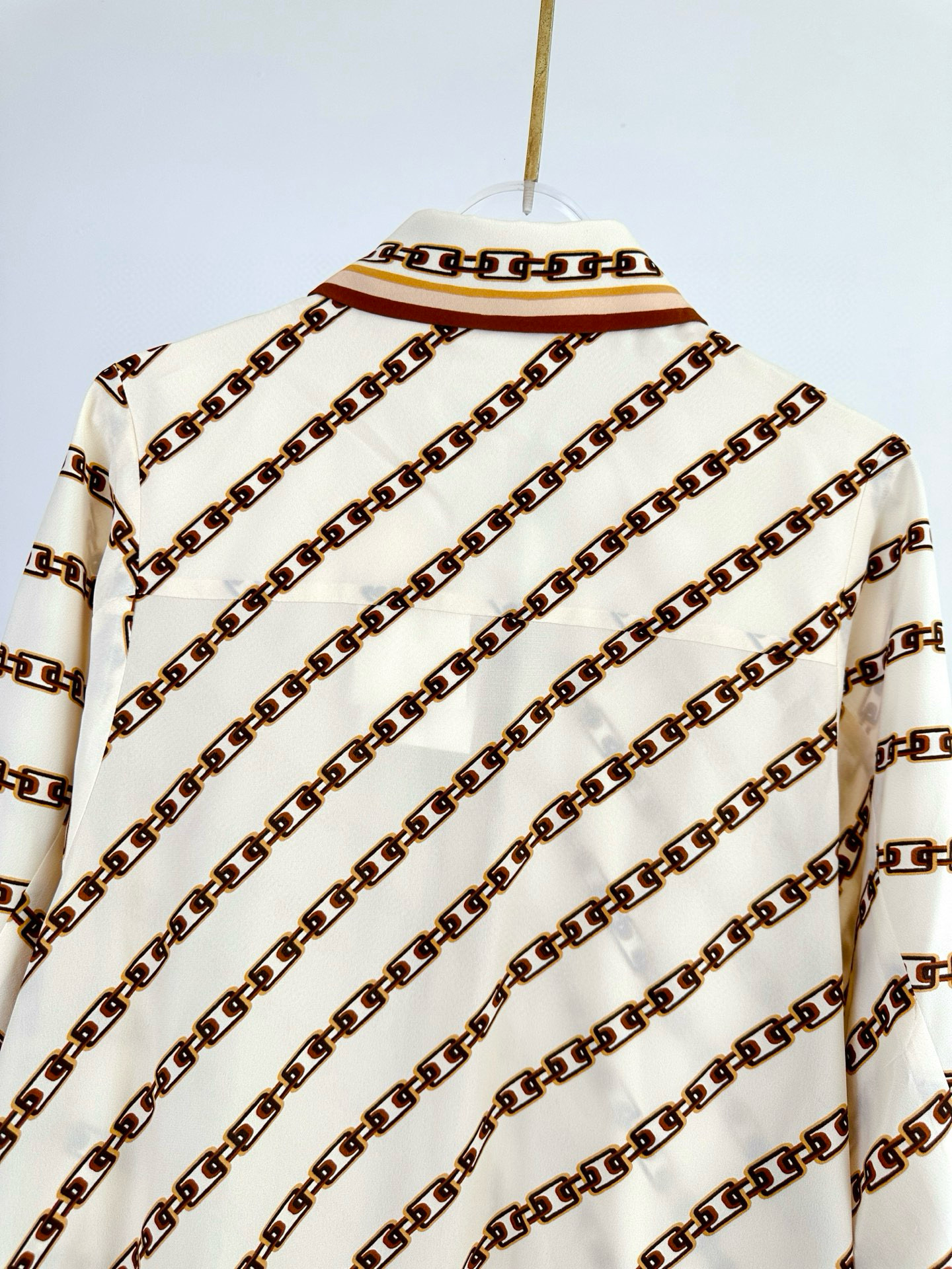 NIGO Zimmermann Women's Summer Bow Tie Neckline Chain Print Single Breasted Long Sleeved Shirt Casual Wide Leg Pants Suit Set #nigo76595