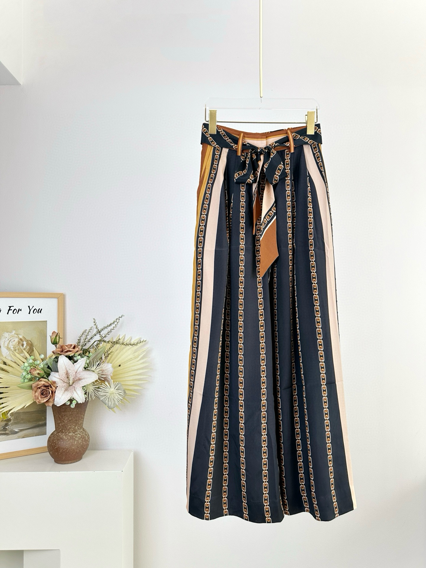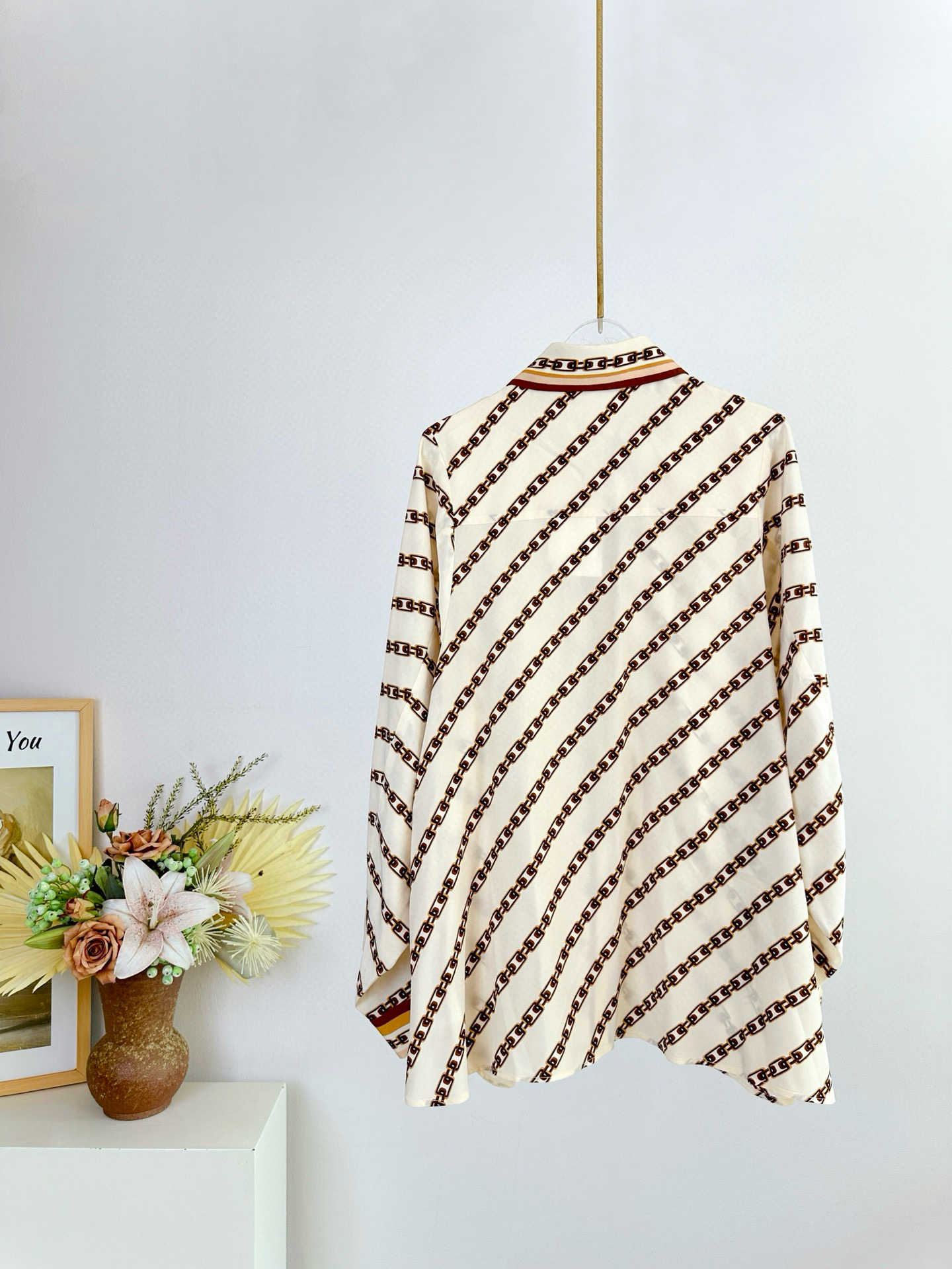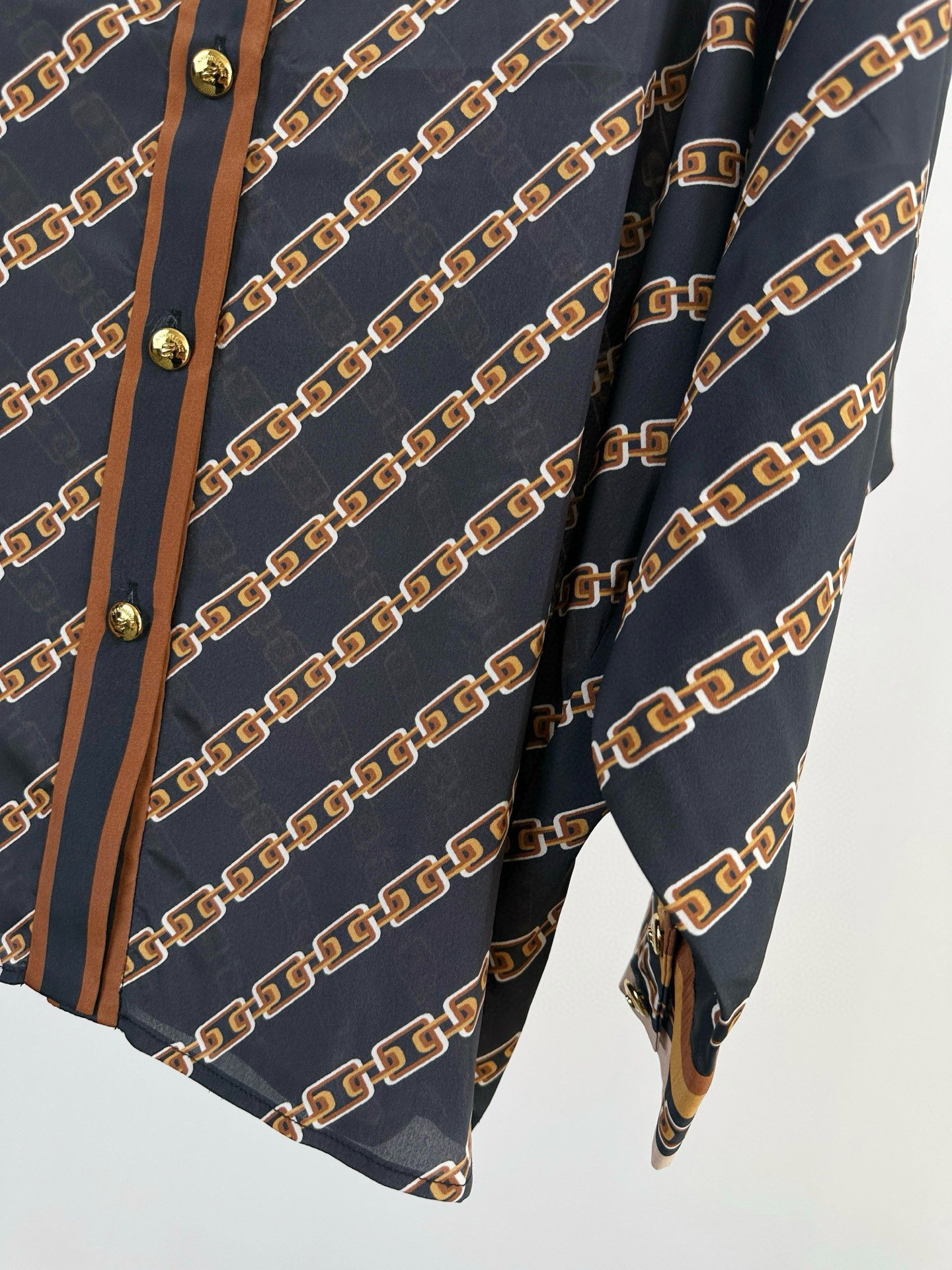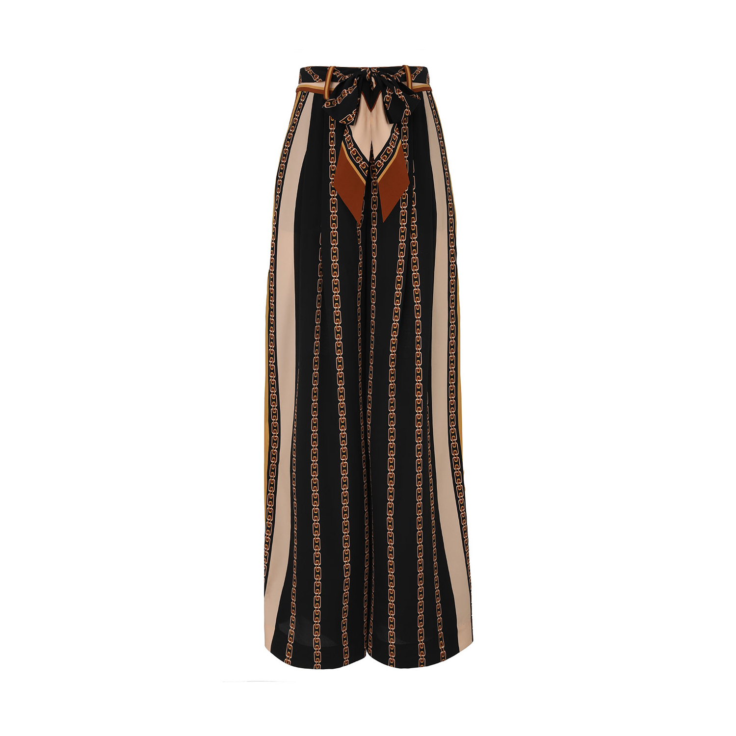 NIGO Zimmermann Women's Summer Bow Tie Neckline Chain Print Single Breasted Long Sleeved Shirt Casual Wide Leg Pants Suit Set #nigo76595