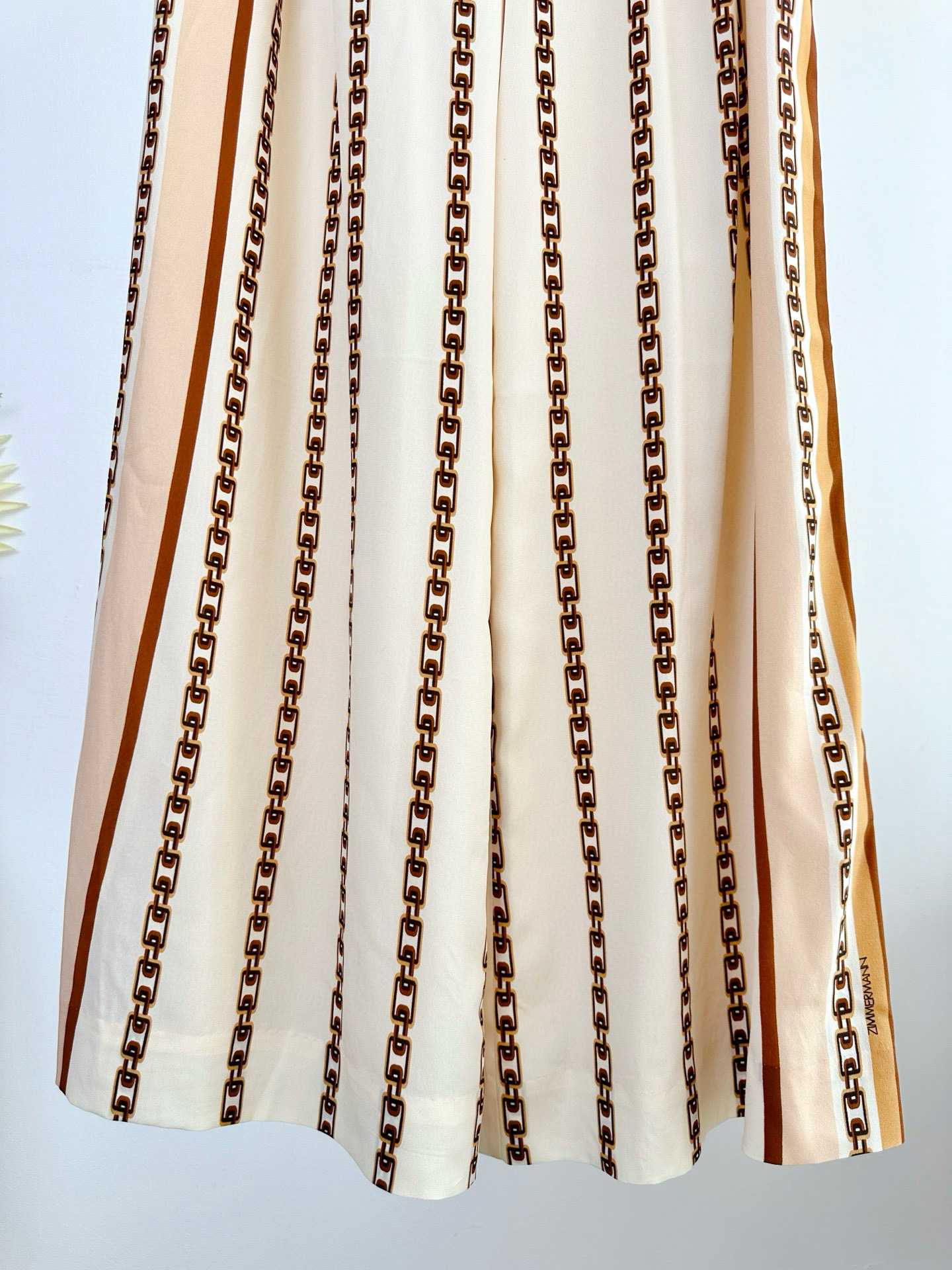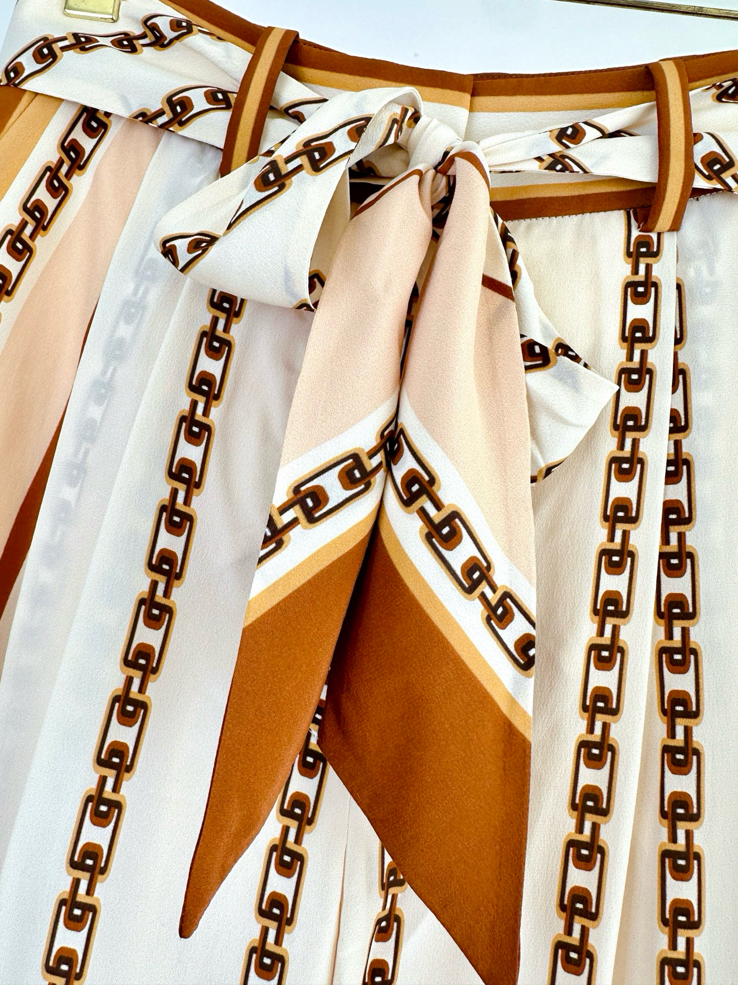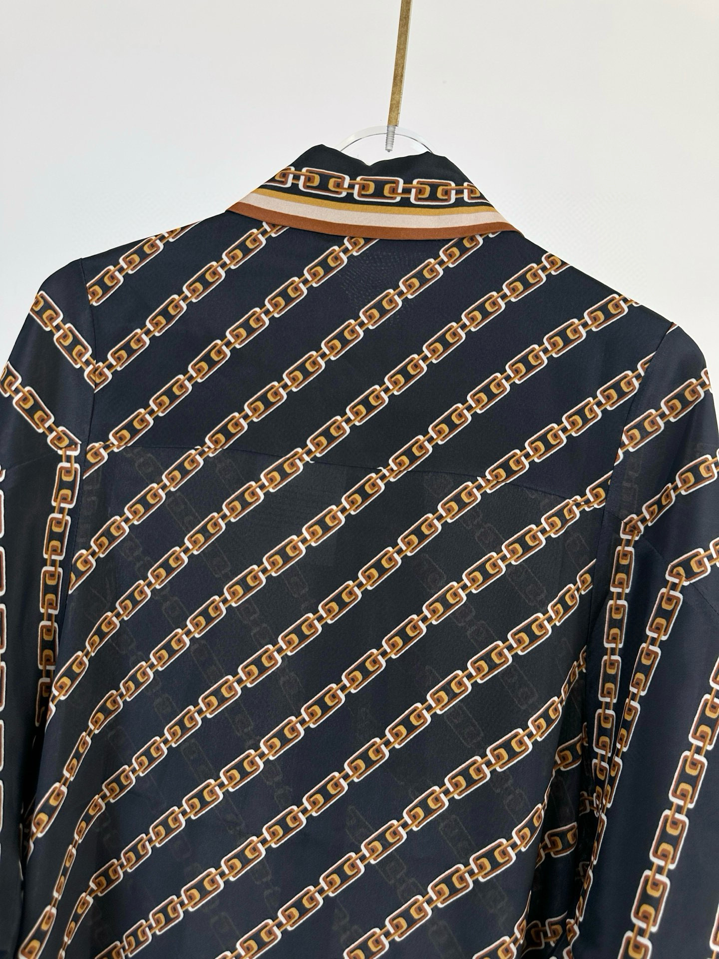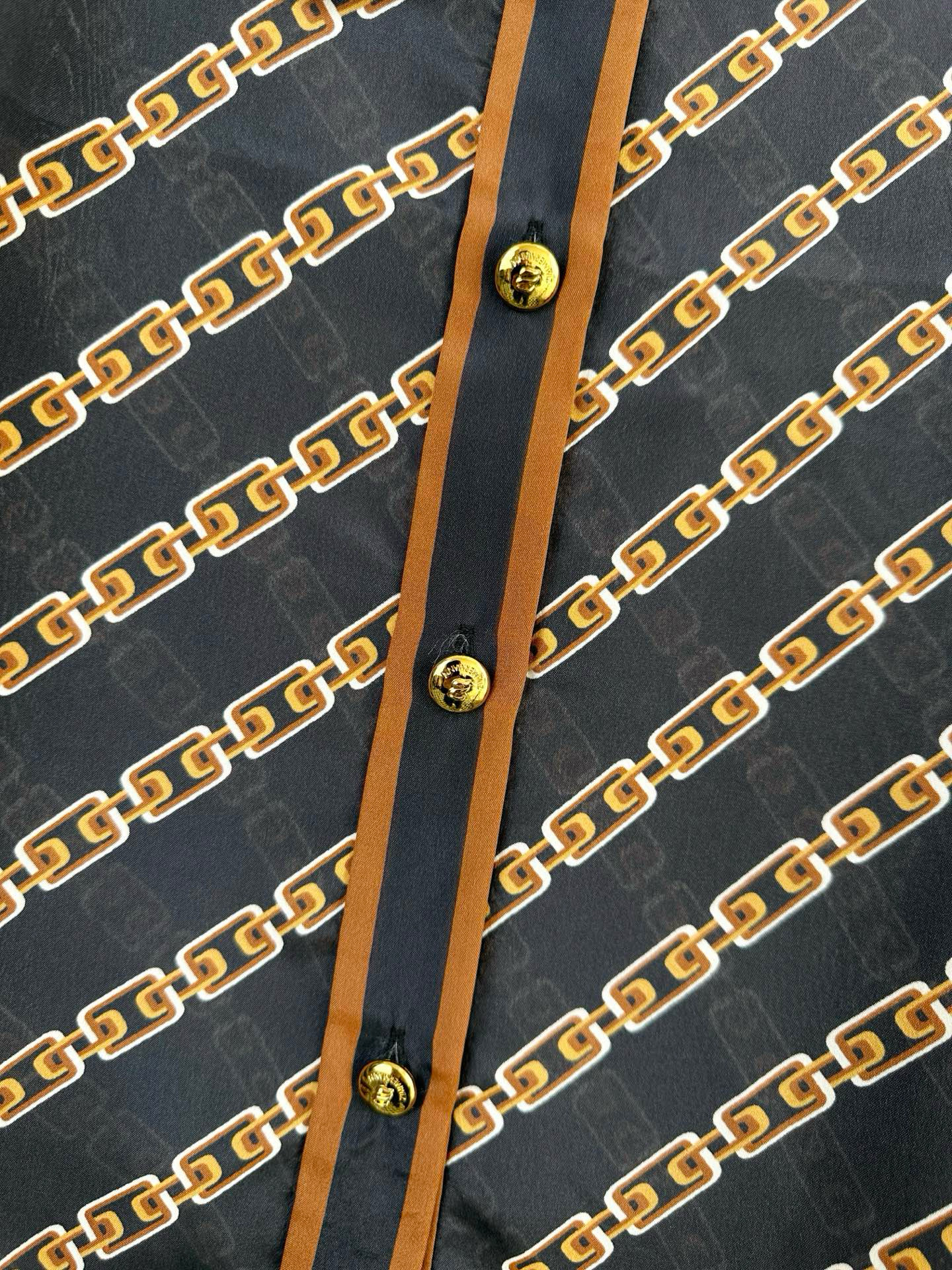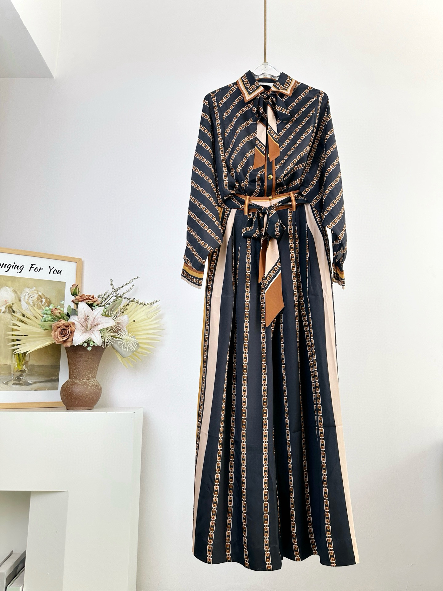 NIGO Zimmermann Women's Summer Bow Tie Neckline Chain Print Single Breasted Long Sleeved Shirt Casual Wide Leg Pants Suit Set #nigo76595