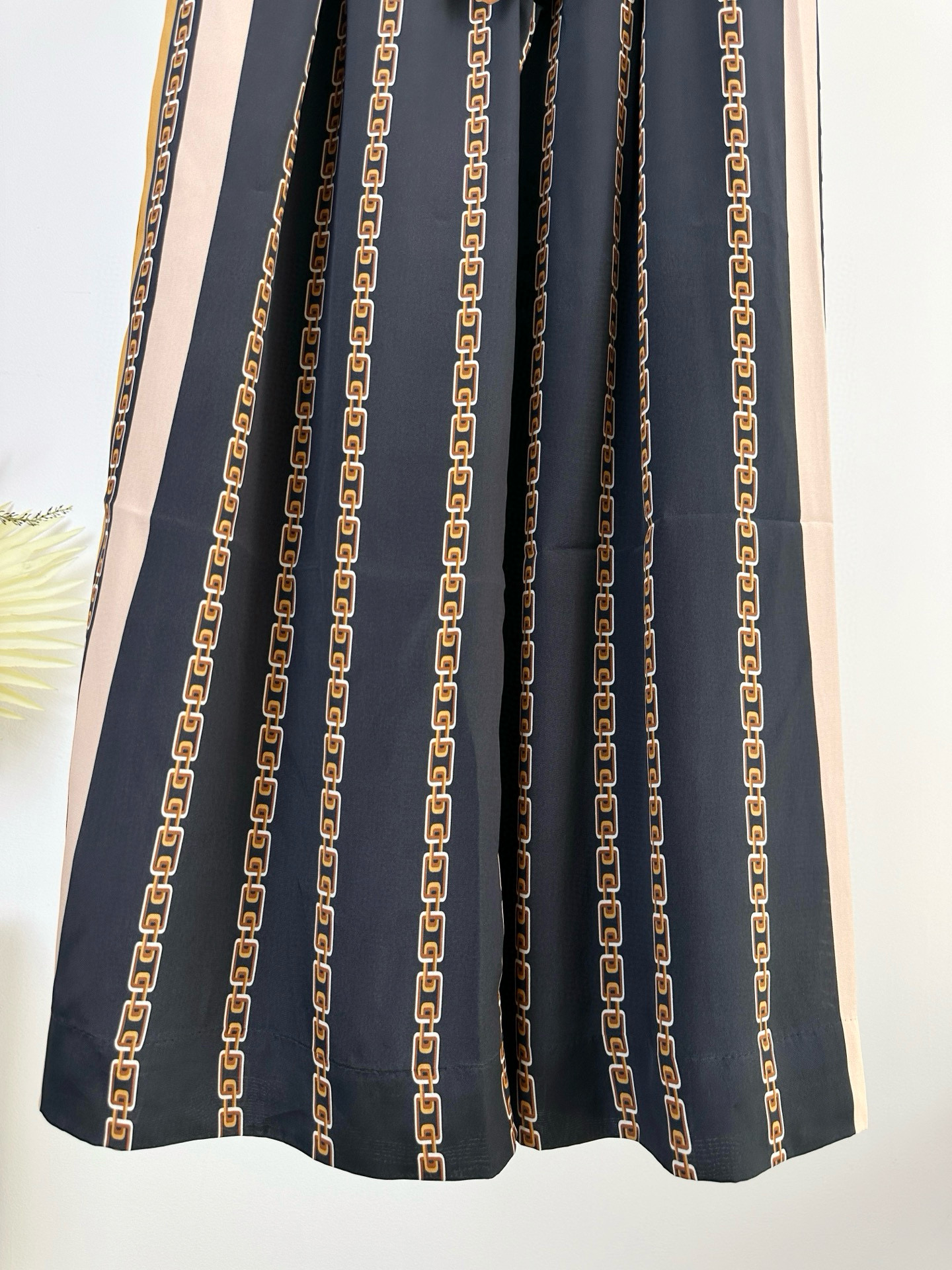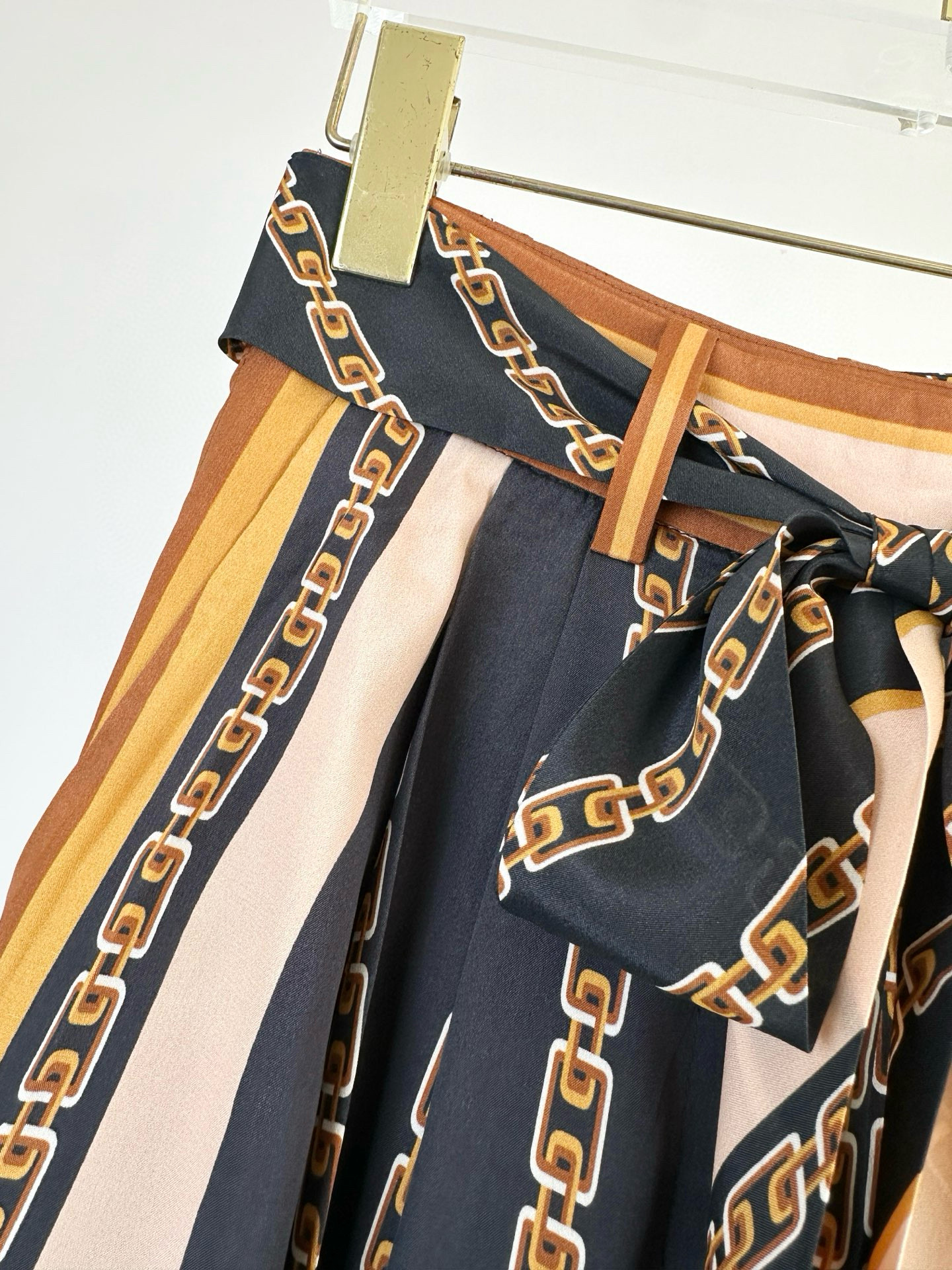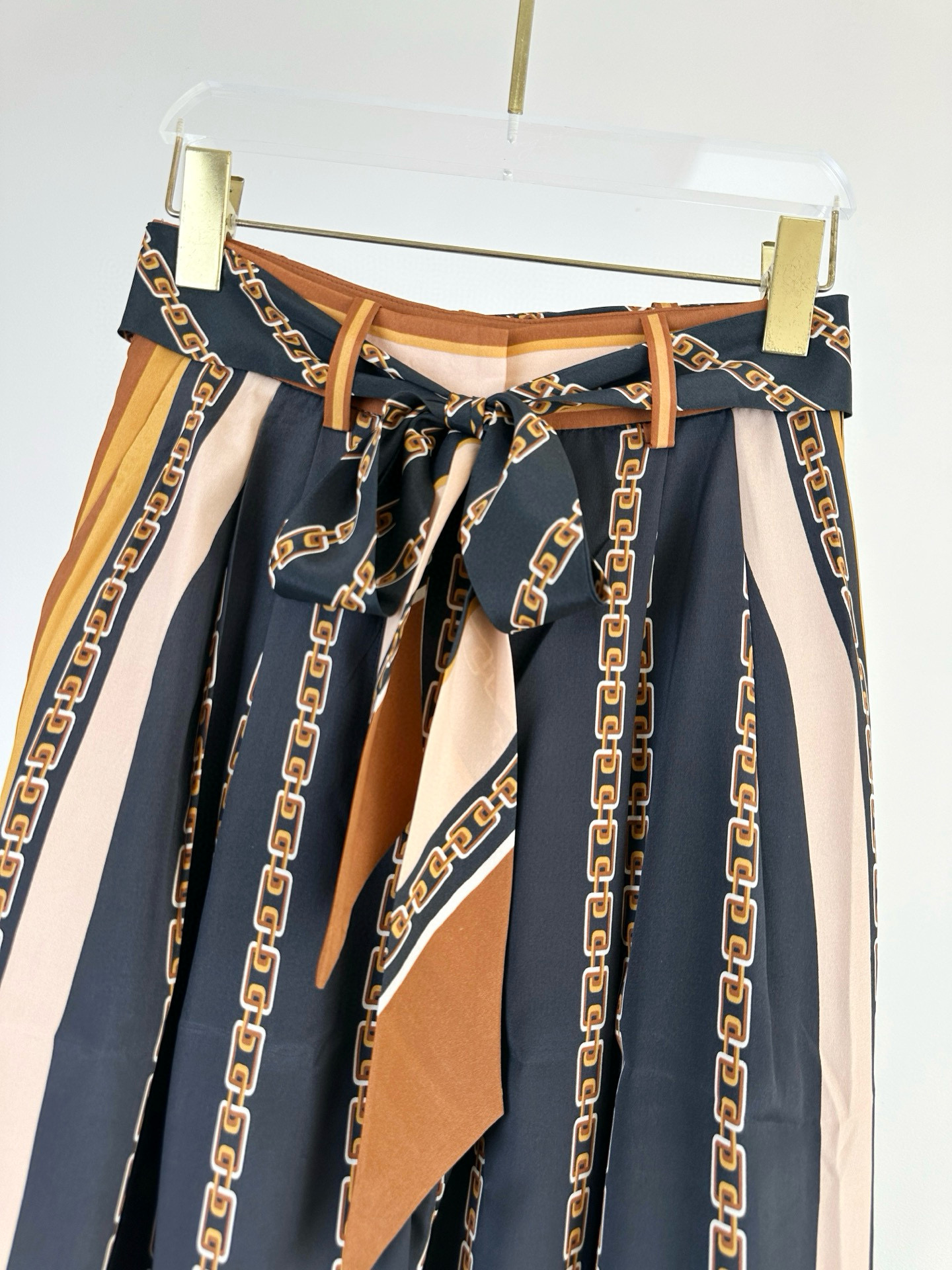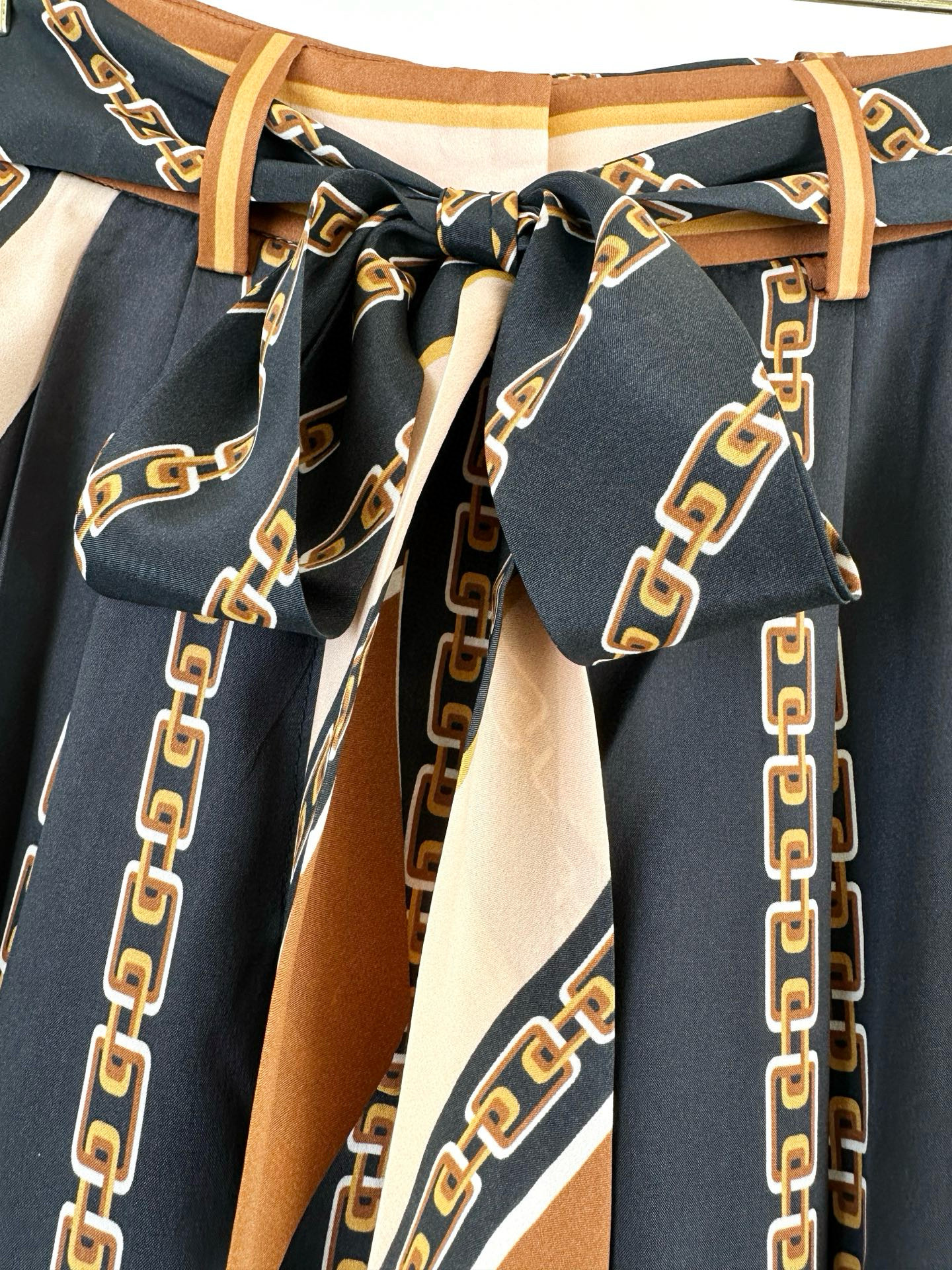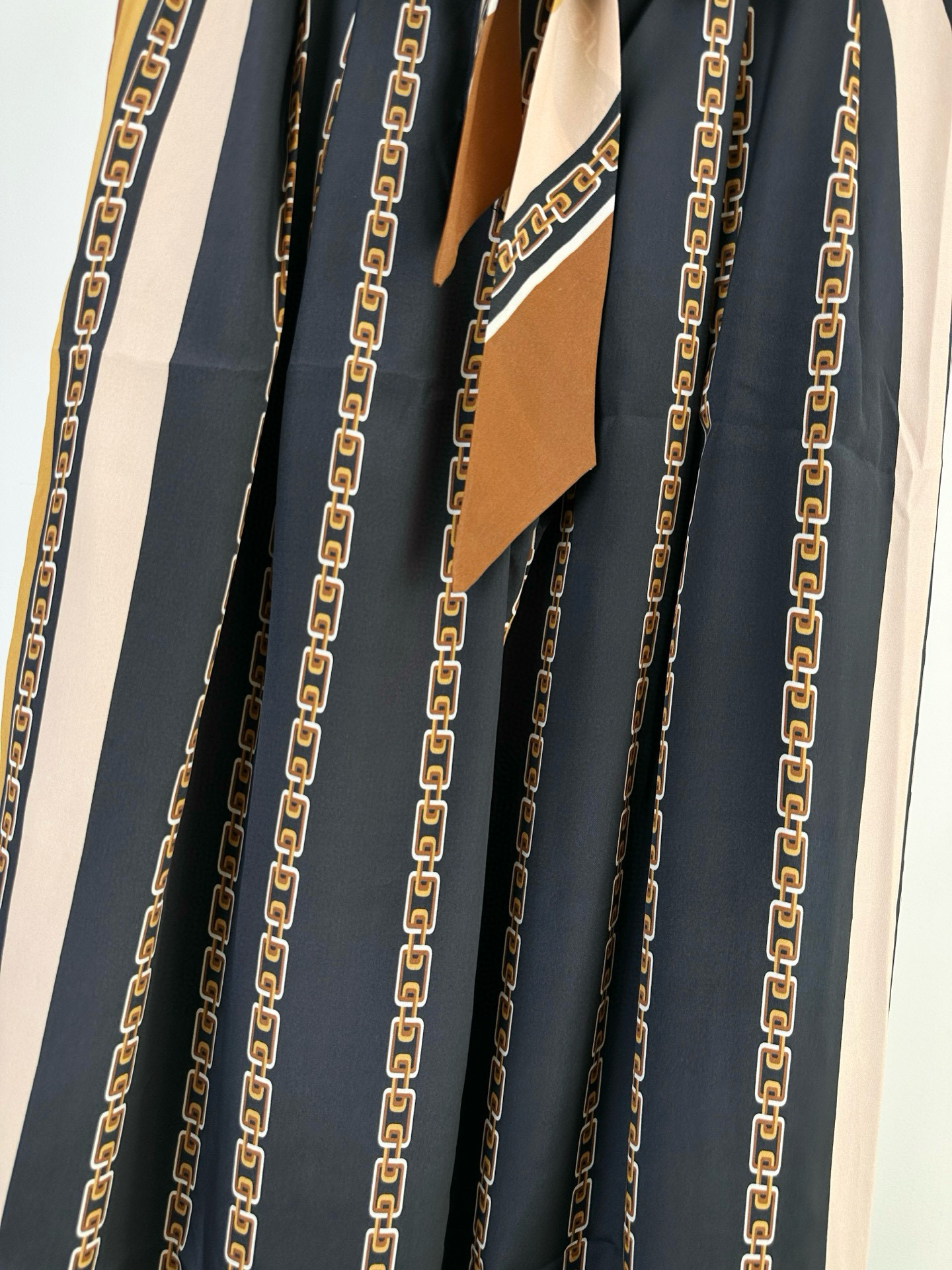 NIGO Zimmermann Women's Summer Bow Tie Neckline Chain Print Single Breasted Long Sleeved Shirt Casual Wide Leg Pants Suit Set #nigo76595