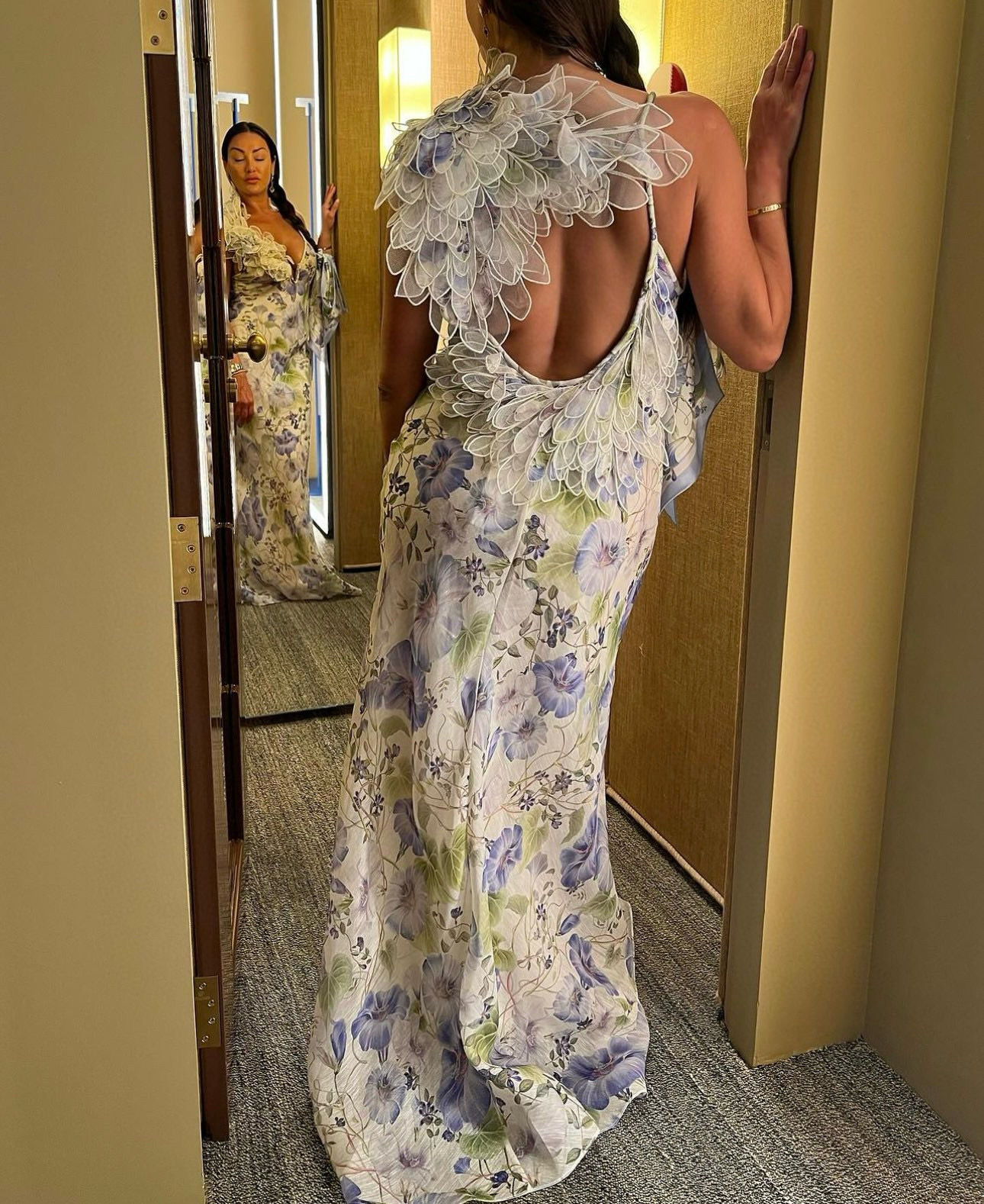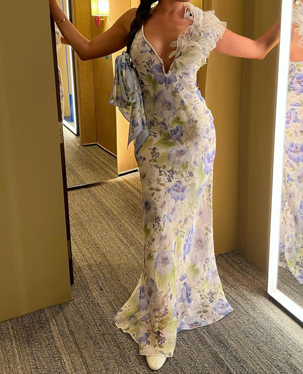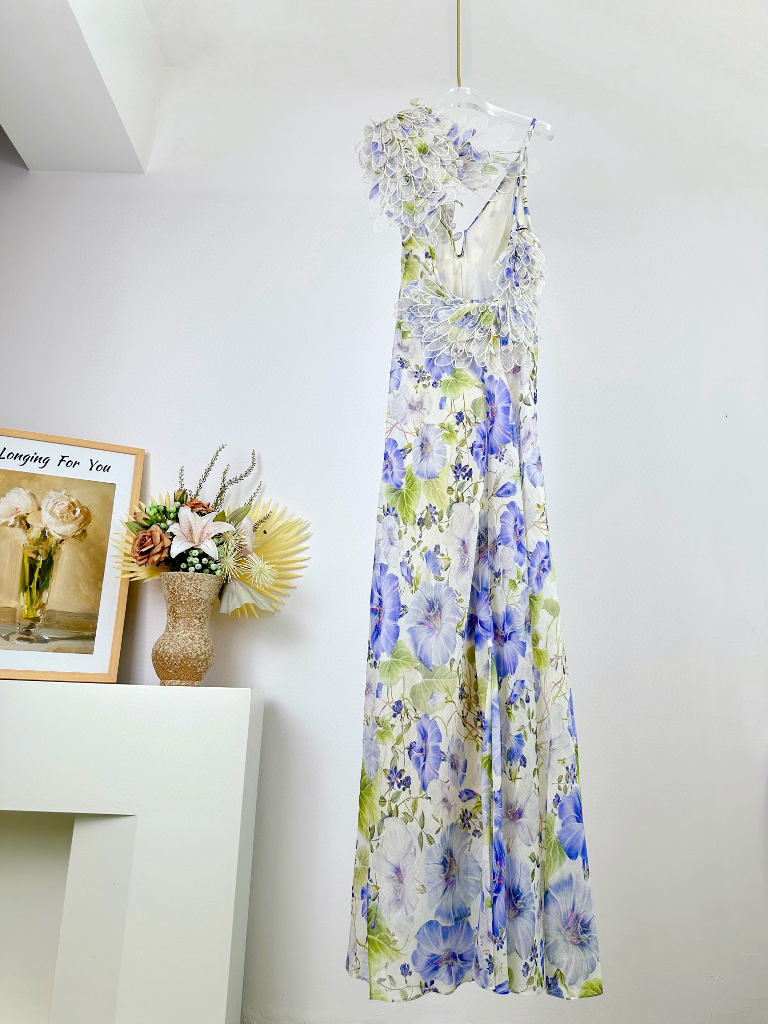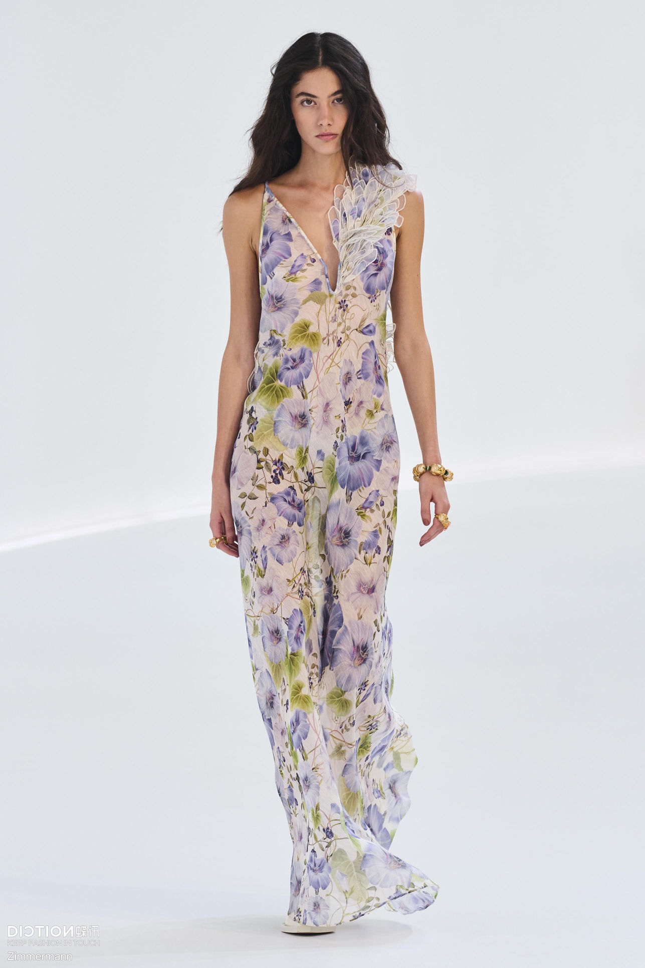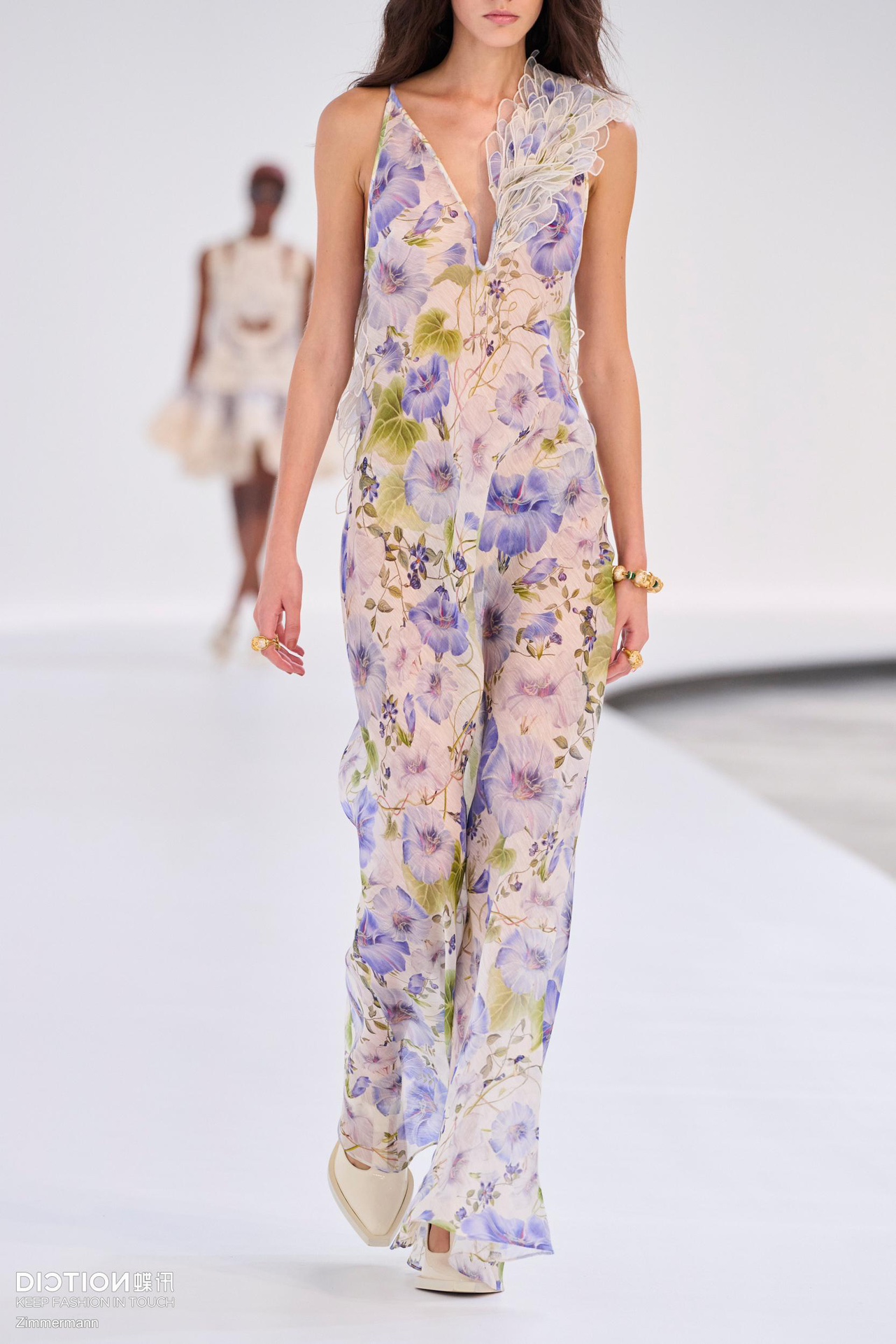 NIGO Zimmermann Women's Summer Floral Pattern Printed Three-dimensional Feather V-neck Strapless Dress #nigo77984