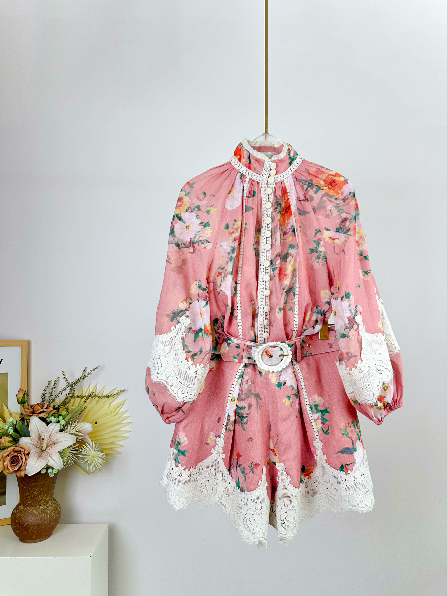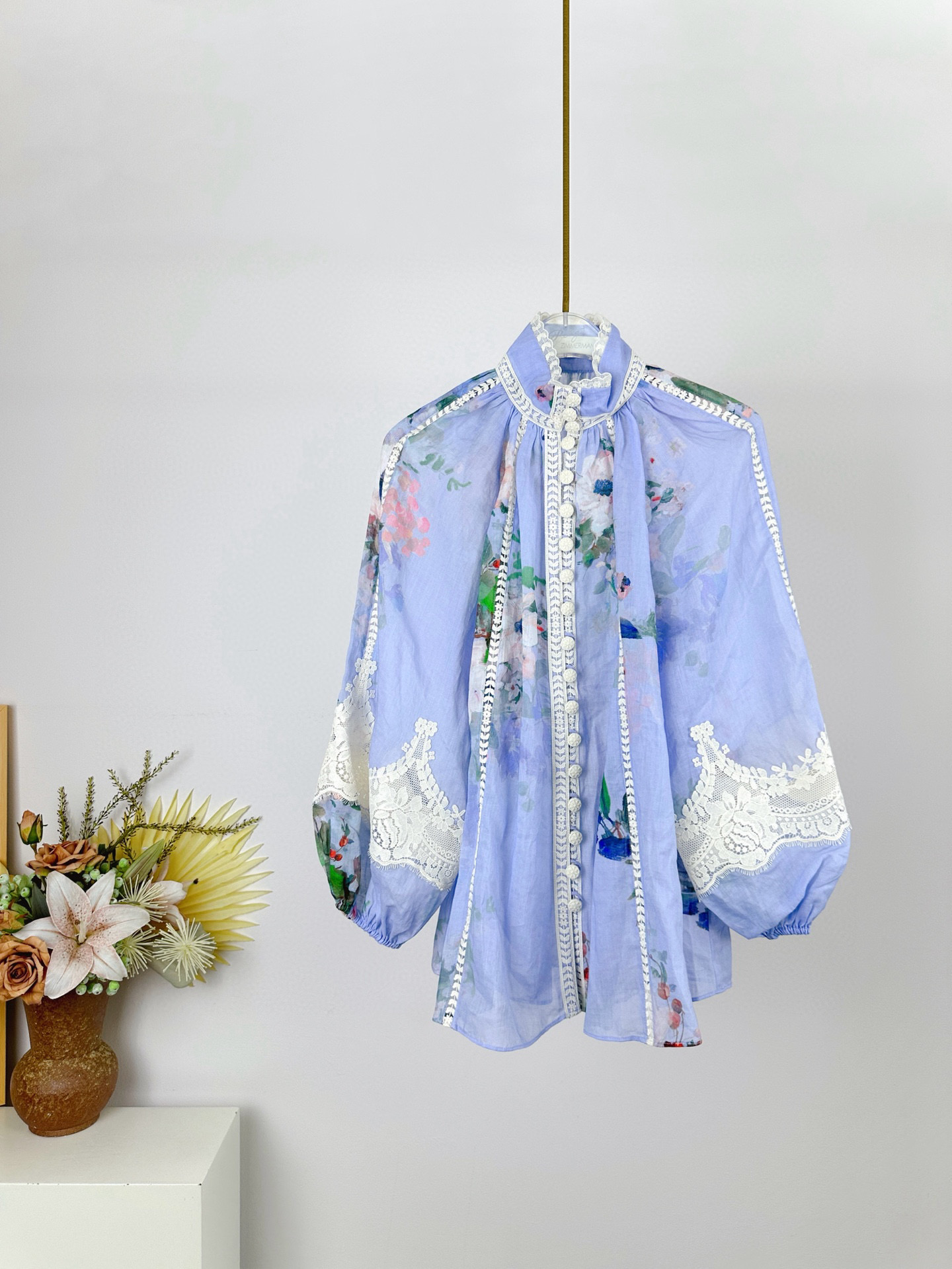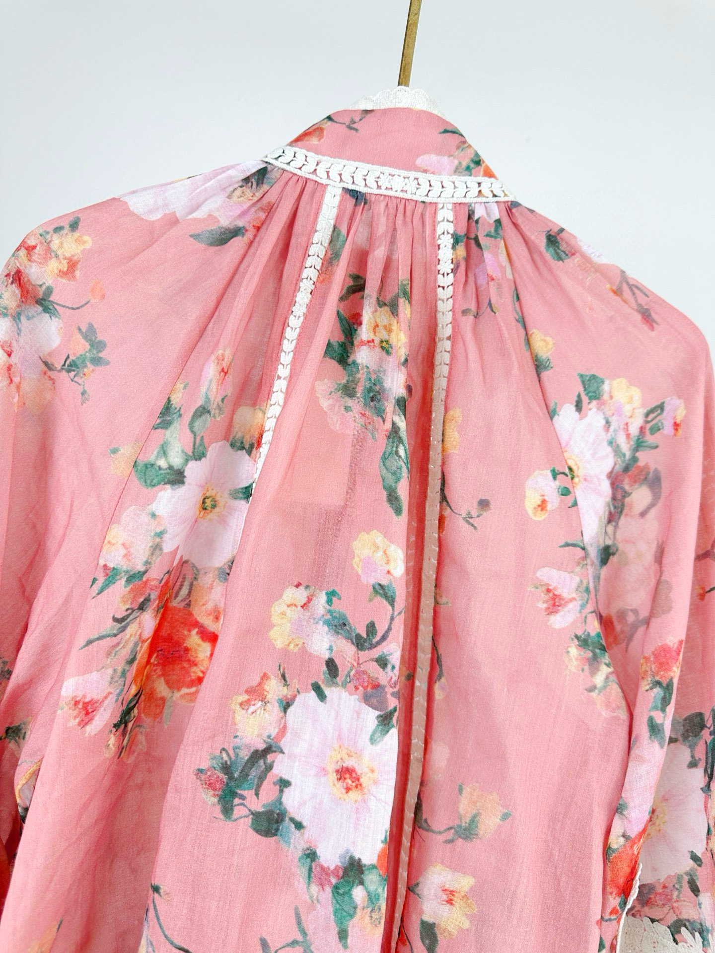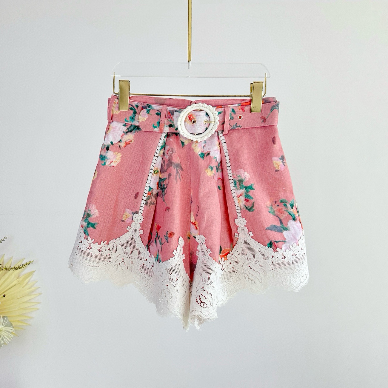 NIGO Zimmermann Women's Summer Floral Print Lace Trim Single Breasted Thin Long Sleeved Shirt And Casual Lace Shorts Set Suit #nigo77434