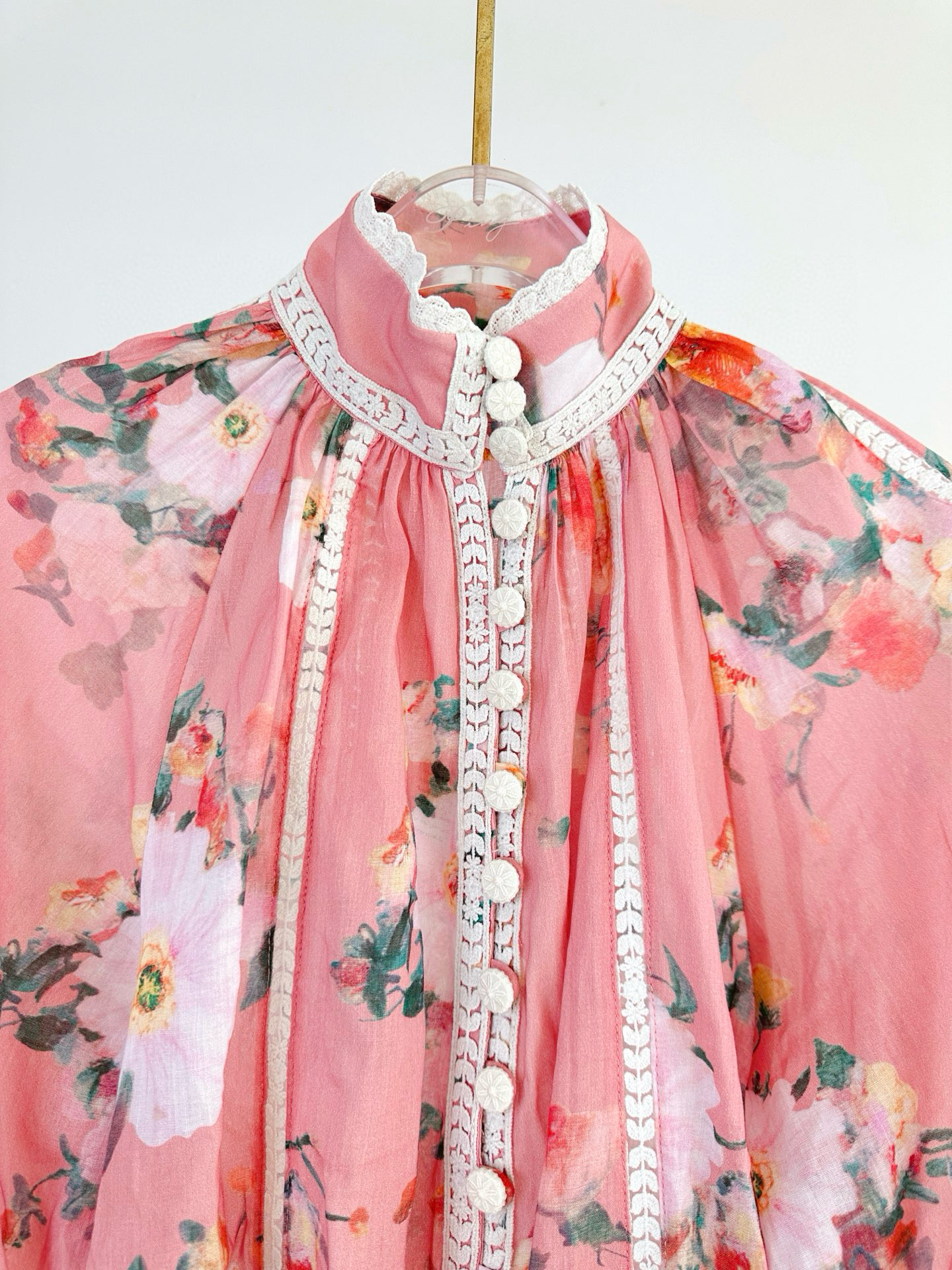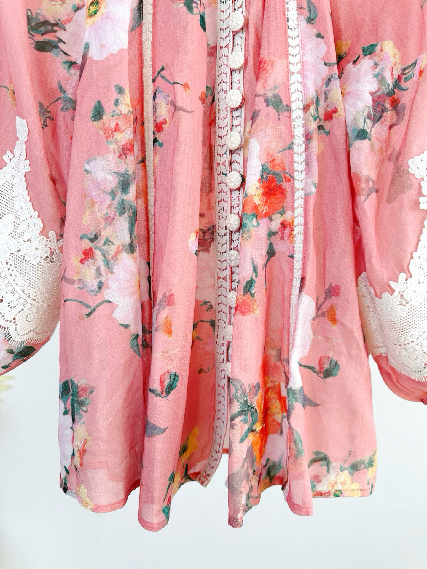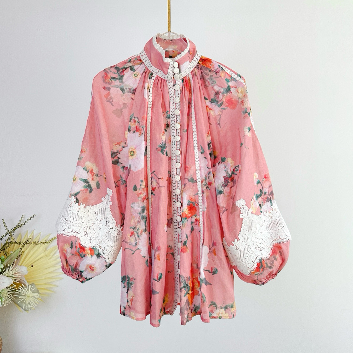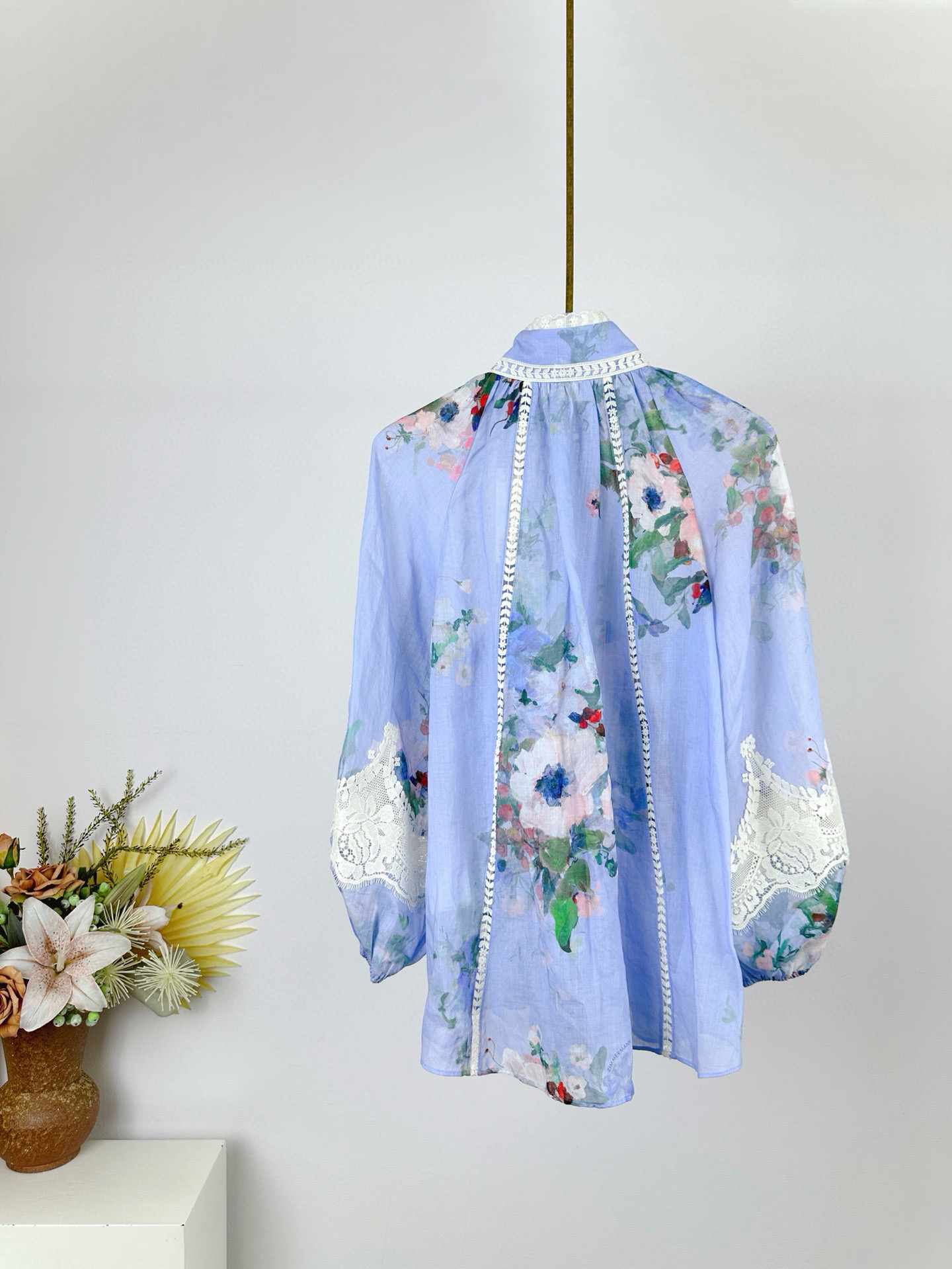 NIGO Zimmermann Women's Summer Floral Print Lace Trim Single Breasted Thin Long Sleeved Shirt And Casual Lace Shorts Set Suit #nigo77434