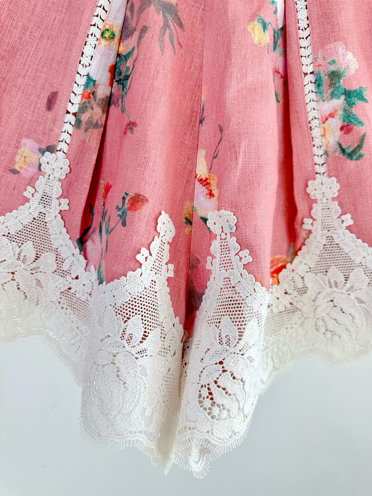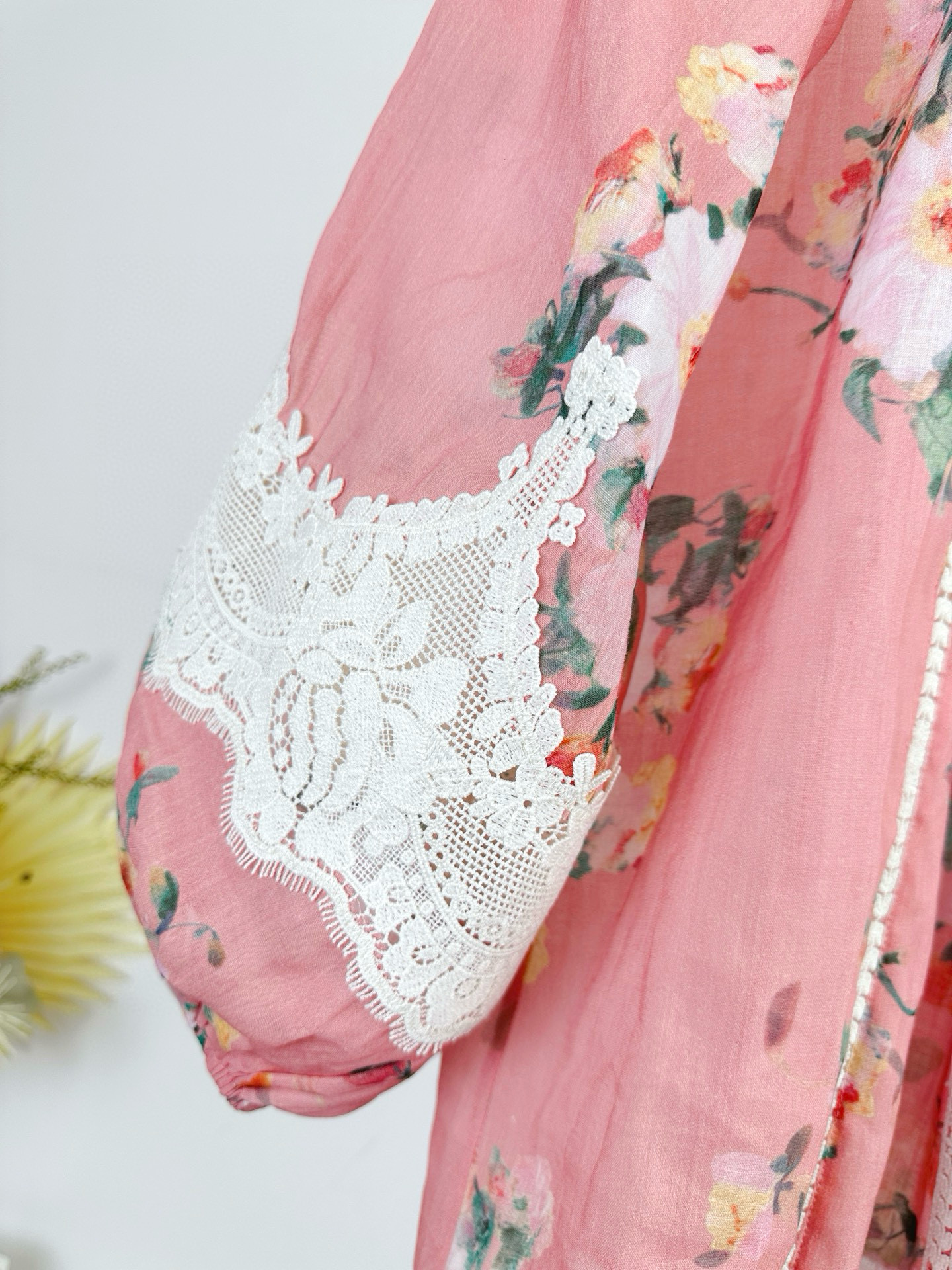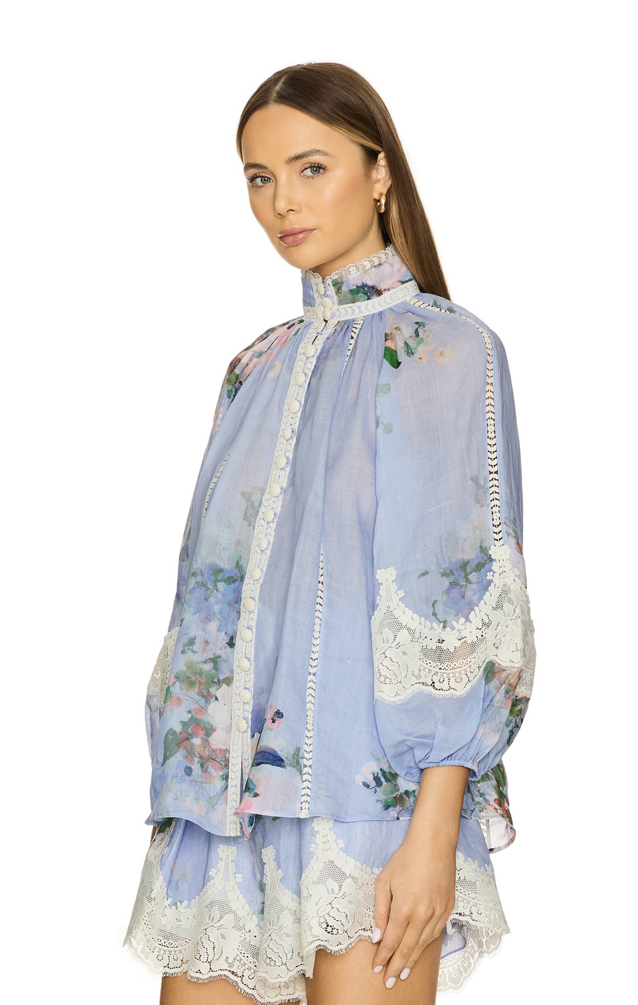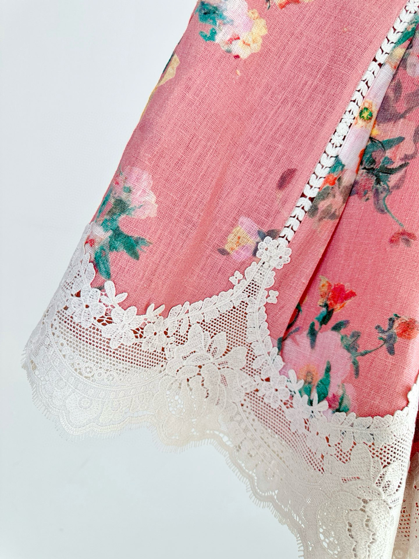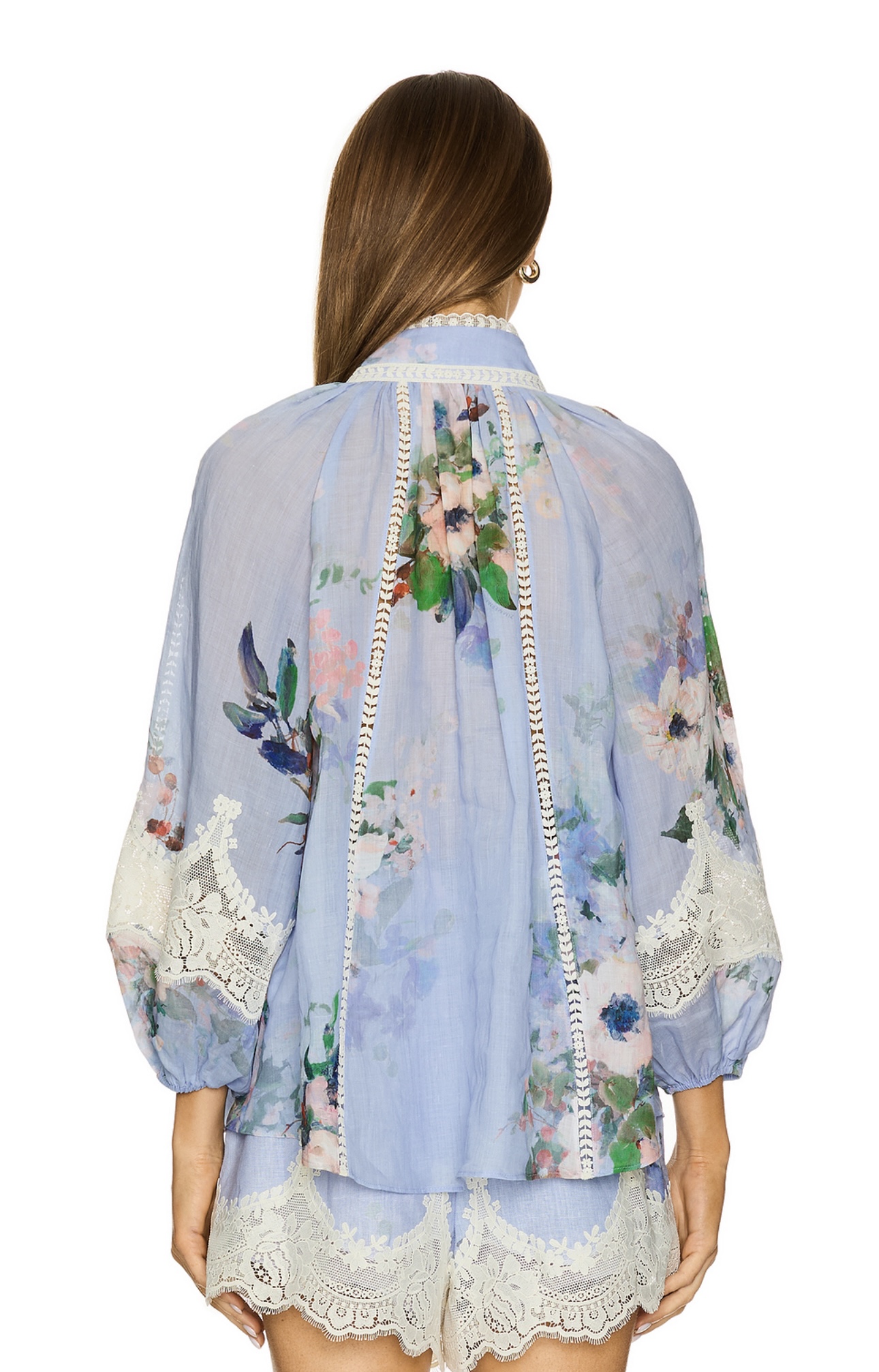 NIGO Zimmermann Women's Summer Floral Print Lace Trim Single Breasted Thin Long Sleeved Shirt And Casual Lace Shorts Set Suit #nigo77434