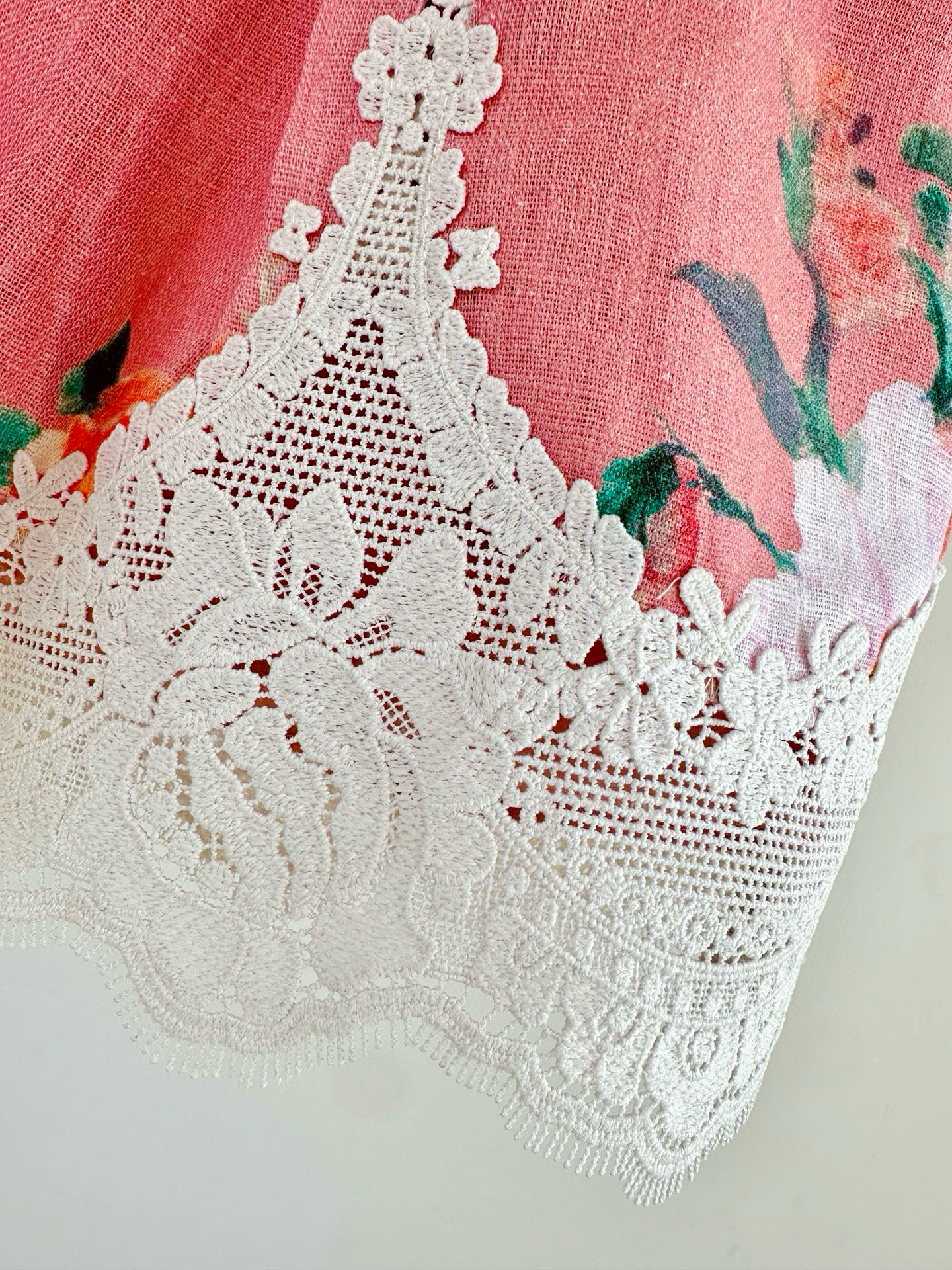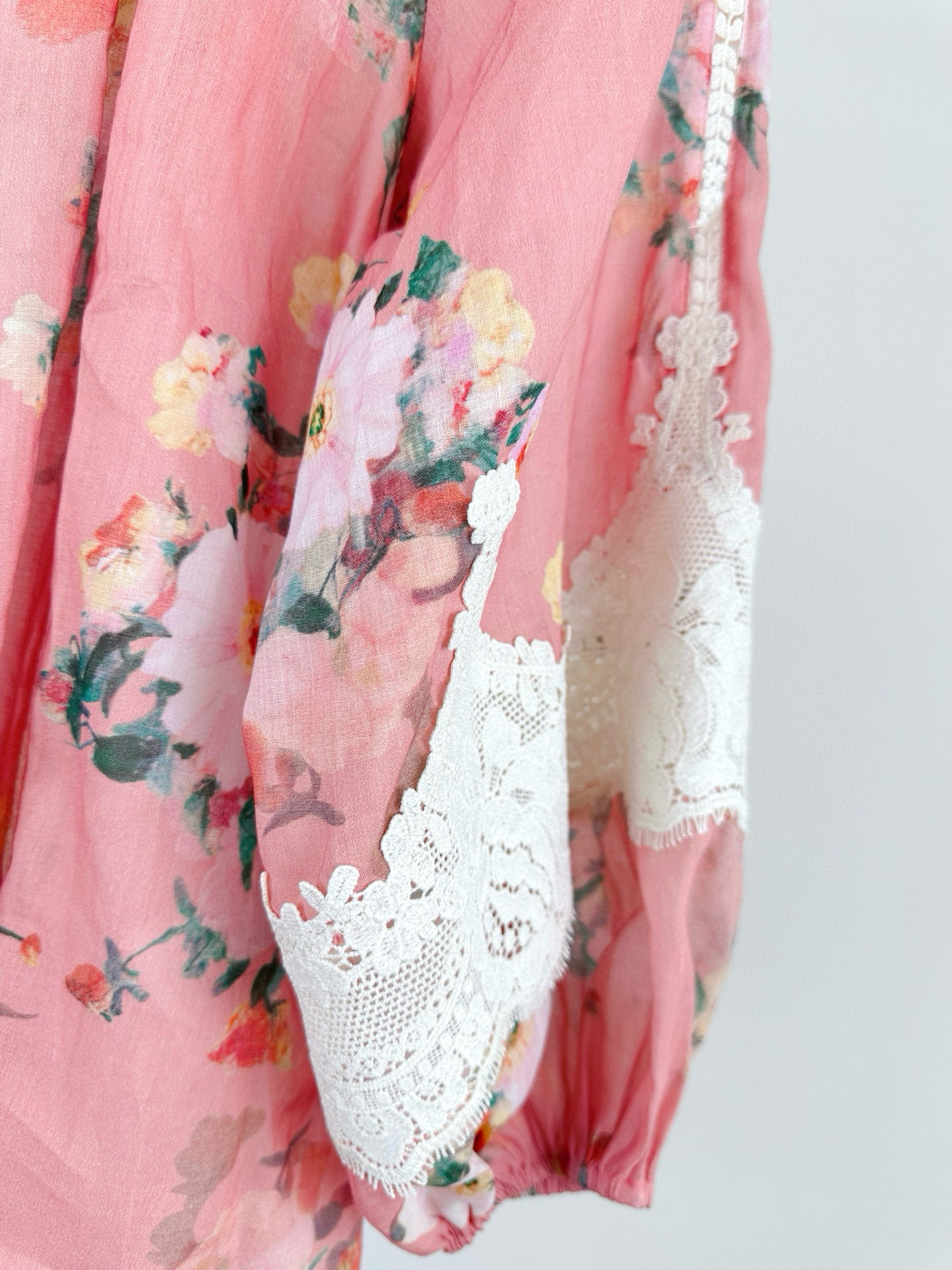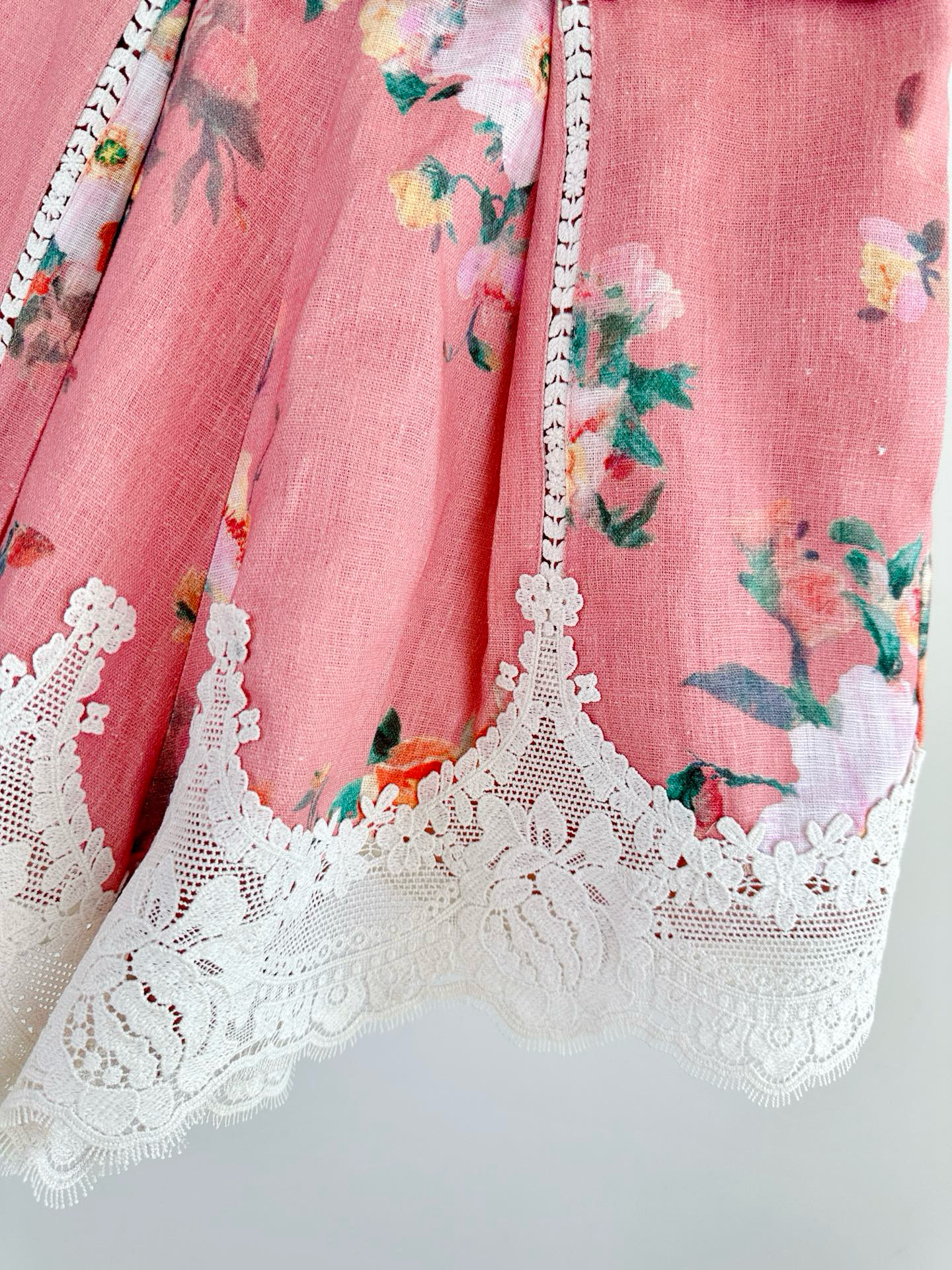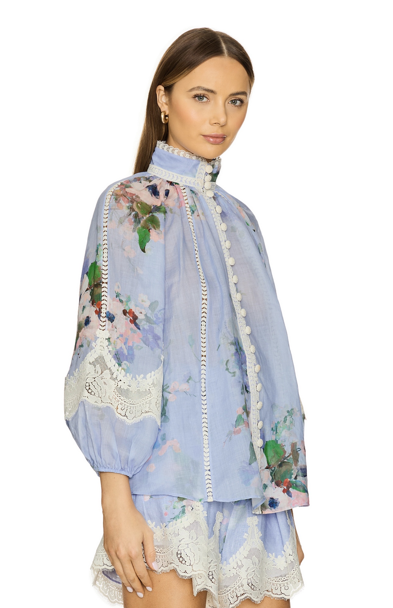 NIGO Zimmermann Women's Summer Floral Print Lace Trim Single Breasted Thin Long Sleeved Shirt And Casual Lace Shorts Set Suit #nigo77434