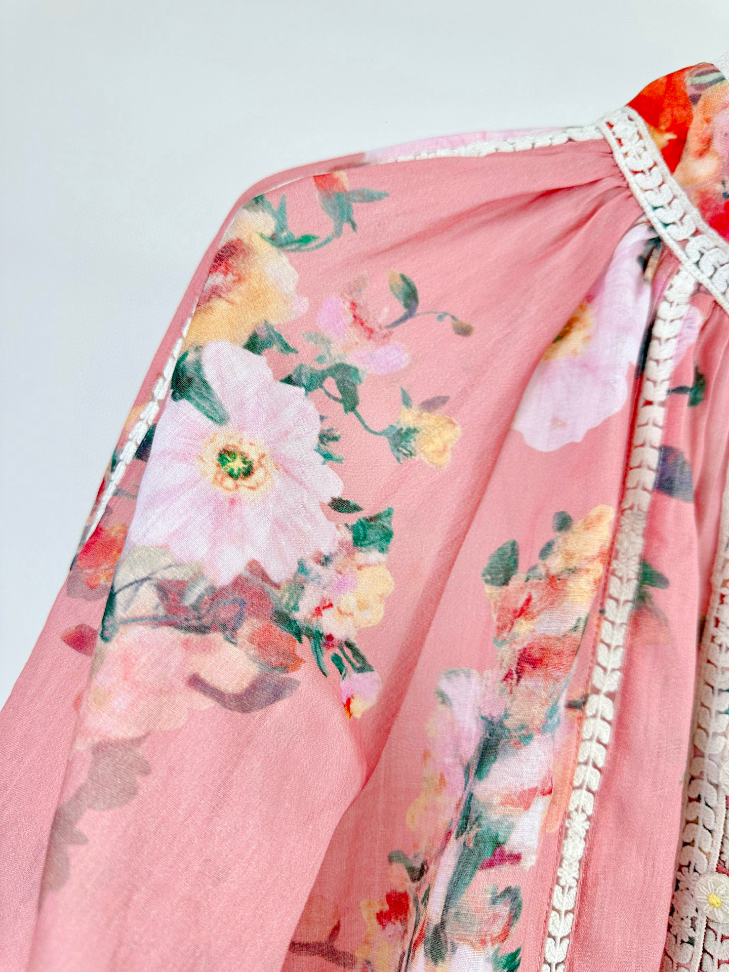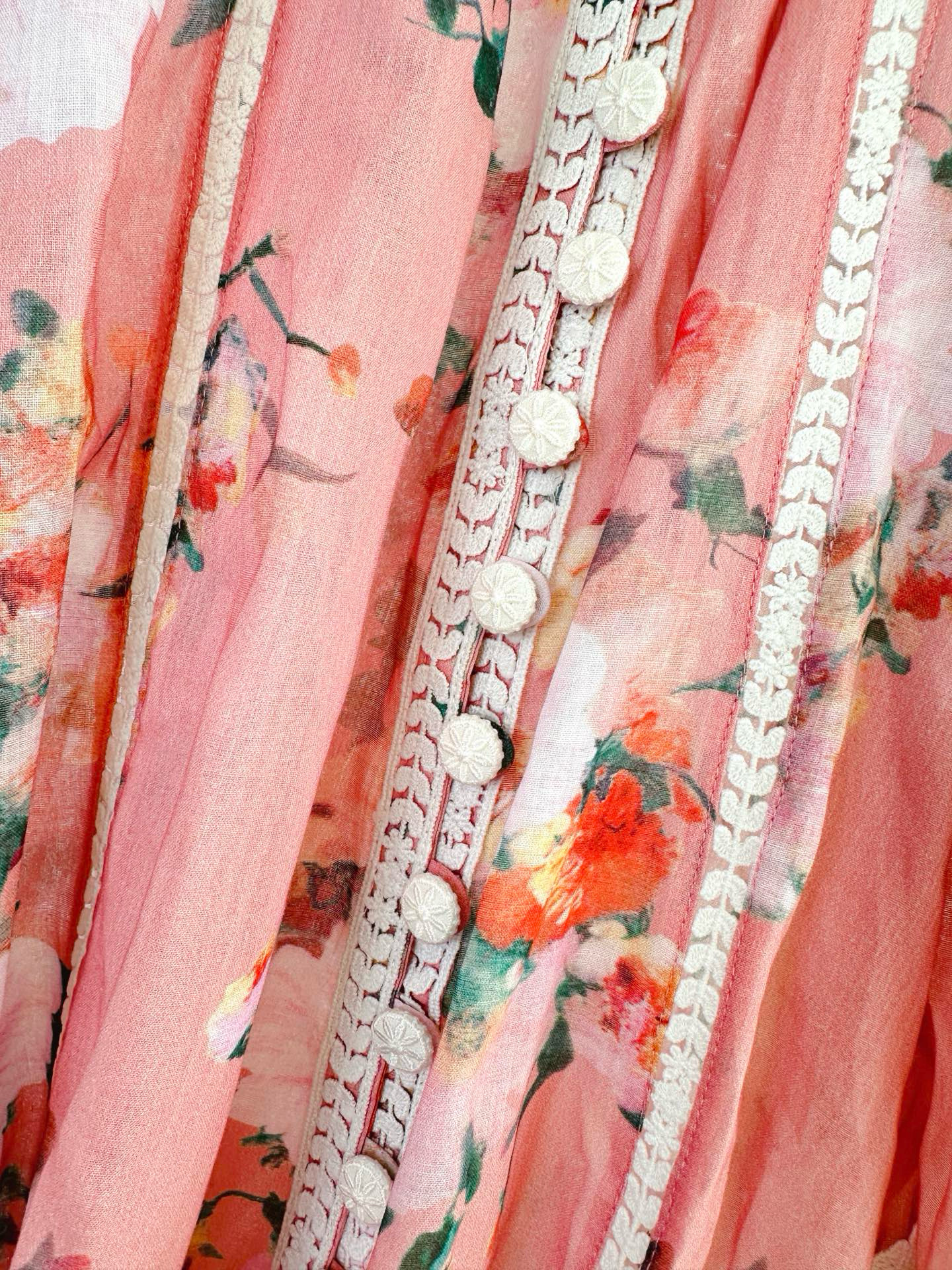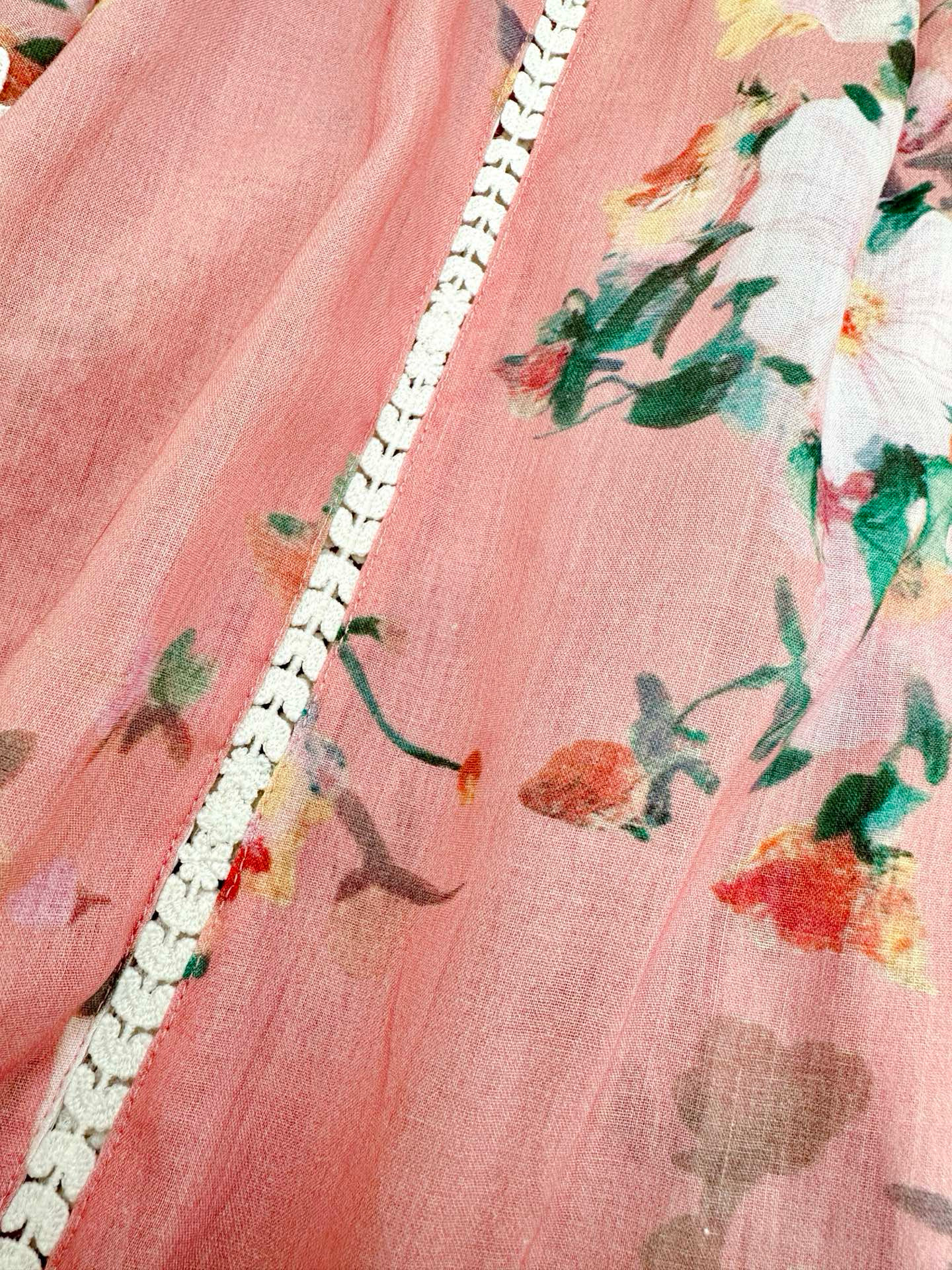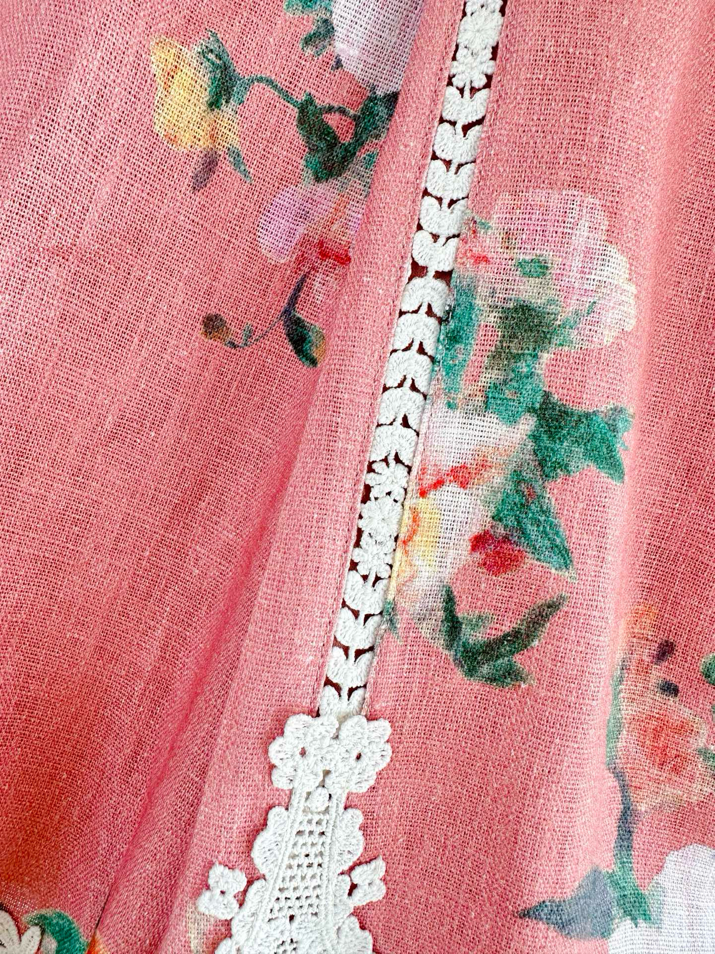 NIGO Zimmermann Women's Summer Floral Print Lace Trim Single Breasted Thin Long Sleeved Shirt And Casual Lace Shorts Set Suit #nigo77434