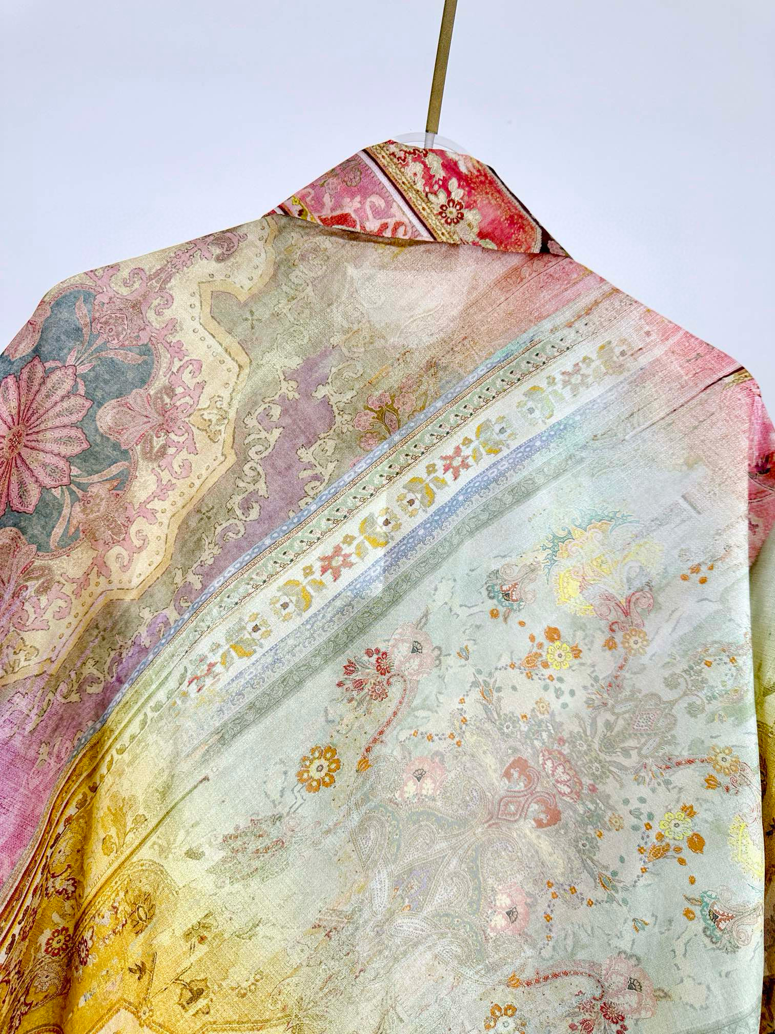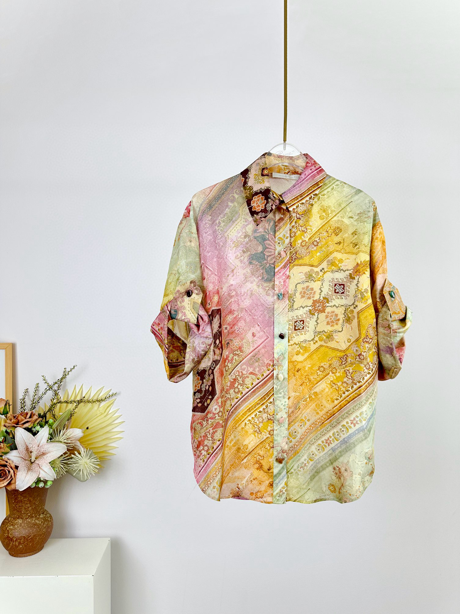 NIGO Zimmermann Women's Summer Patterned Printed Single Breasted Short Sleeved Shirt And Drawstring Casual Pants Set Suit #nigo77436