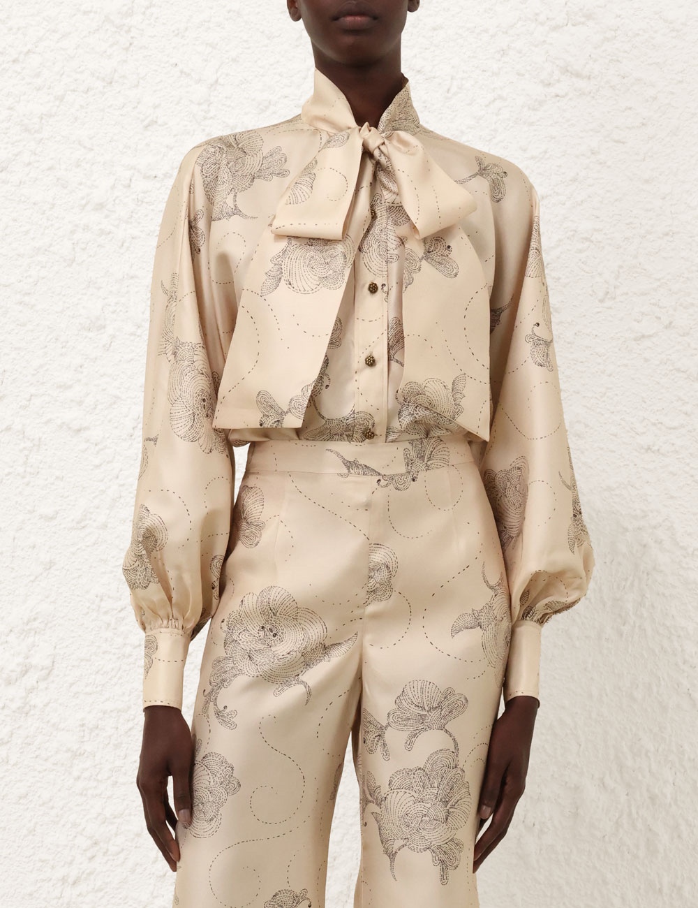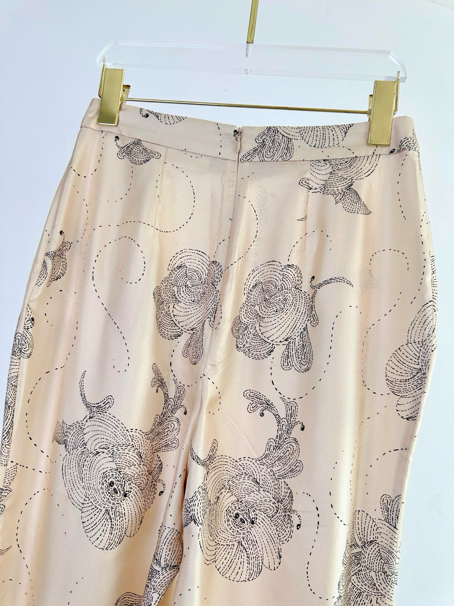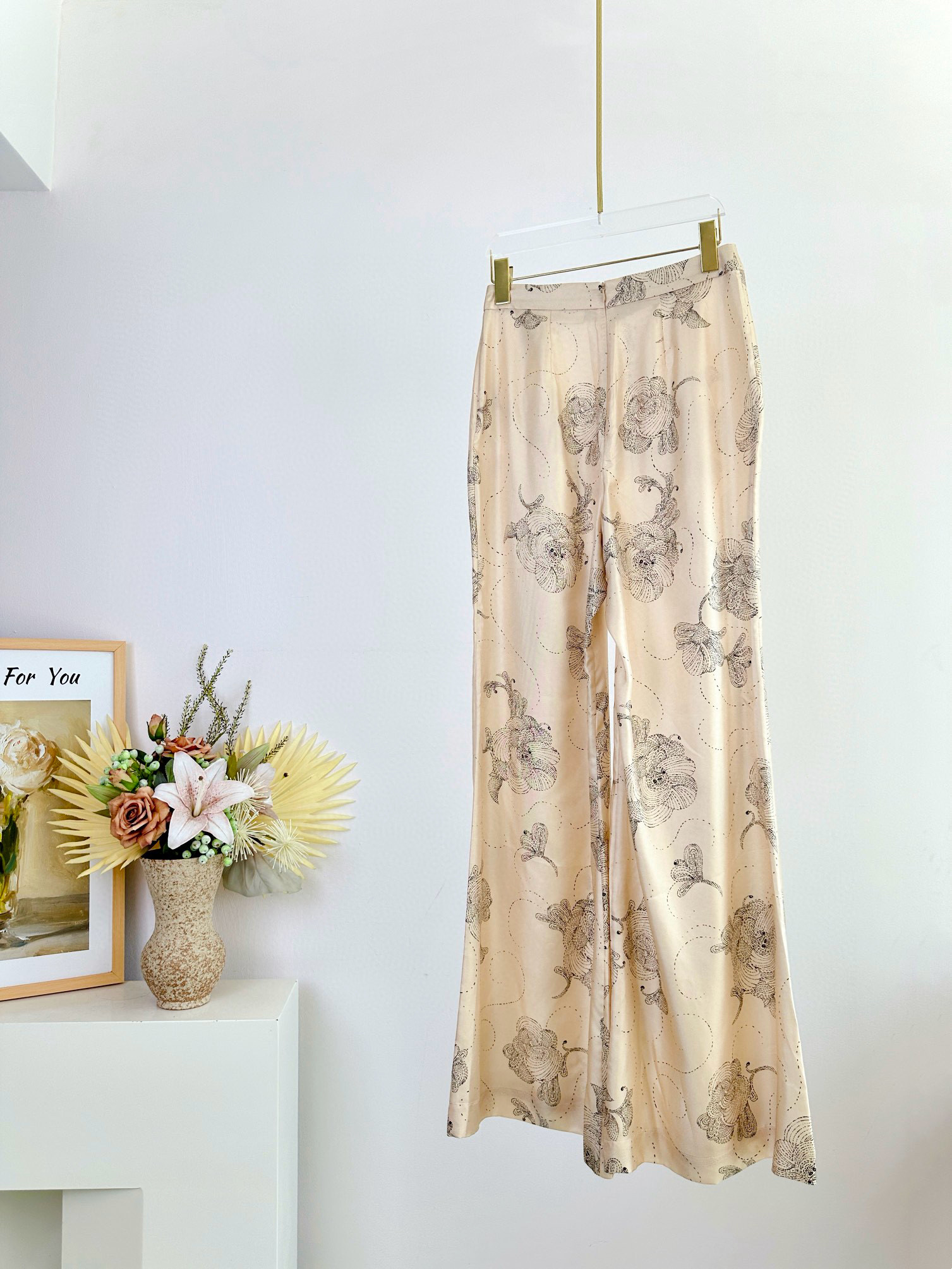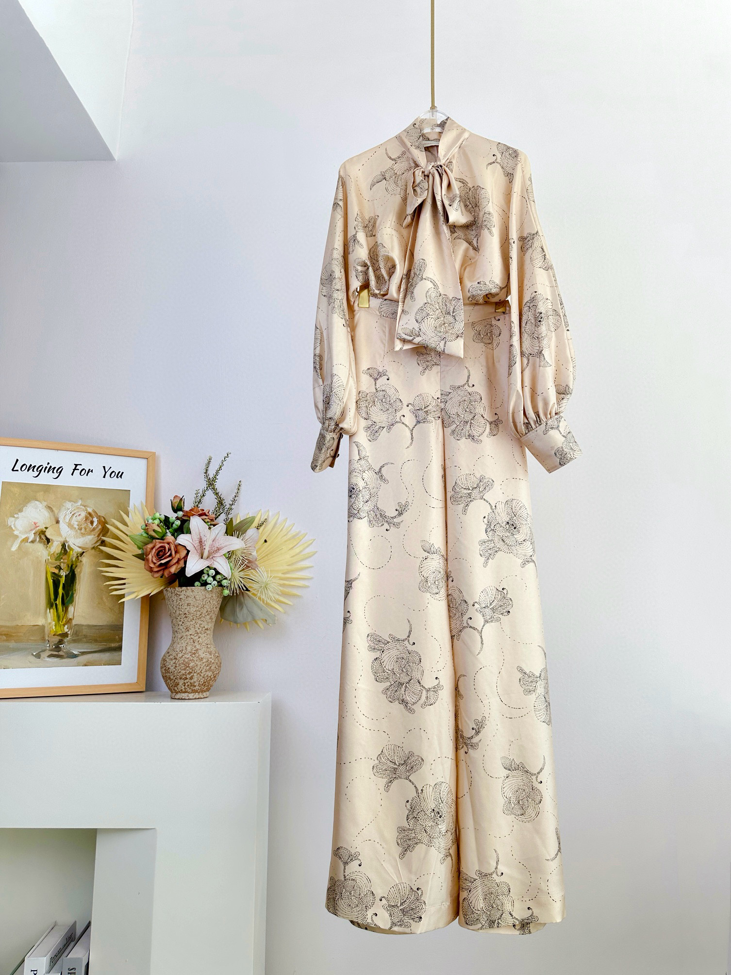NIGO Zimmermann Women's Summer Sketch Floral Print Bow Tie Collar Solid Colour Single Breasted Silk Shirt Slim Pants Suit Set #nigo76951