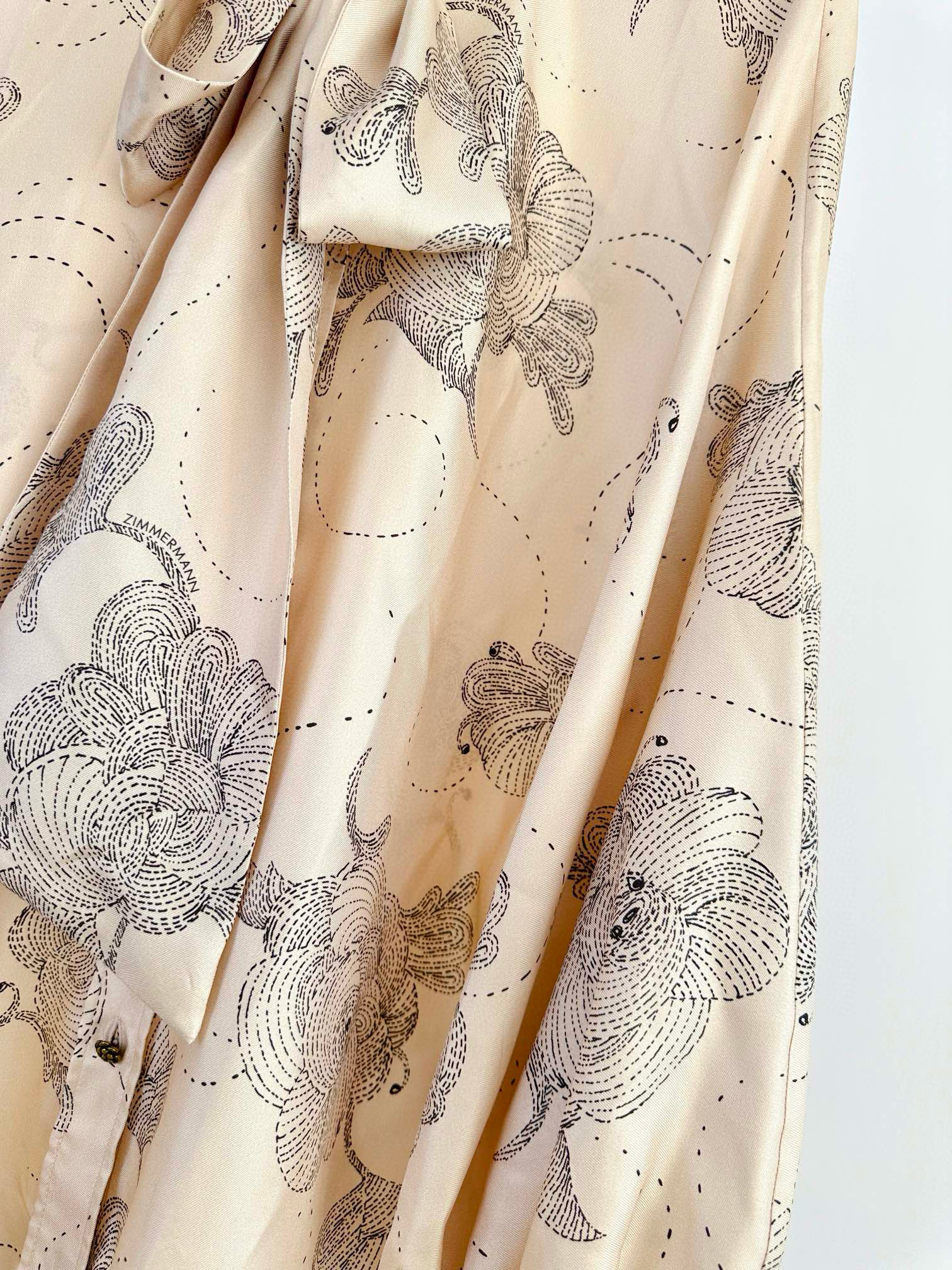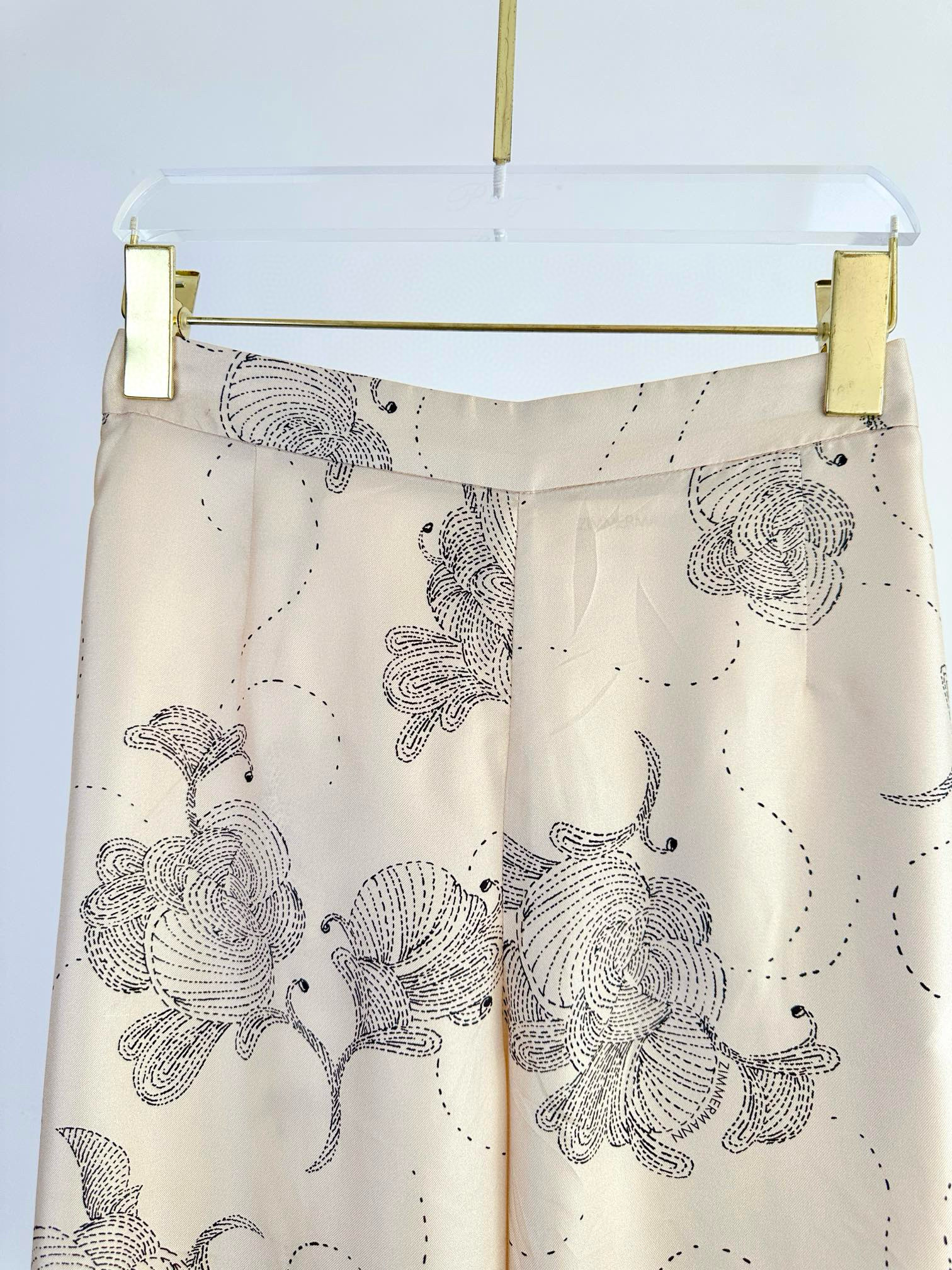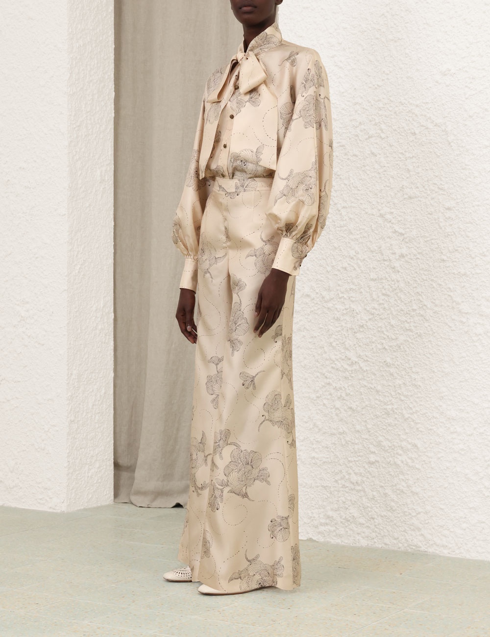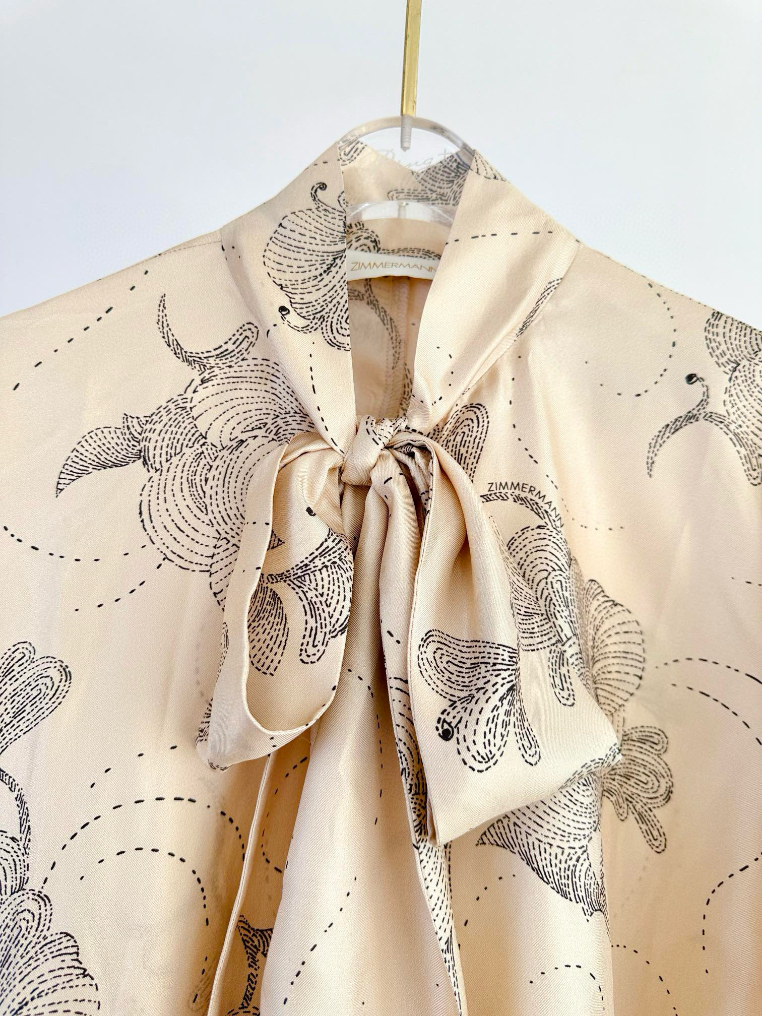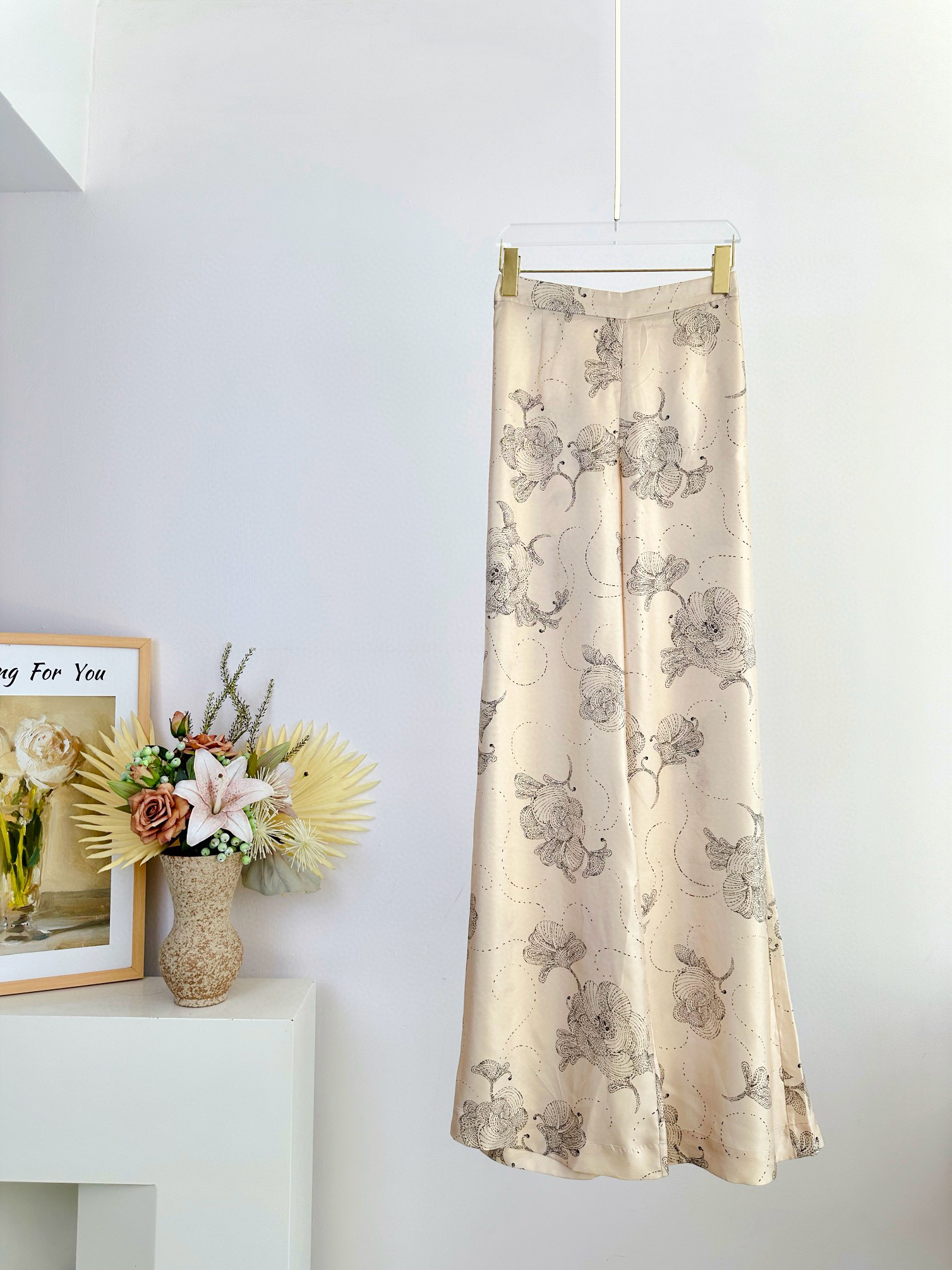 NIGO Zimmermann Women's Summer Sketch Floral Print Bow Tie Collar Solid Colour Single Breasted Silk Shirt Slim Pants Suit Set #nigo76951