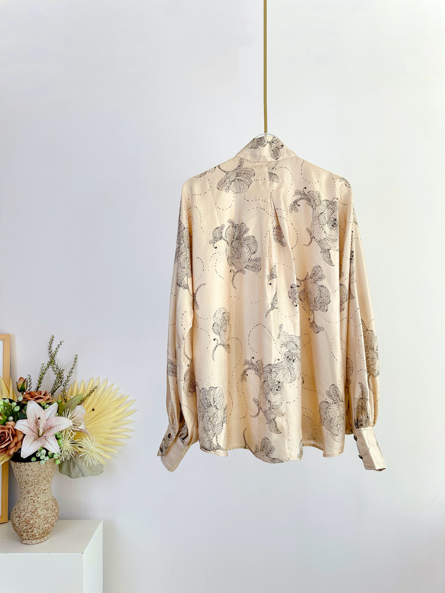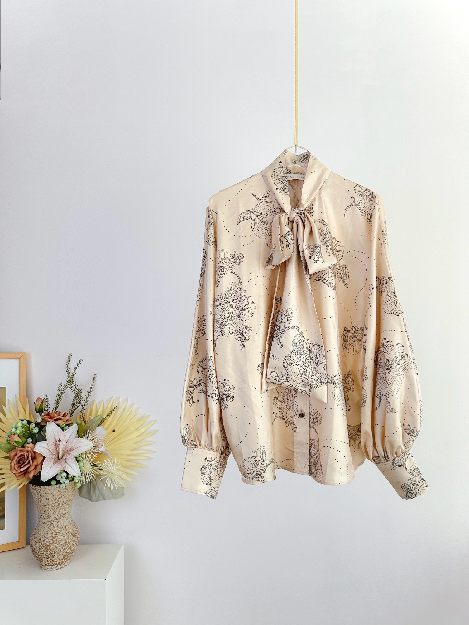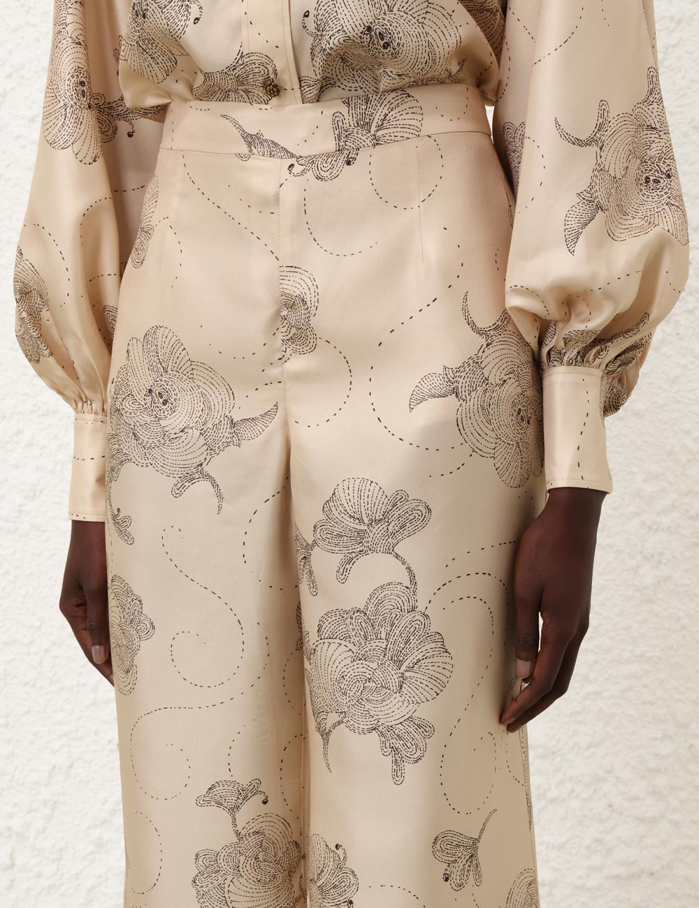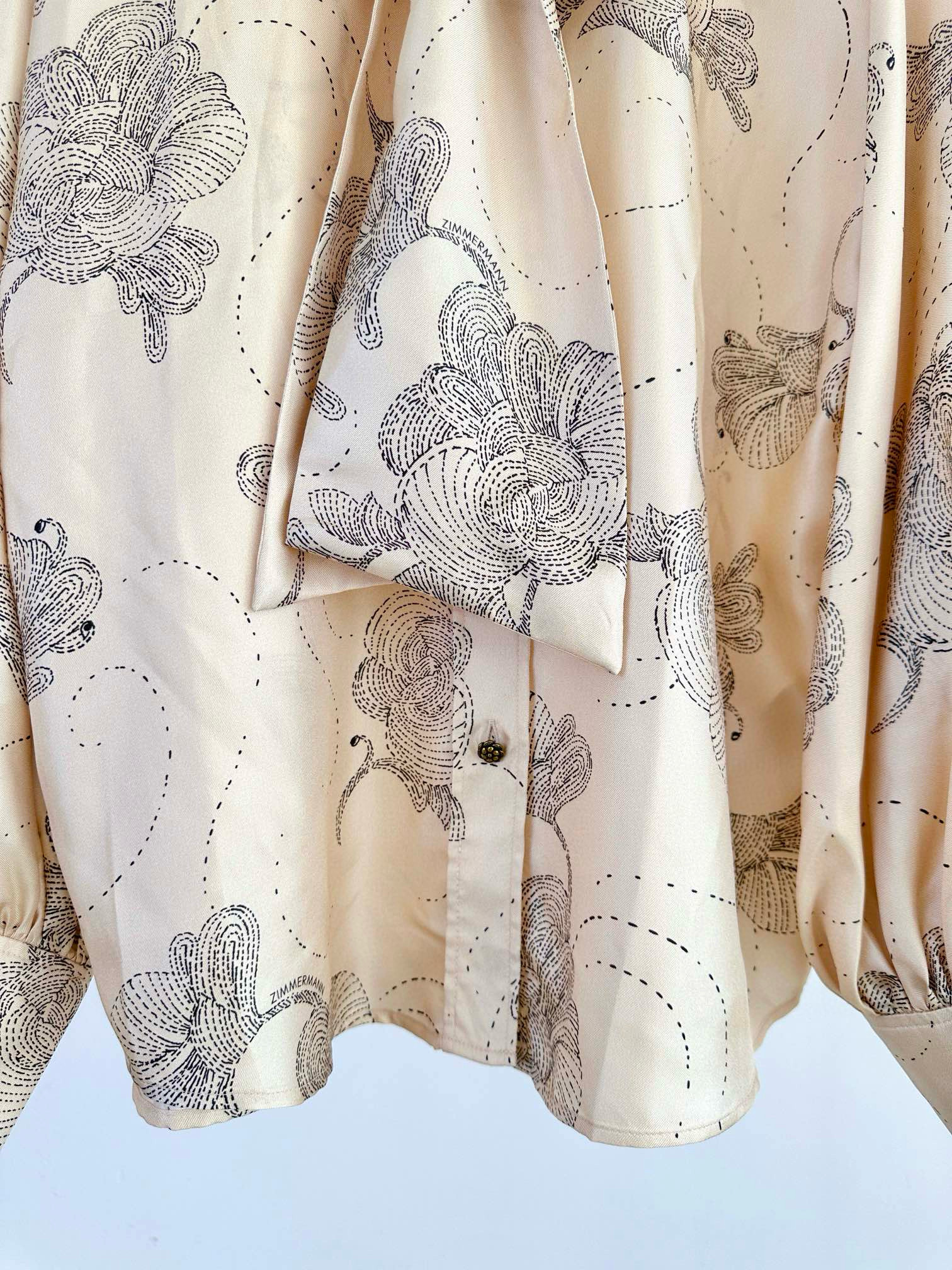 NIGO Zimmermann Women's Summer Sketch Floral Print Bow Tie Collar Solid Colour Single Breasted Silk Shirt Slim Pants Suit Set #nigo76951