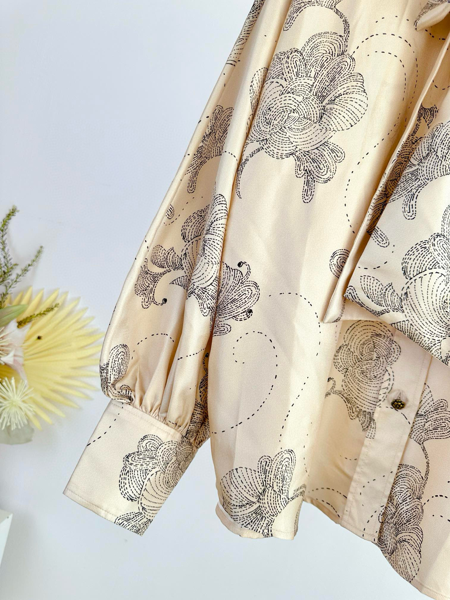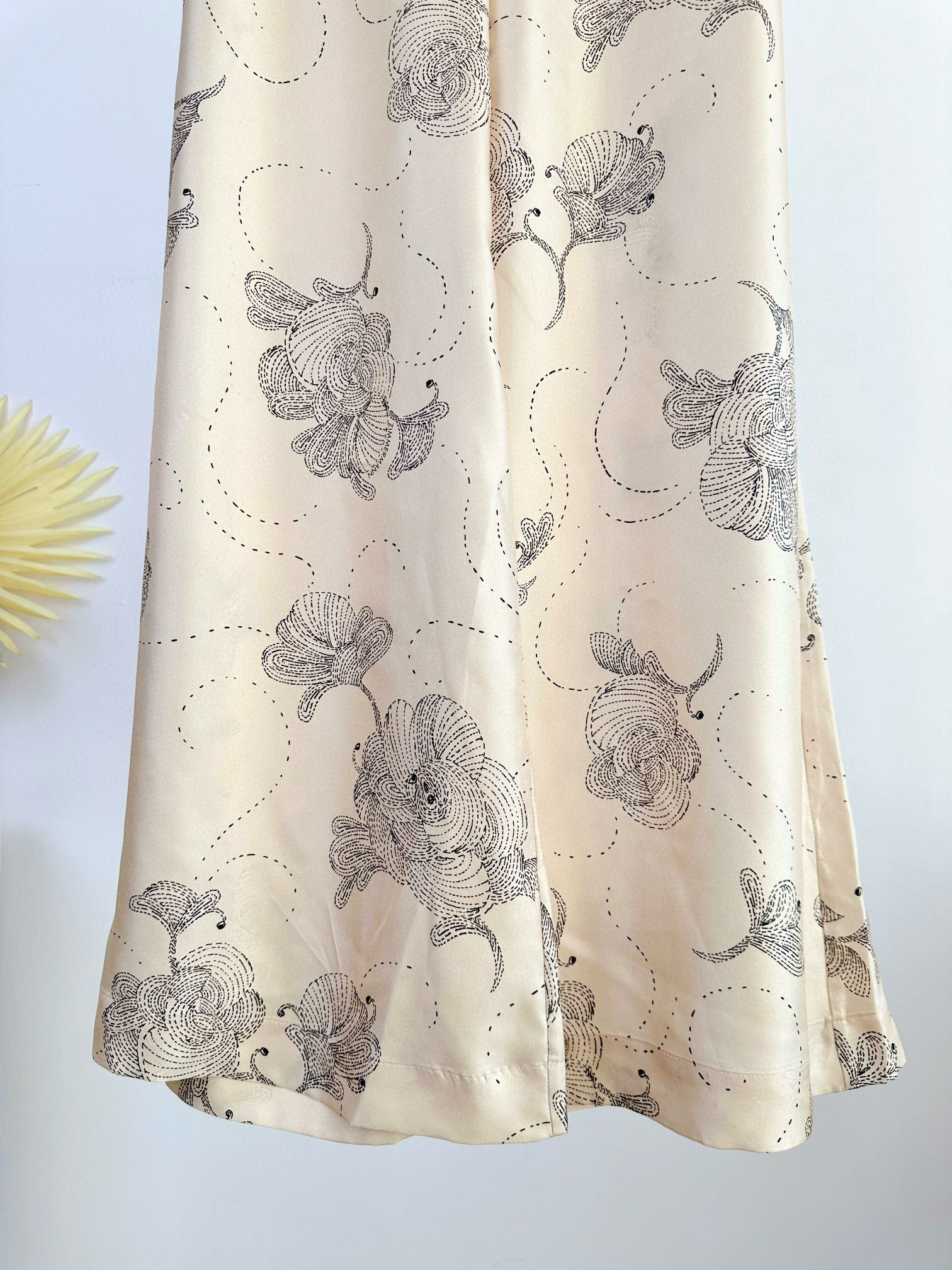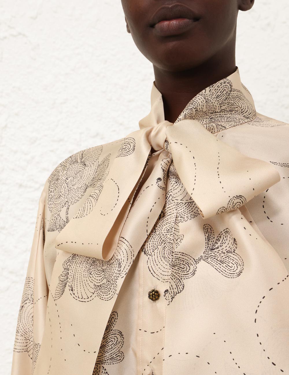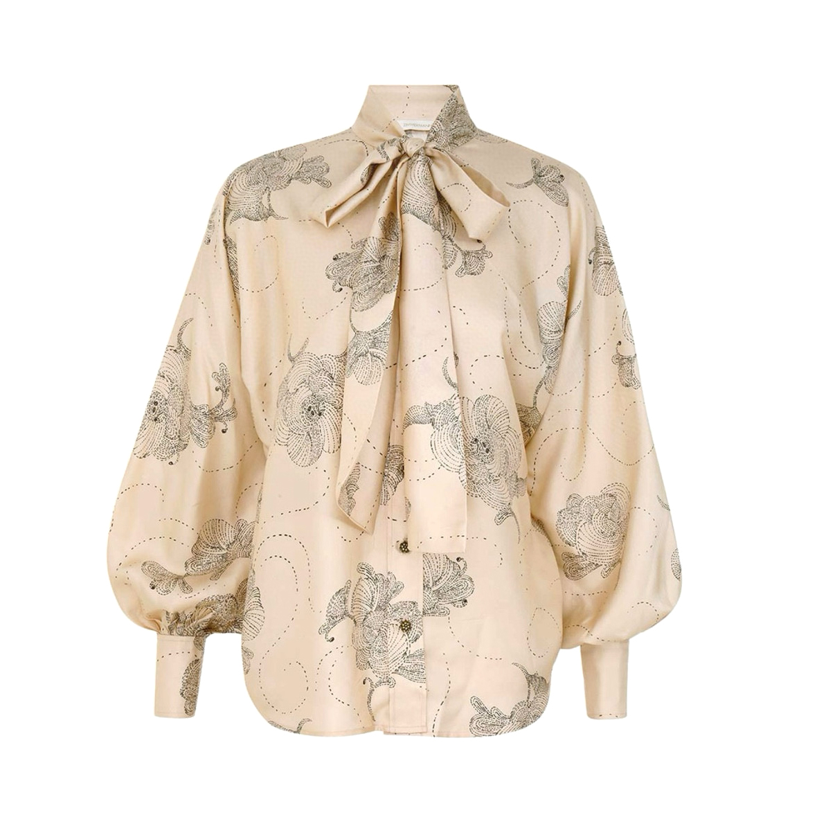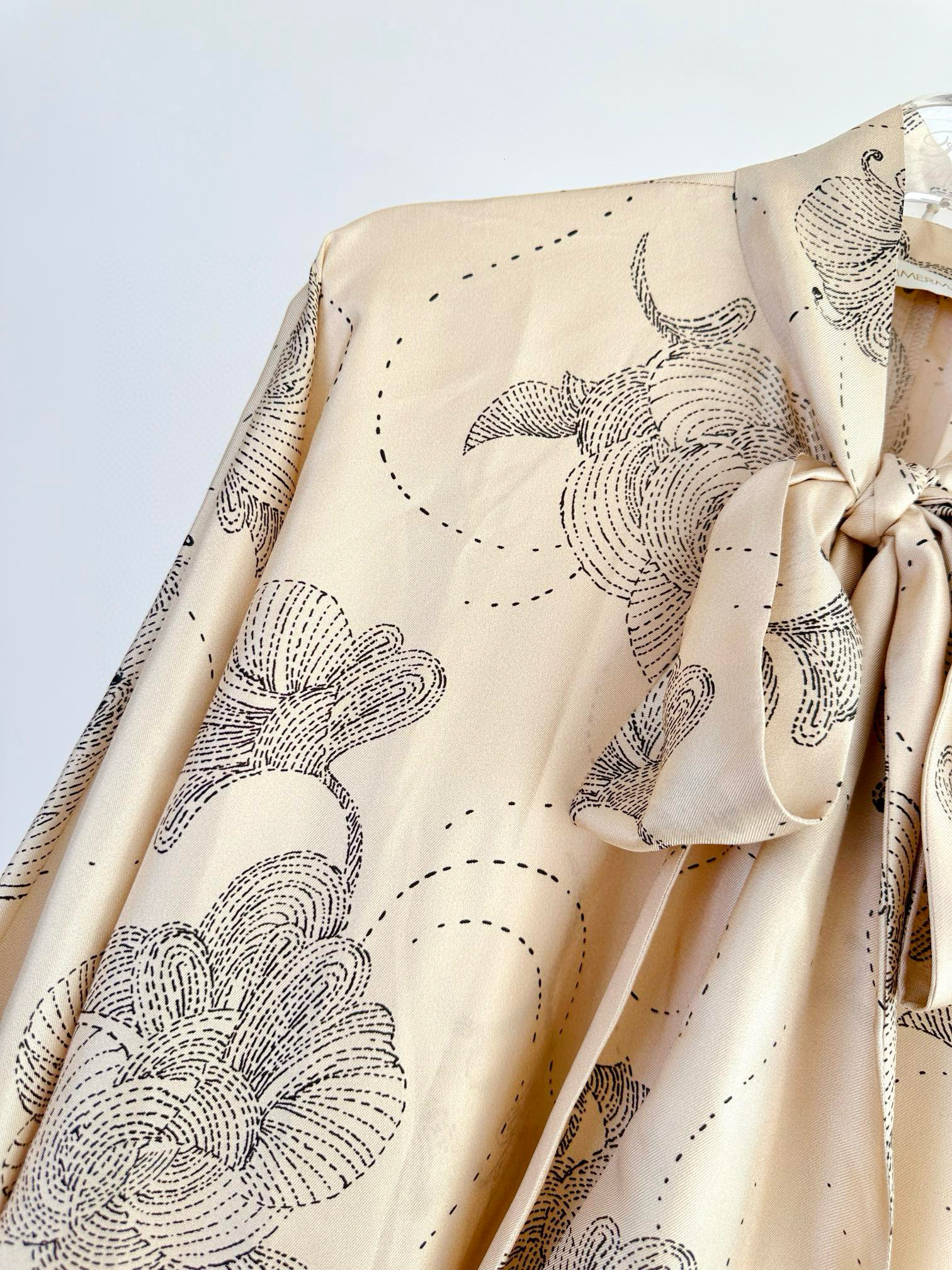 NIGO Zimmermann Women's Summer Sketch Floral Print Bow Tie Collar Solid Colour Single Breasted Silk Shirt Slim Pants Suit Set #nigo76951