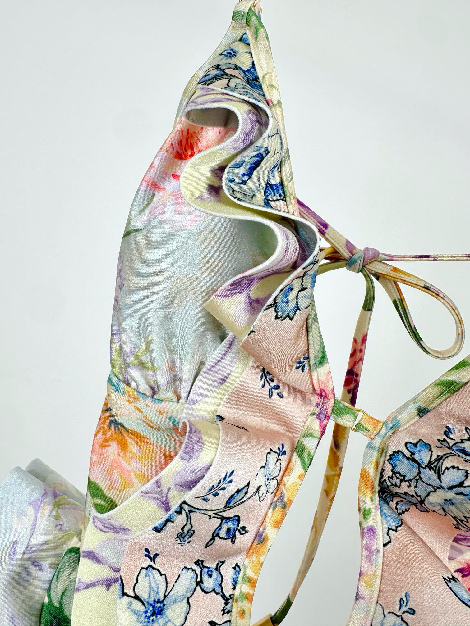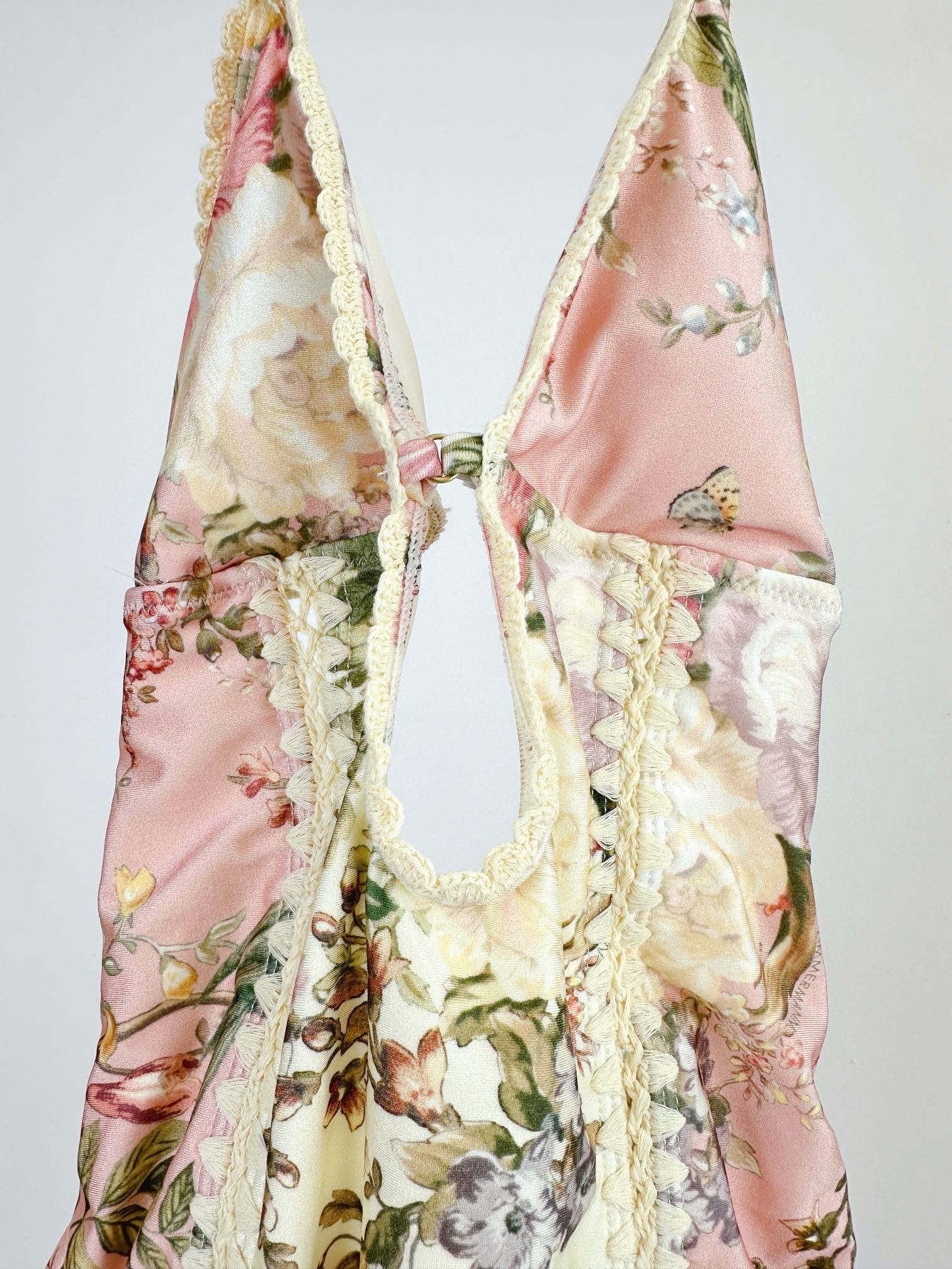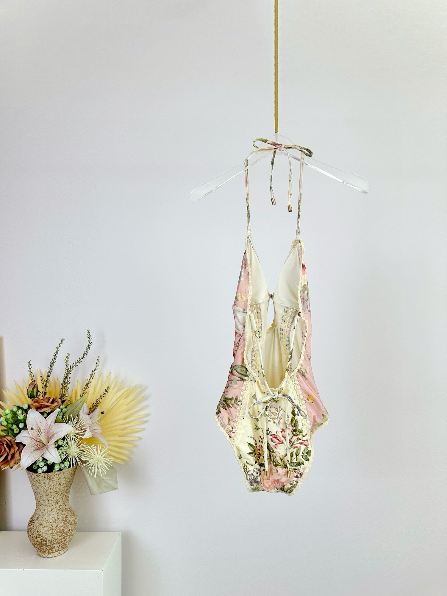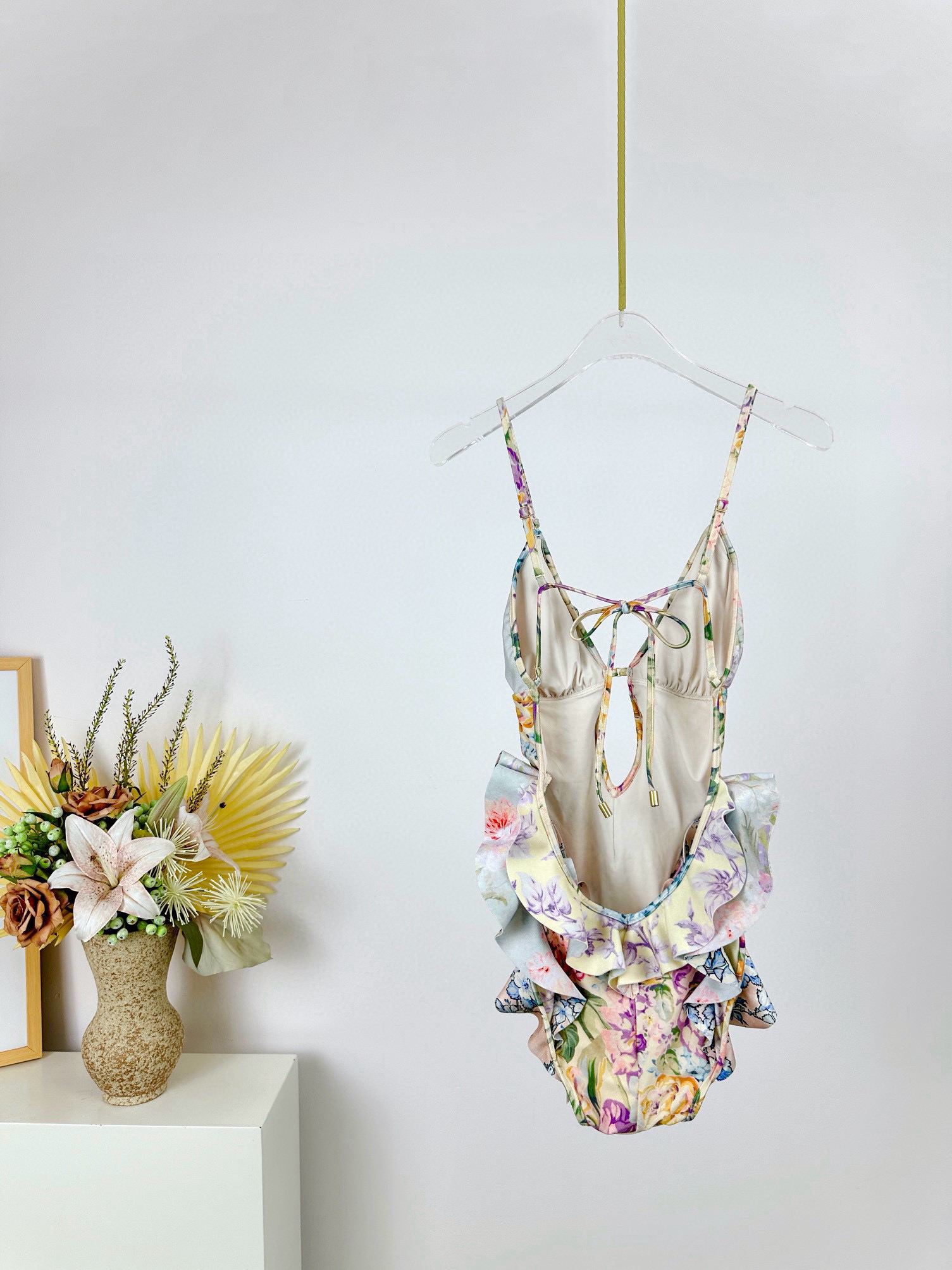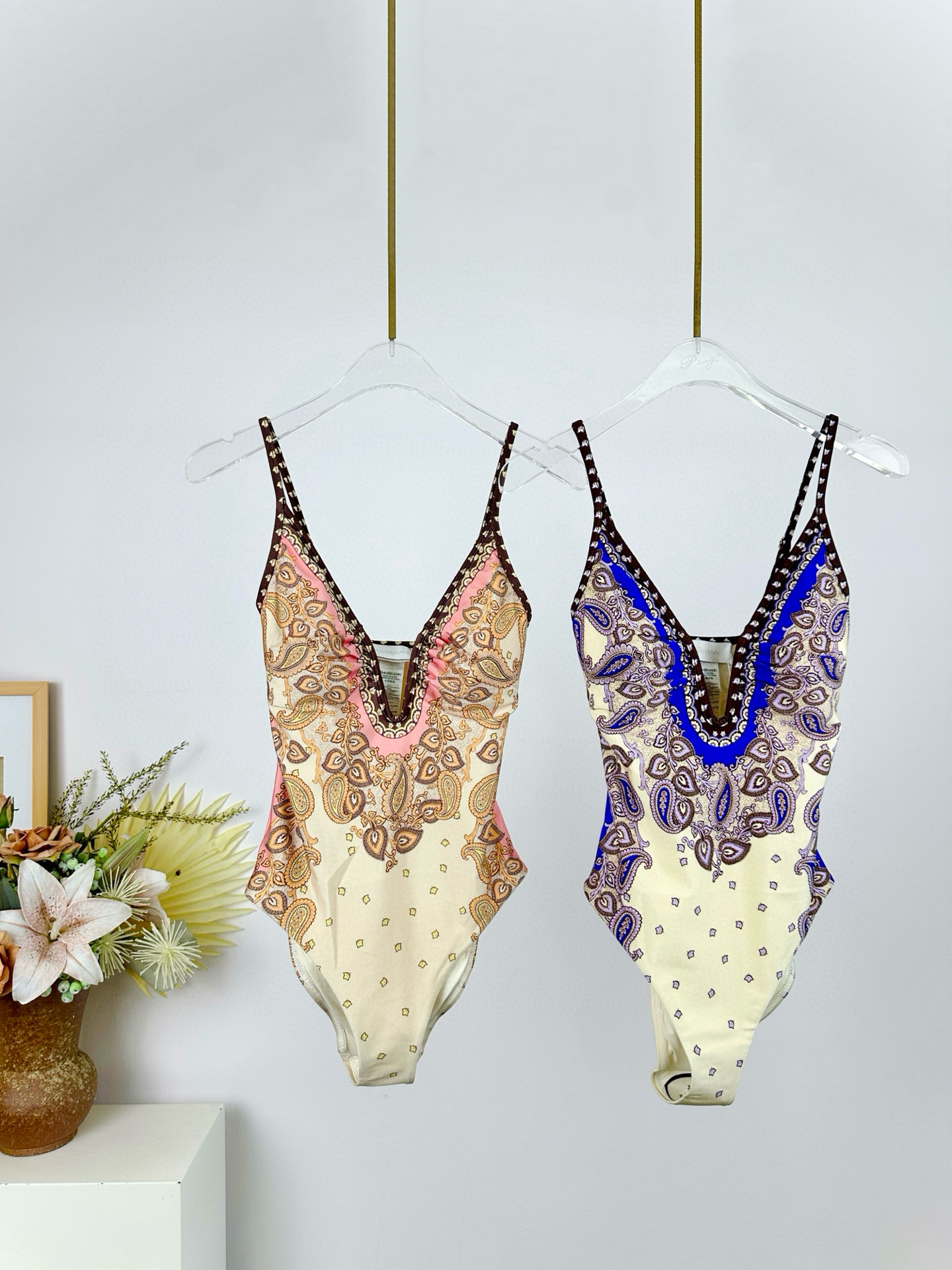 NIGO Zimmermann Women's Summer Deep V-neck Floral Pattern Printed Strapless One-piece Swimsuit Top #nigo77287