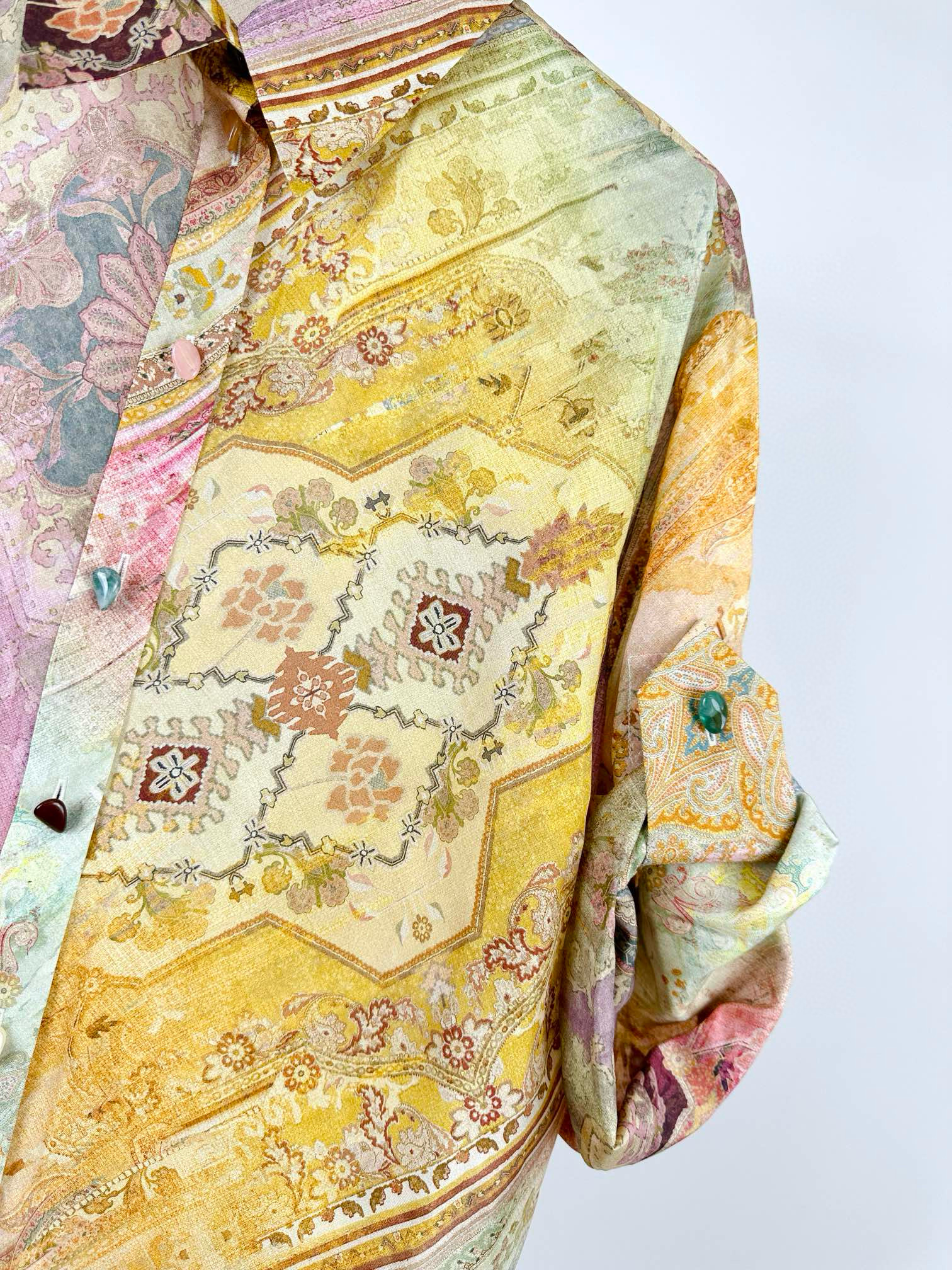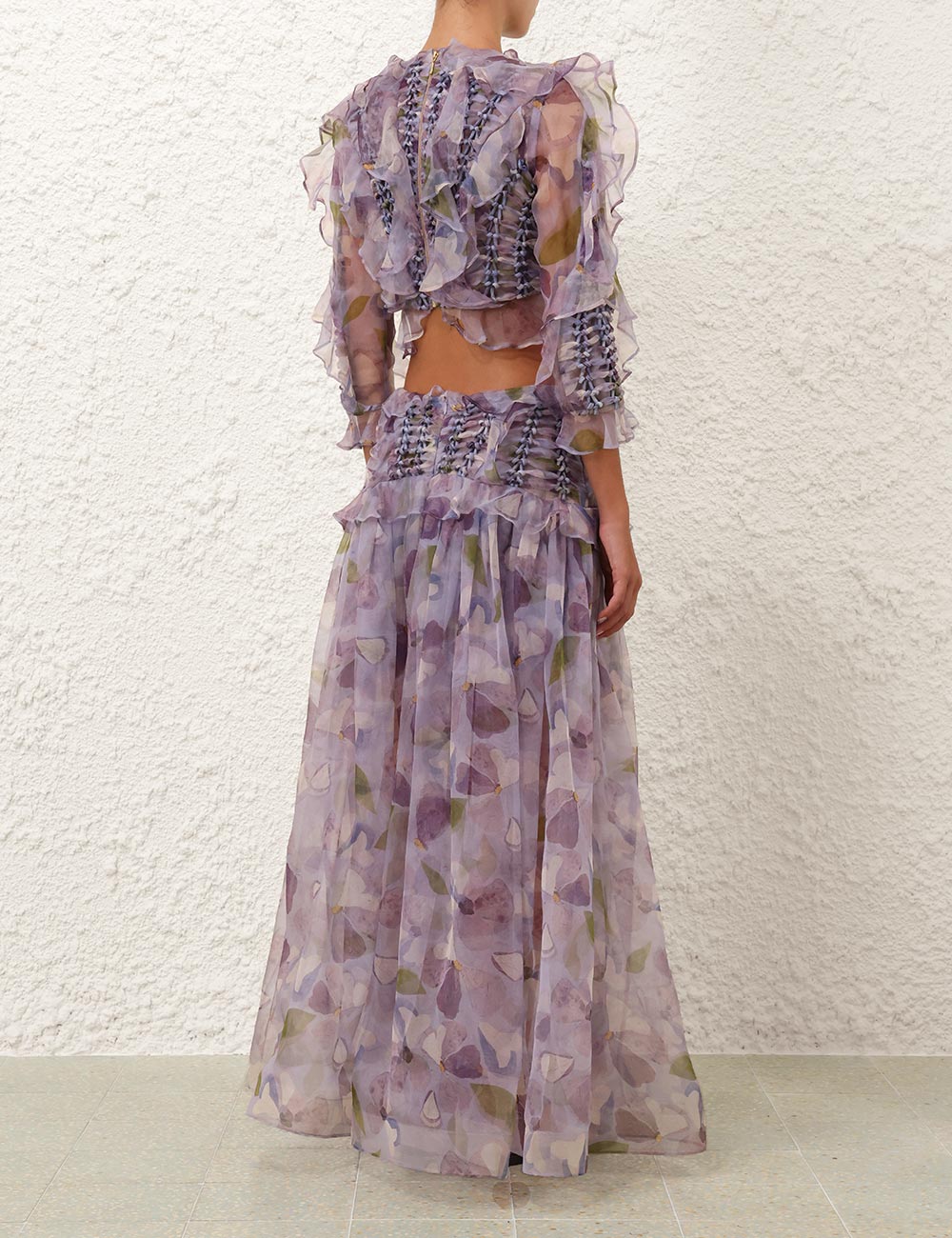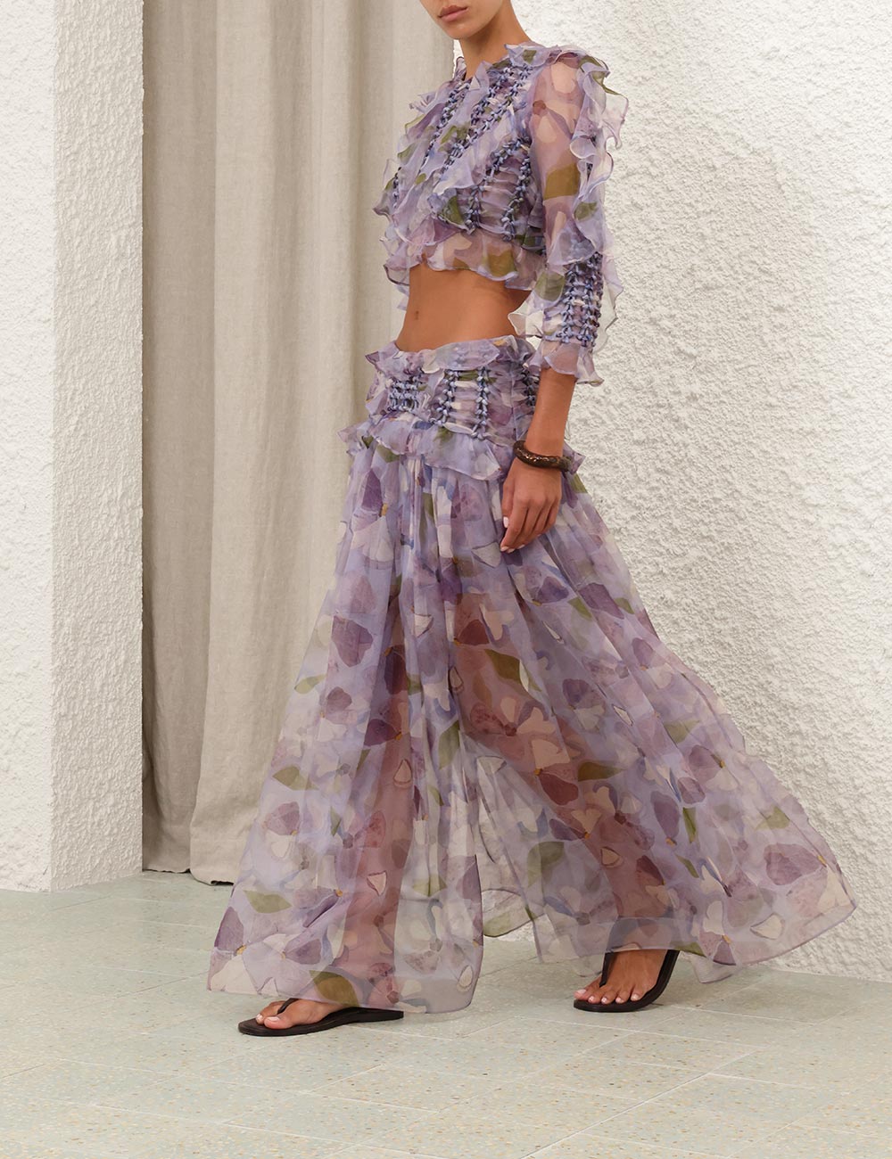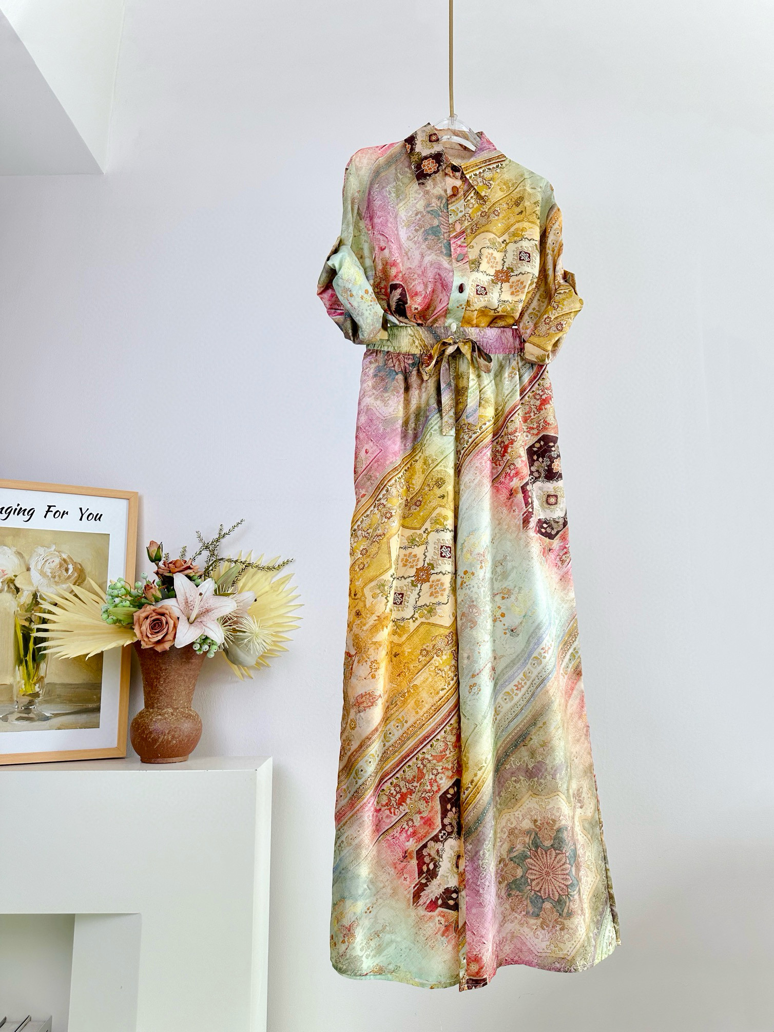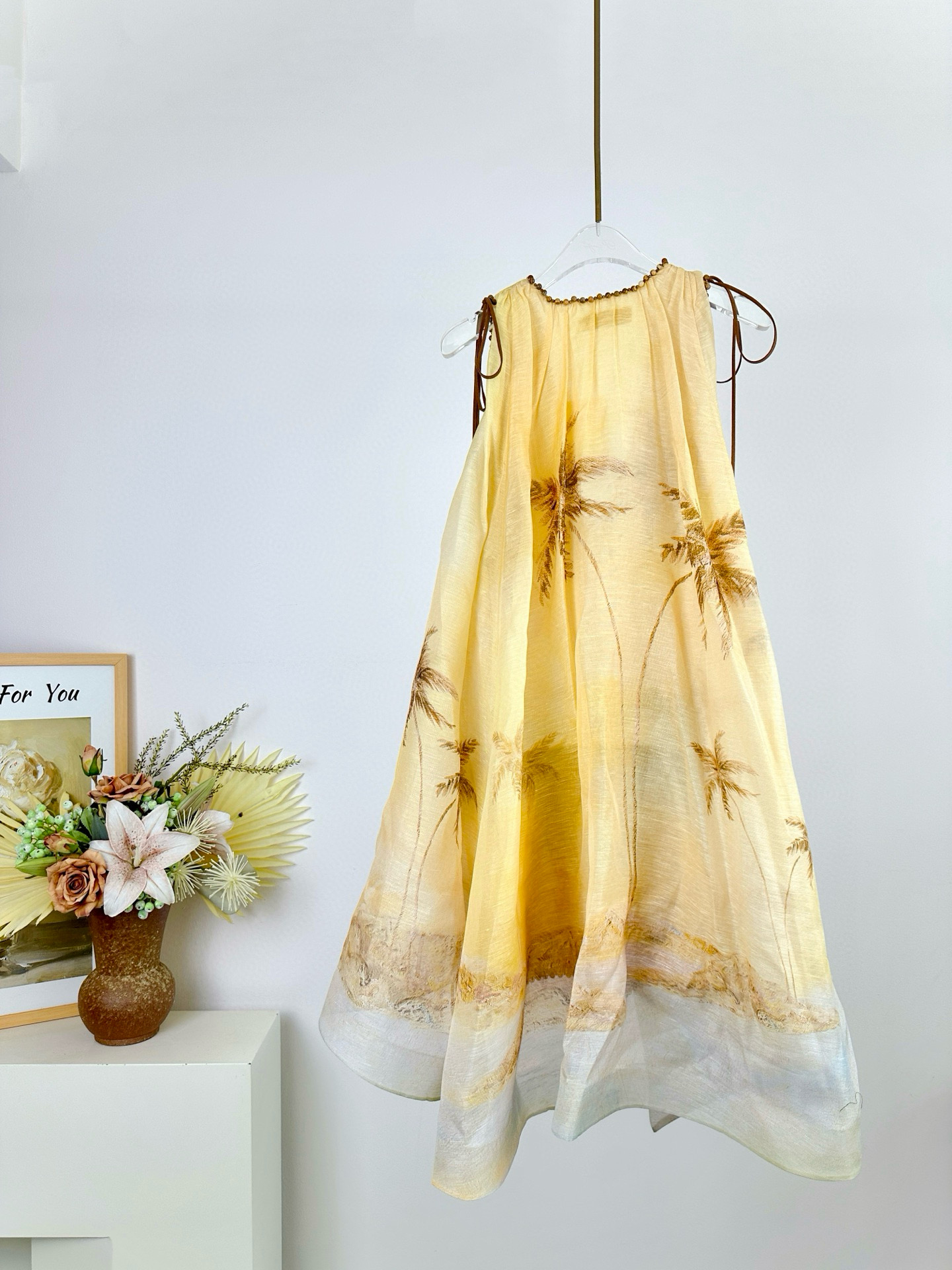 NIGO Zimmermann Women's Summer Solid Color Seascape Pattern Printed Silk Linen Ruffle Long Dress #nigo77343