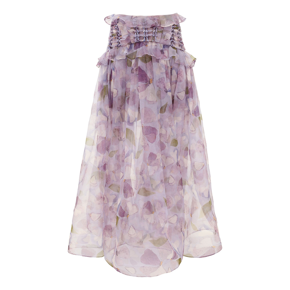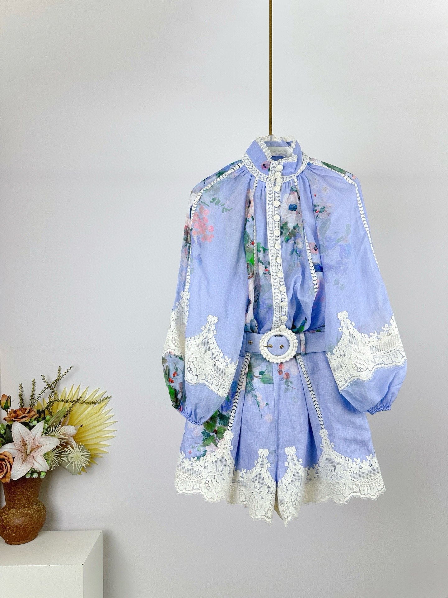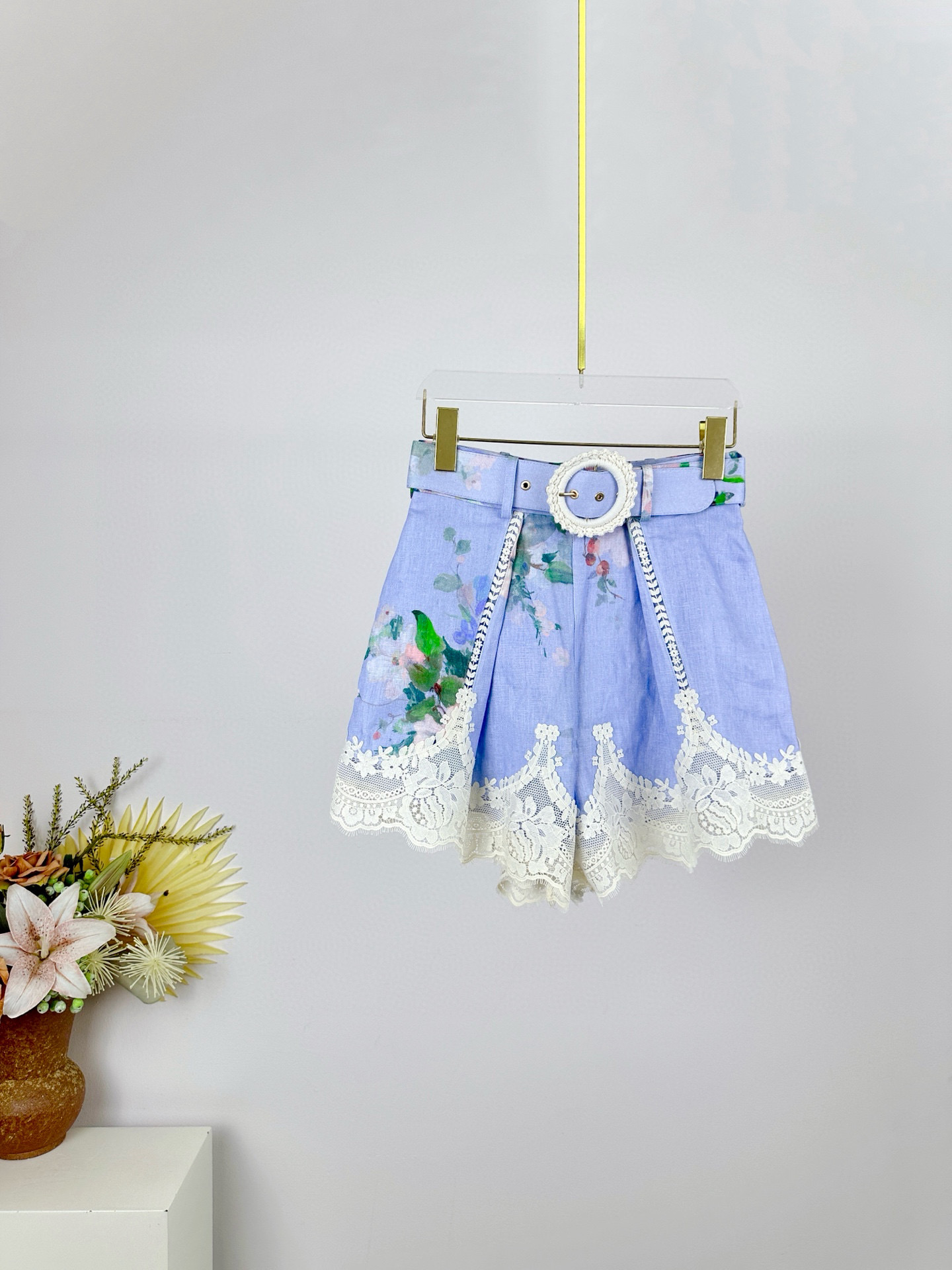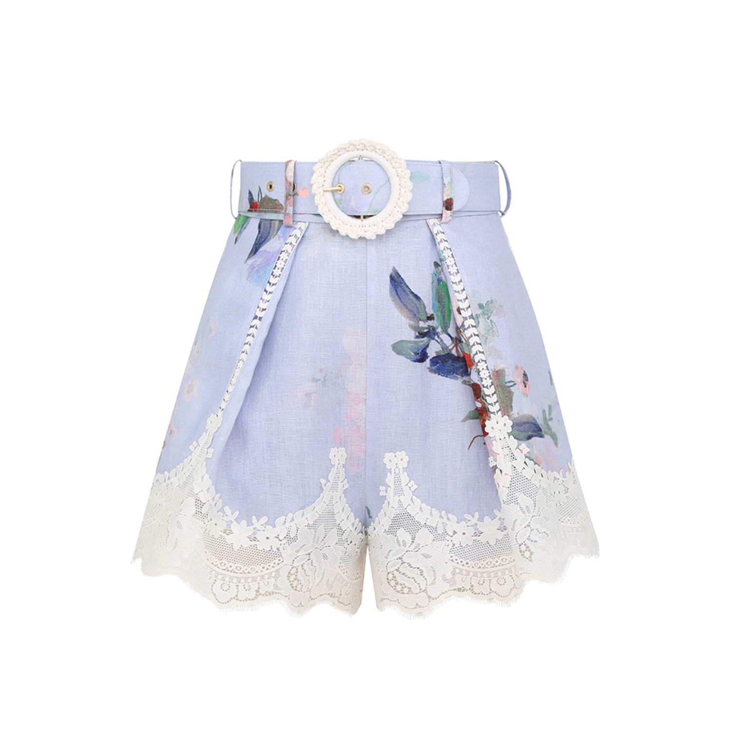 NIGO Zimmermann Women's Summer Solid Color Seascape Pattern Printed Silk Linen Ruffle Short Dress #nigo77344