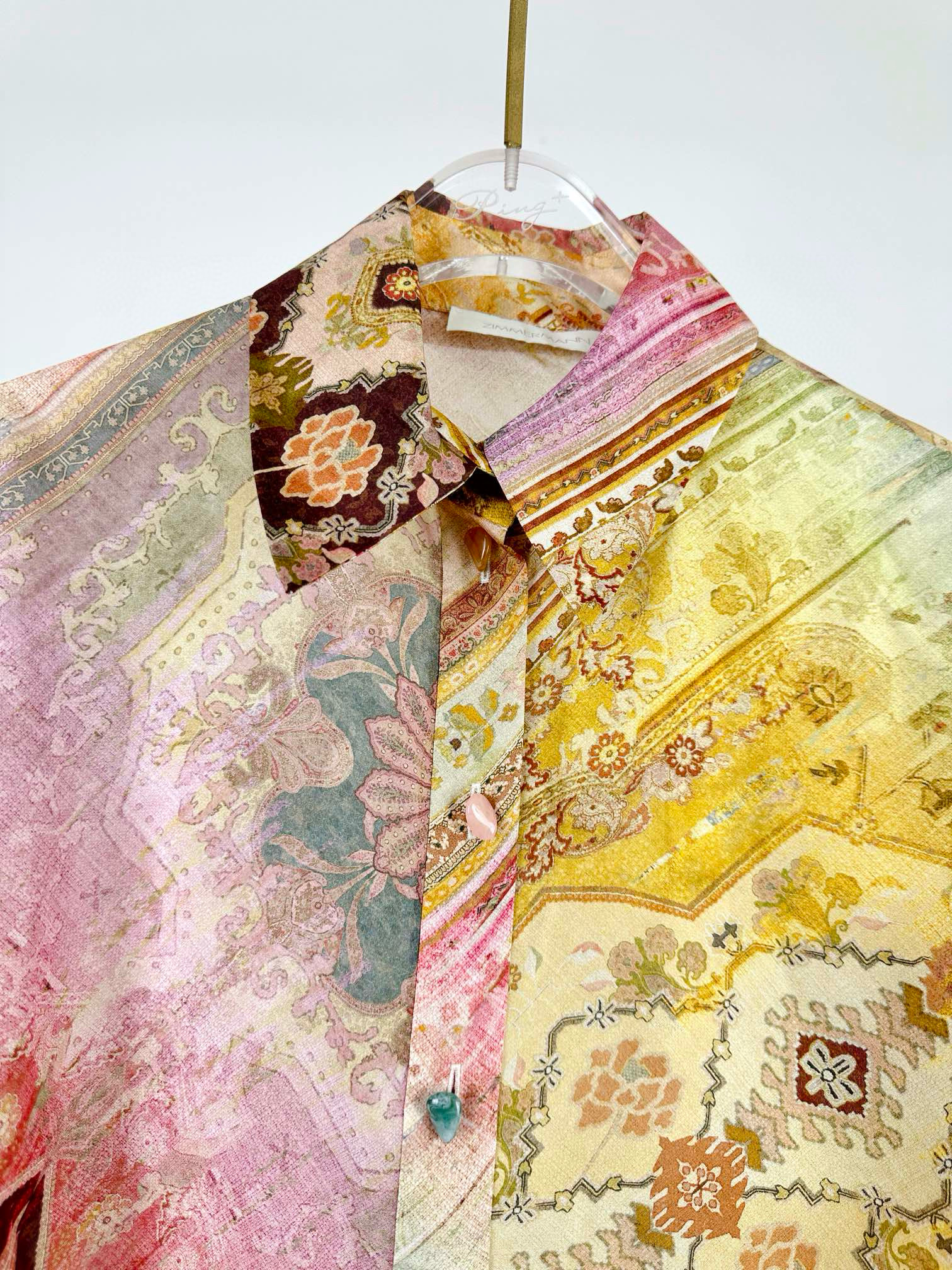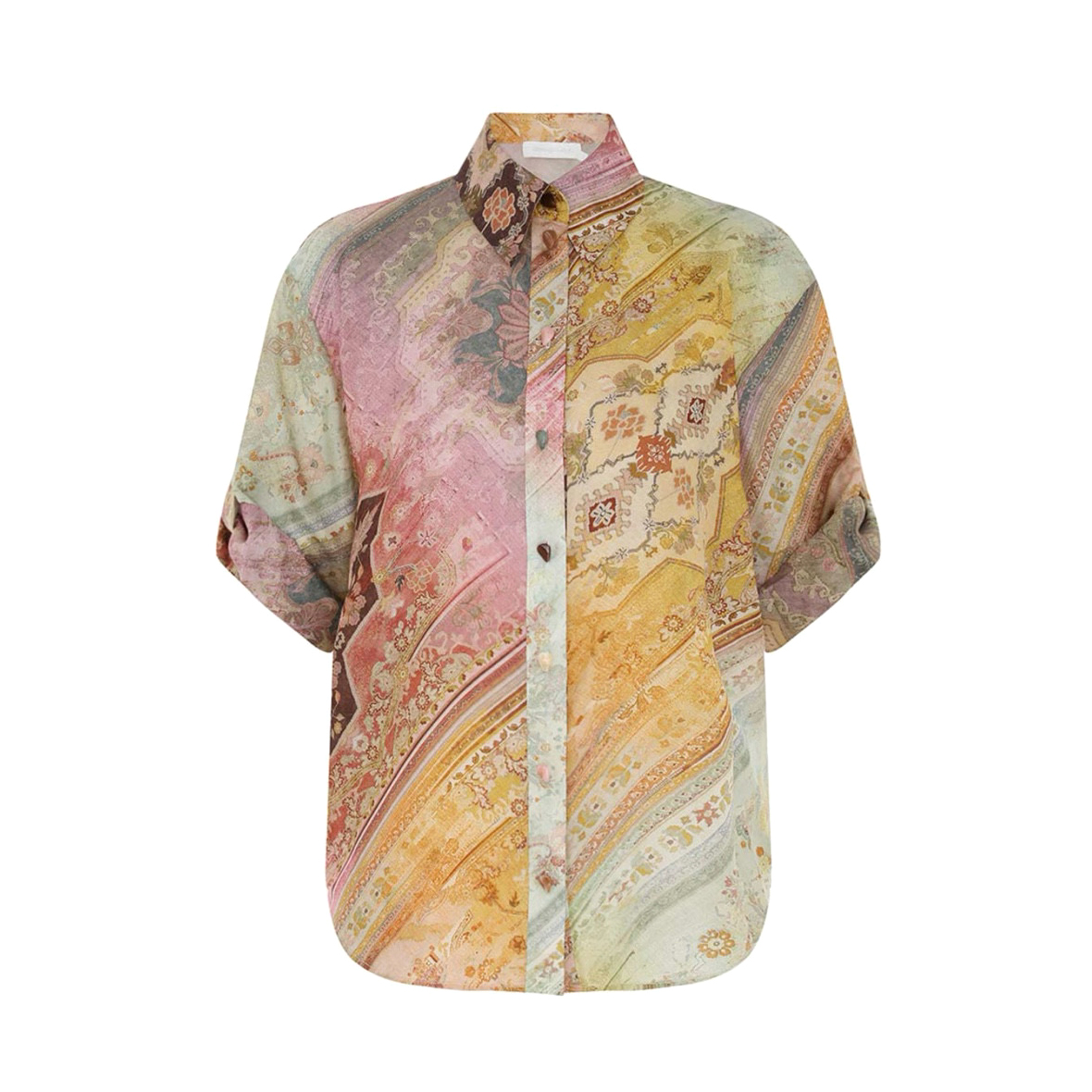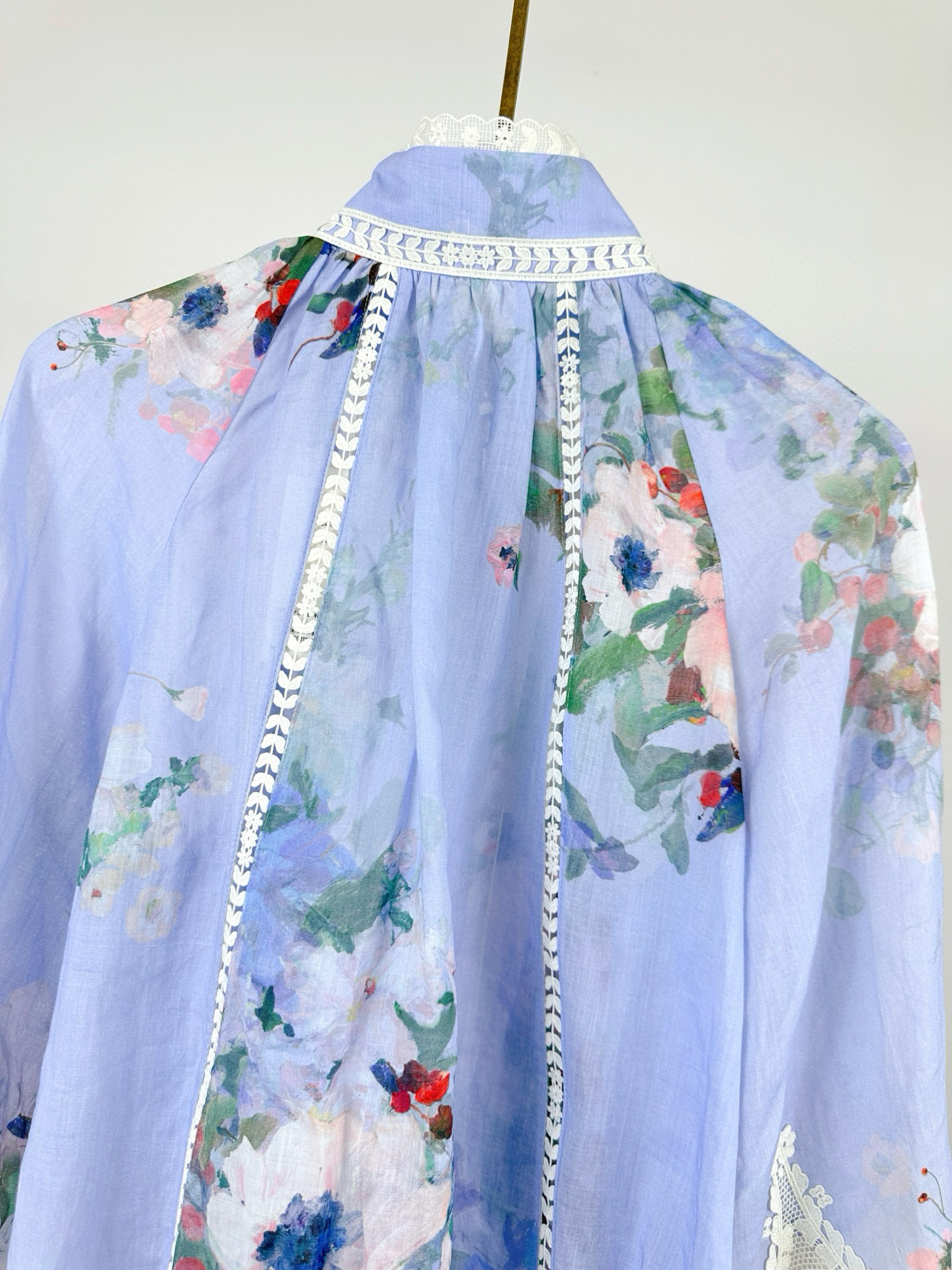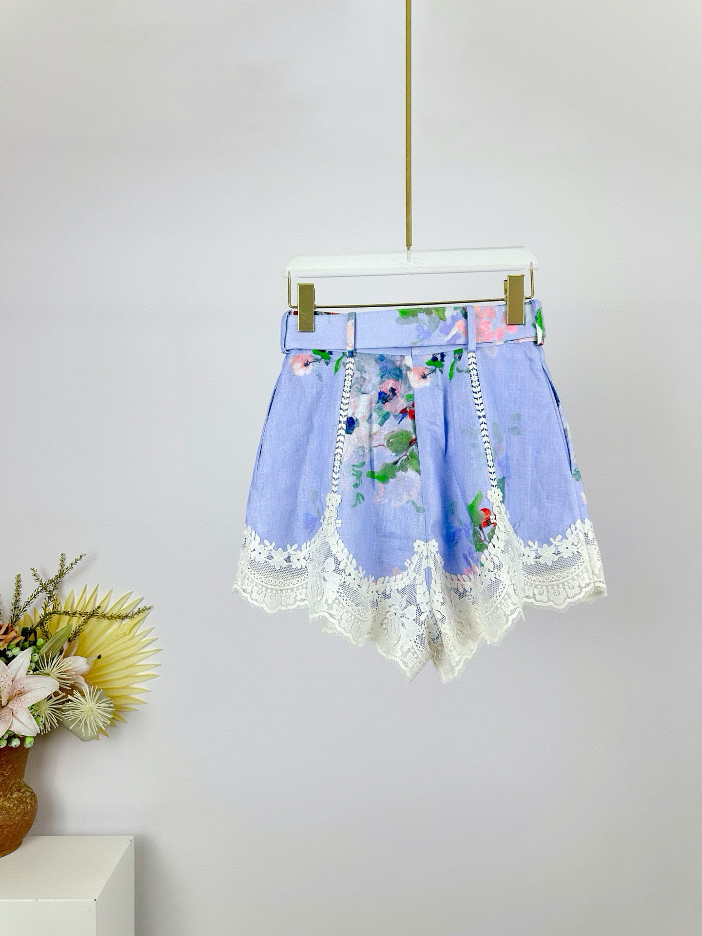NIGO Zimmermann Women's Summer Solid Color Seascape Pattern Printed Silk Linen Ruffle Short Dress #nigo77344