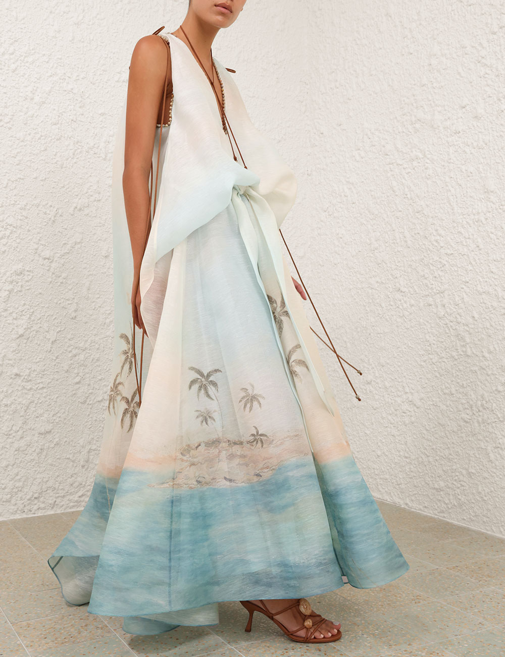 NIGO Zimmermann Women's Summer Solid Color Seascape Pattern Printed V-neck Sleeveless Long Dress #nigo77342