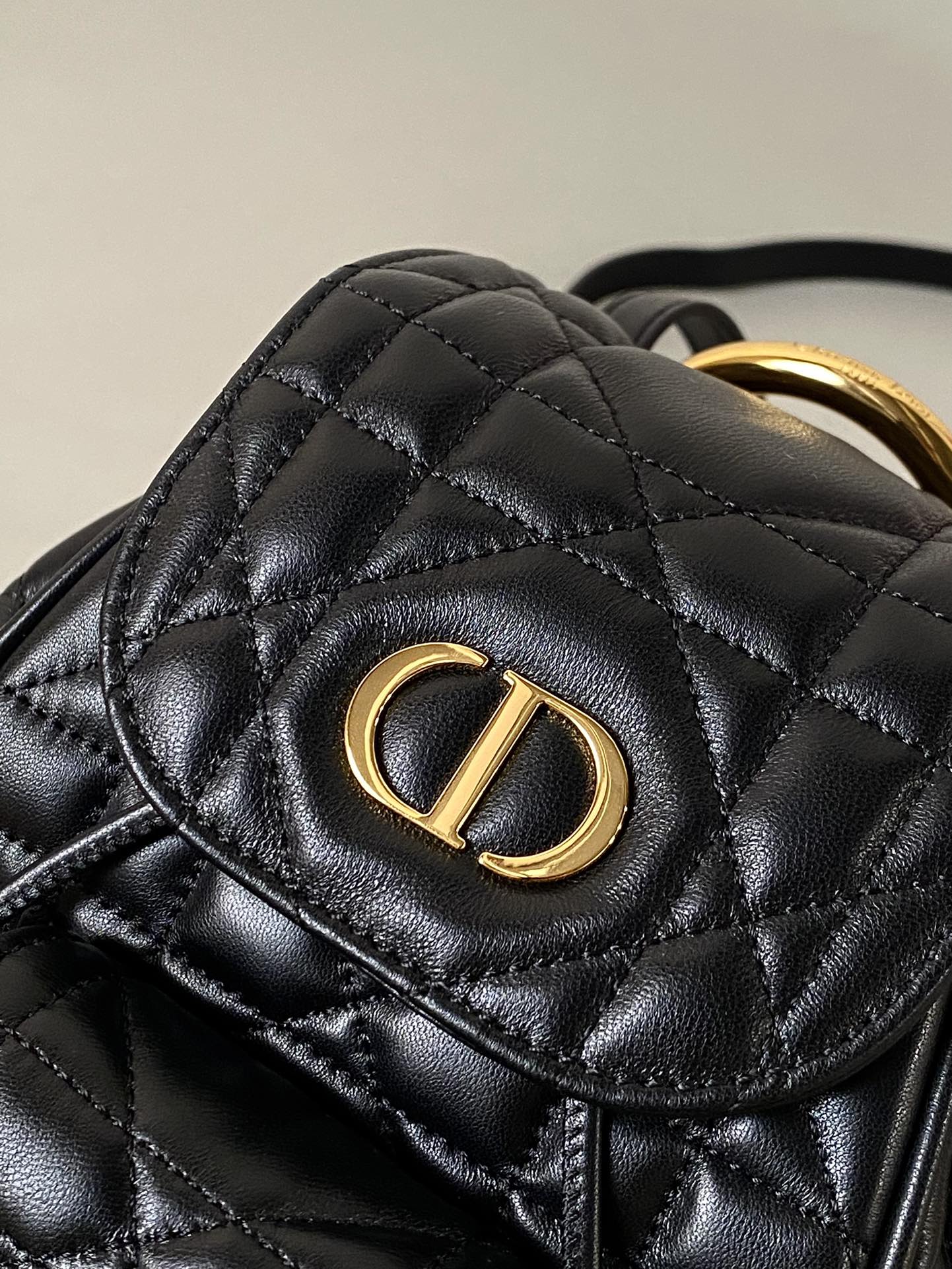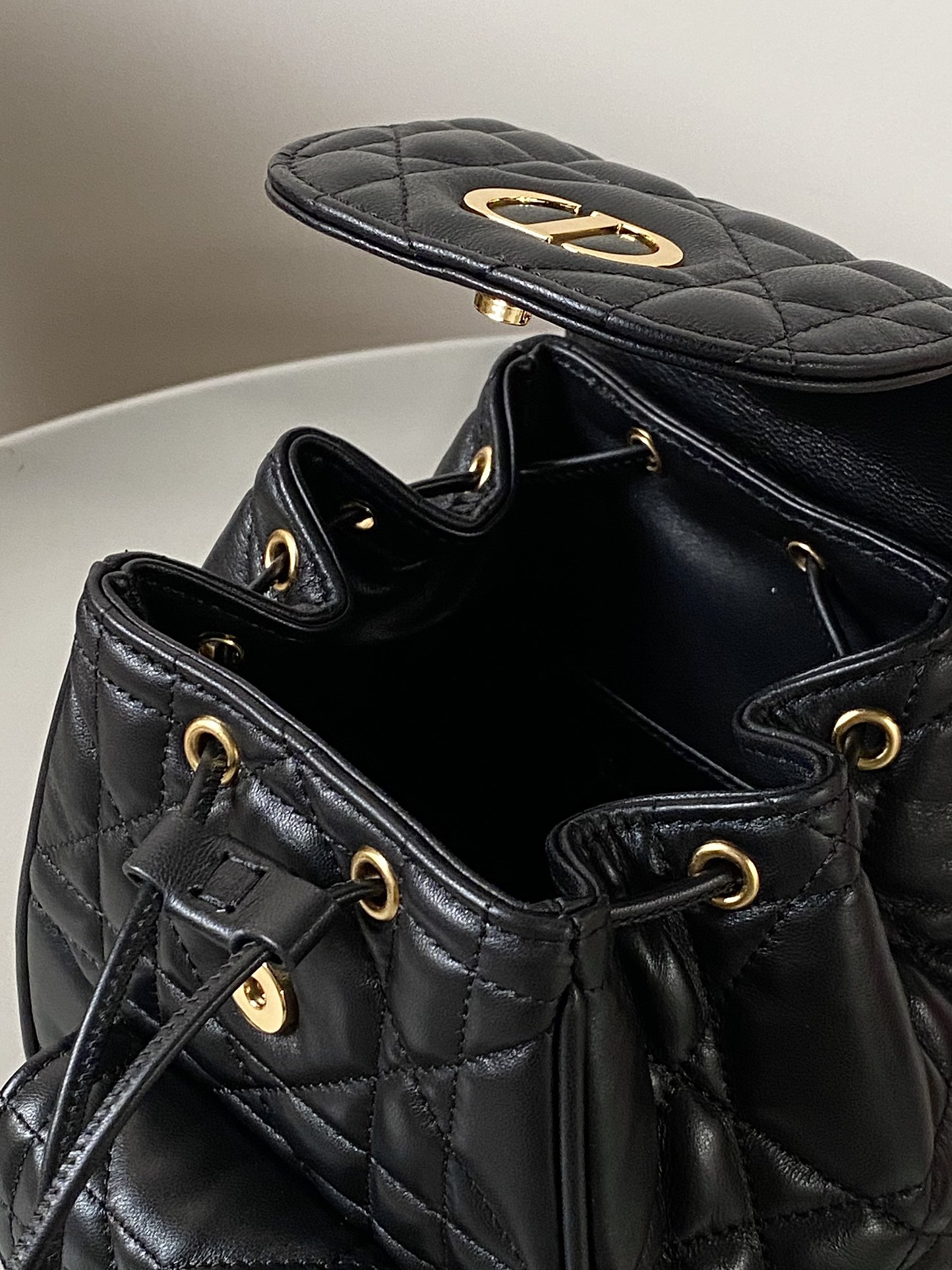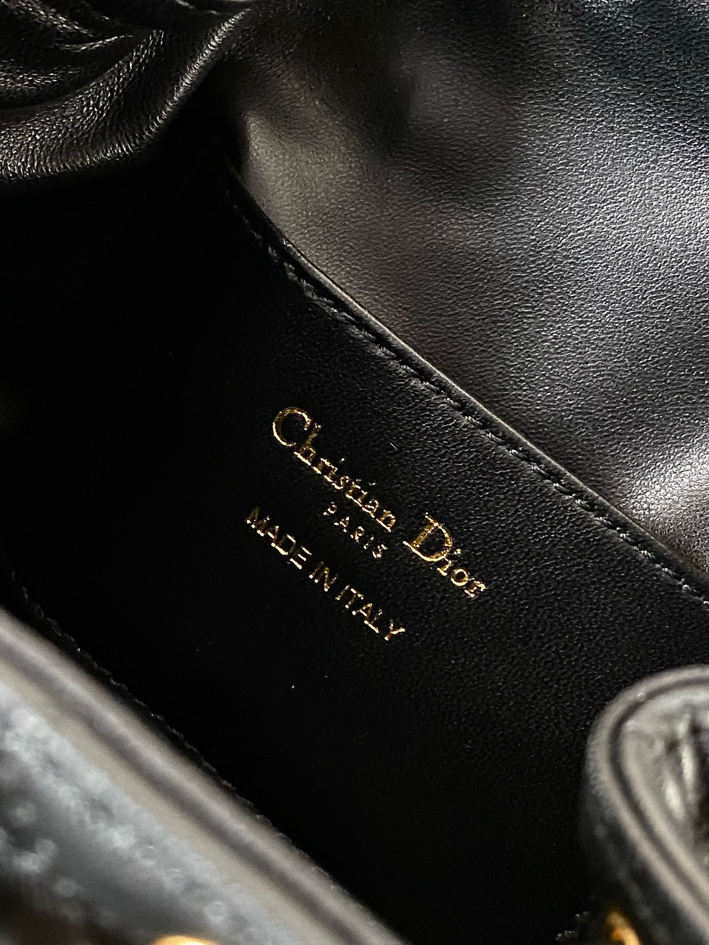 NIGO Dior CARO Women's Black Adjustable Leather Shoulder Strap Flap Drawstring Closure Shoulder Bag Bags #nigo73617