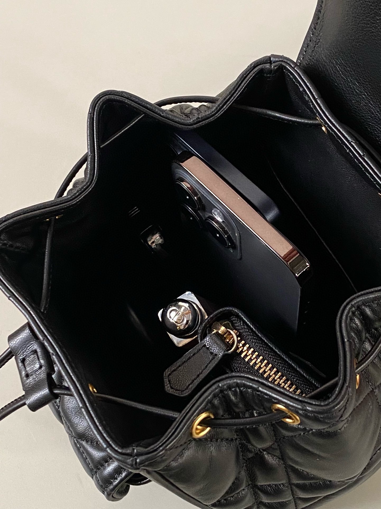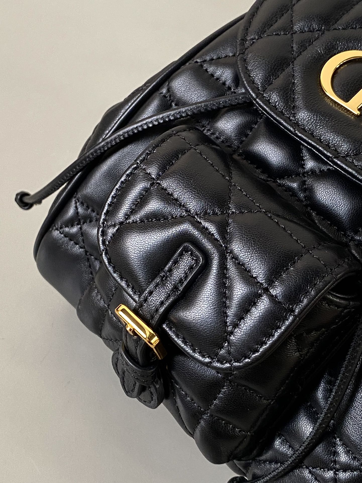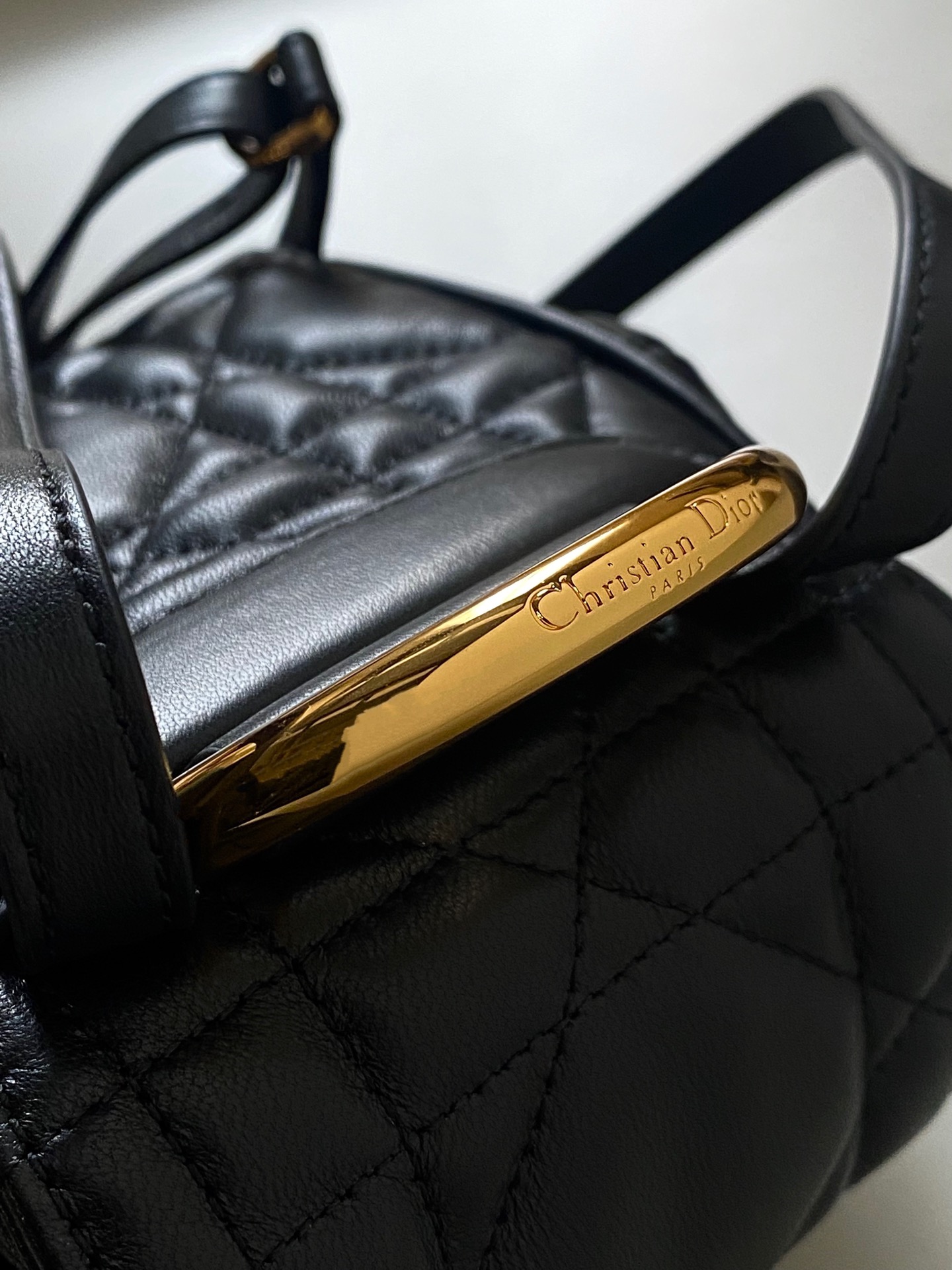 NIGO Dior CARO Women's Black Adjustable Leather Shoulder Strap Flap Drawstring Closure Shoulder Bag Bags #nigo73617