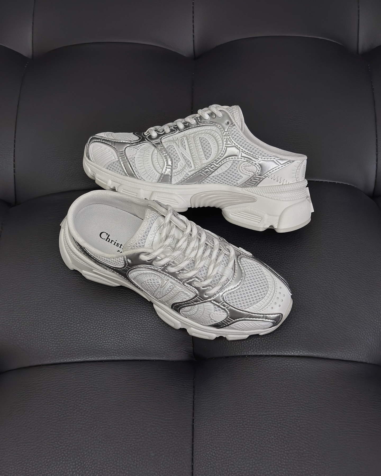 NIGO Dior Chrono Women's Spring/autumn Two-tone Mesh Fabric Round Toe Lace-up Slip-on Low-top Shoes Fashion Casual #nigo78135