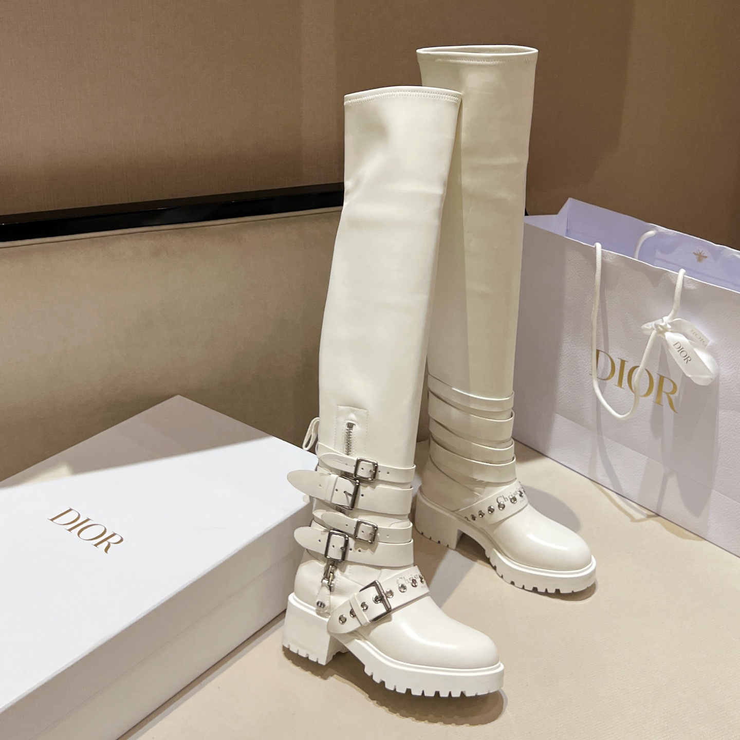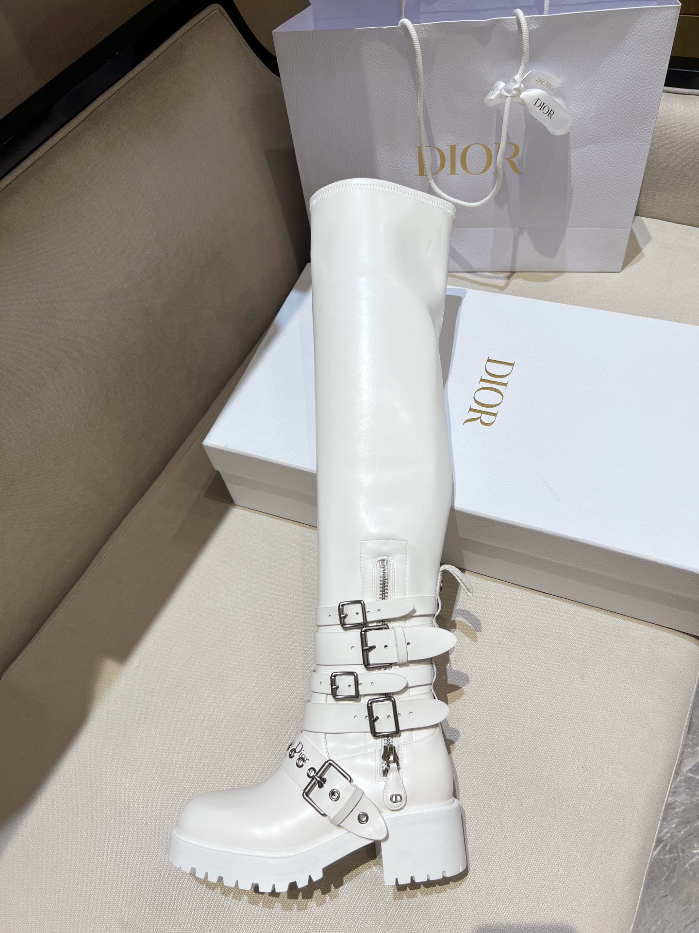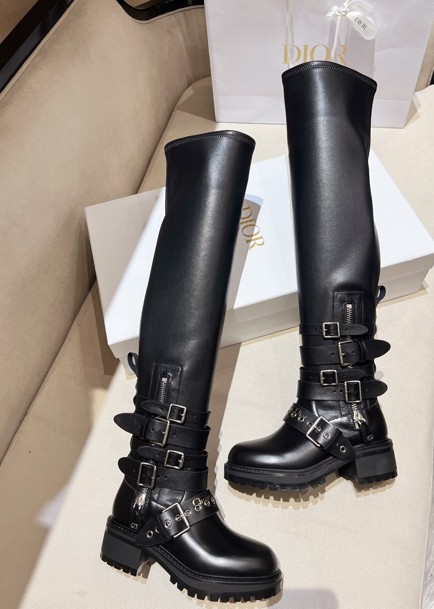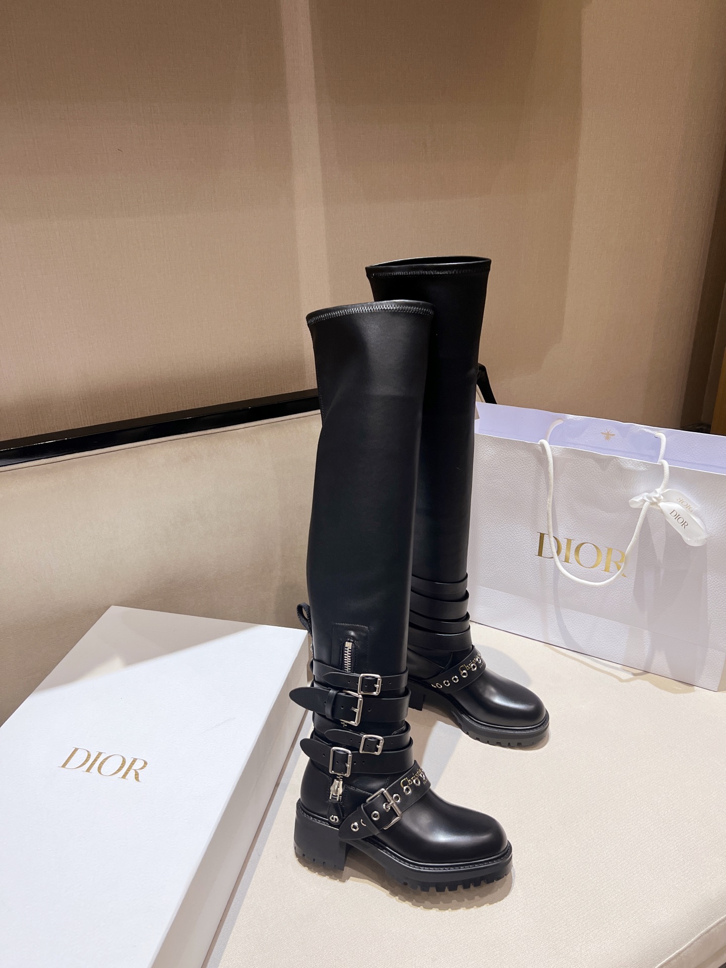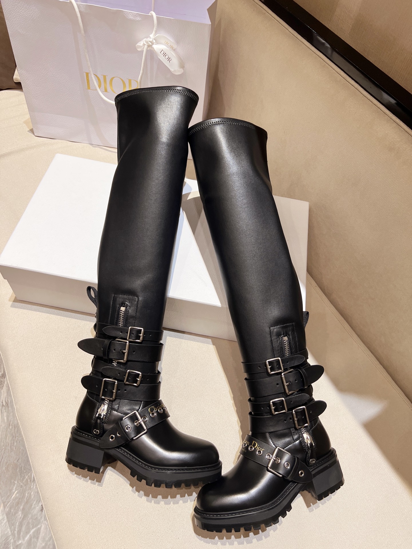 NIGO Dior D-Fight Women's Fall/Winter Classic Fashion Round-Toe Zipper Chunky Heel Leather Over-the Knee Boots Shoes #nigo78766