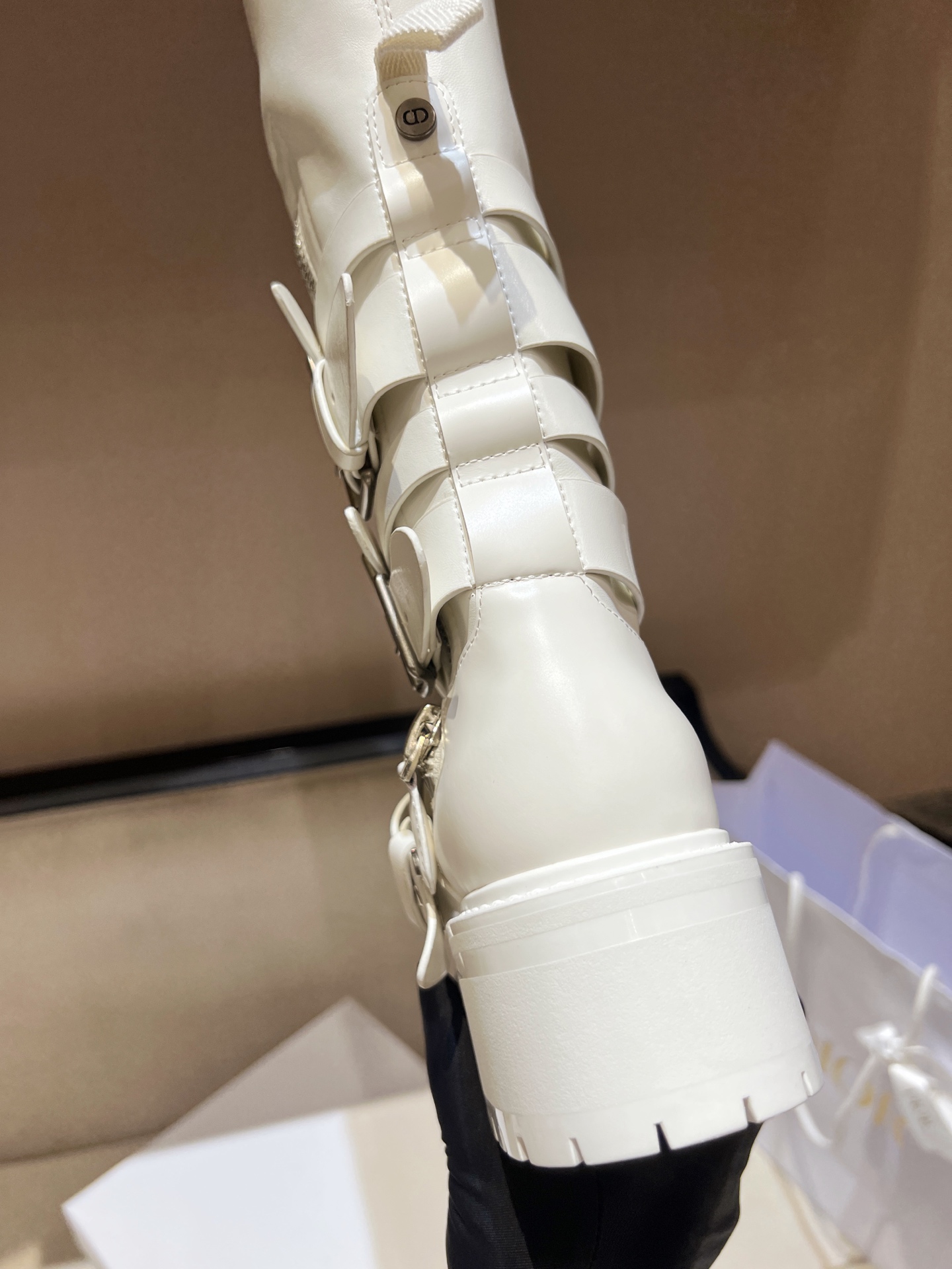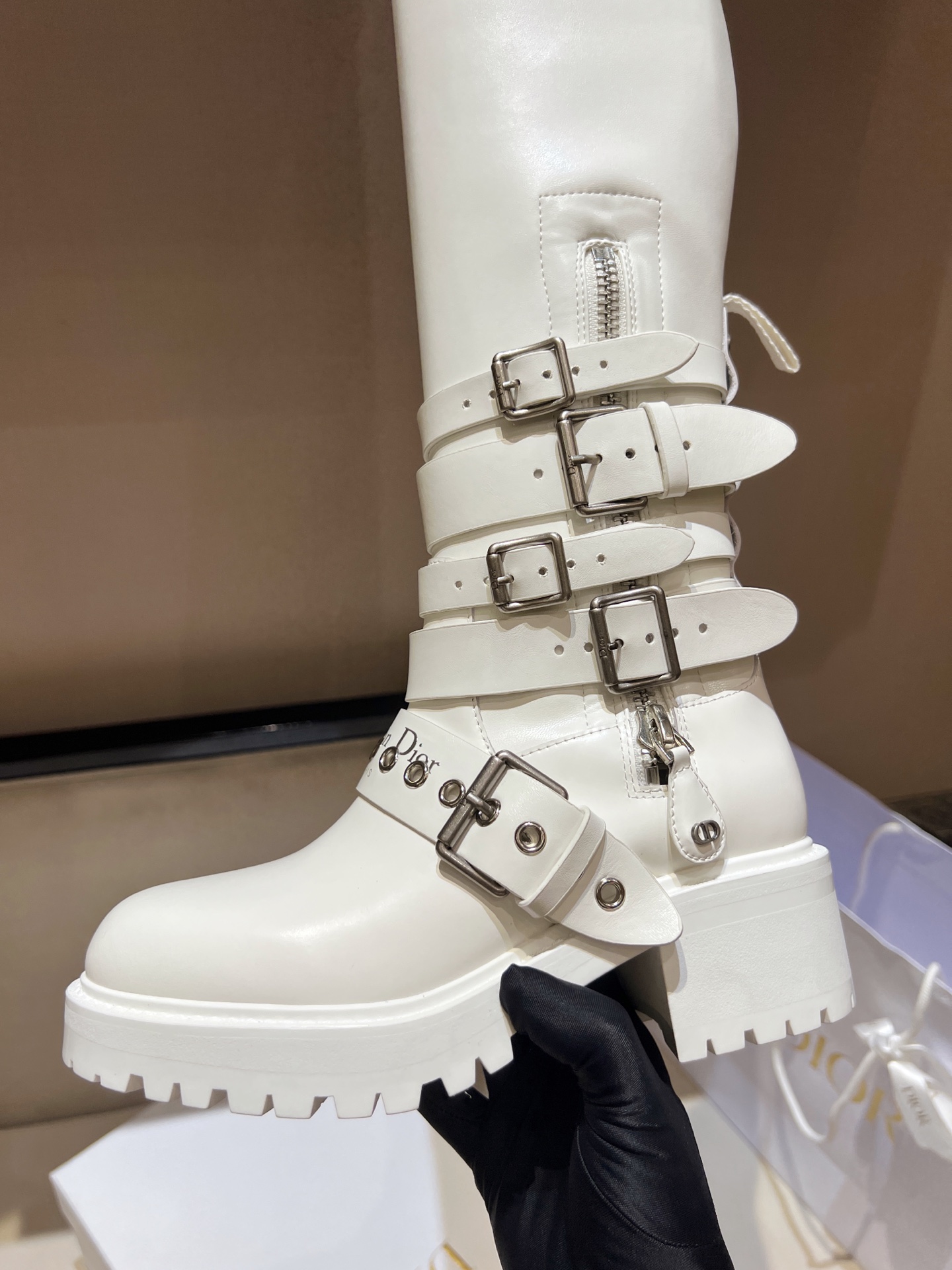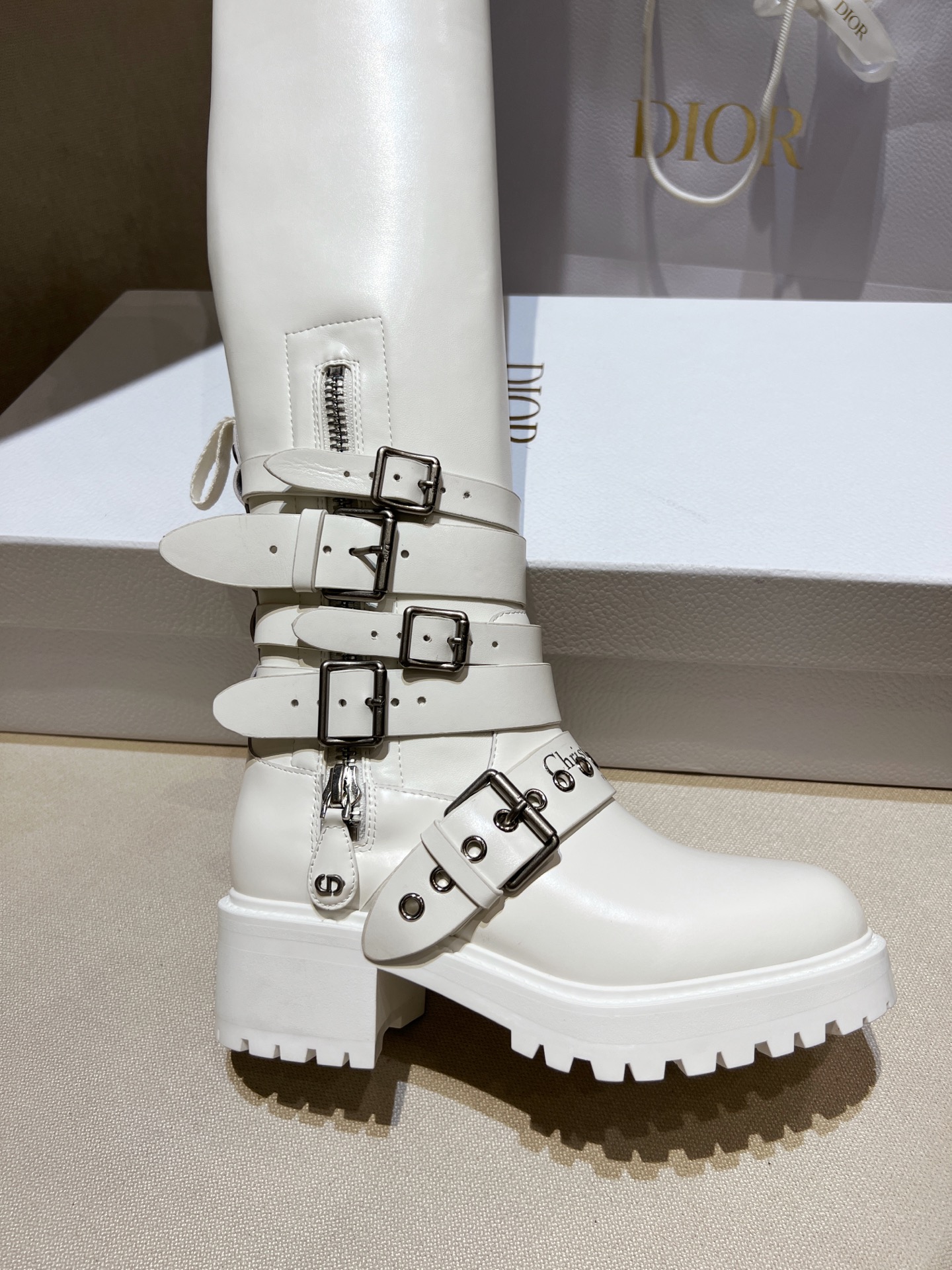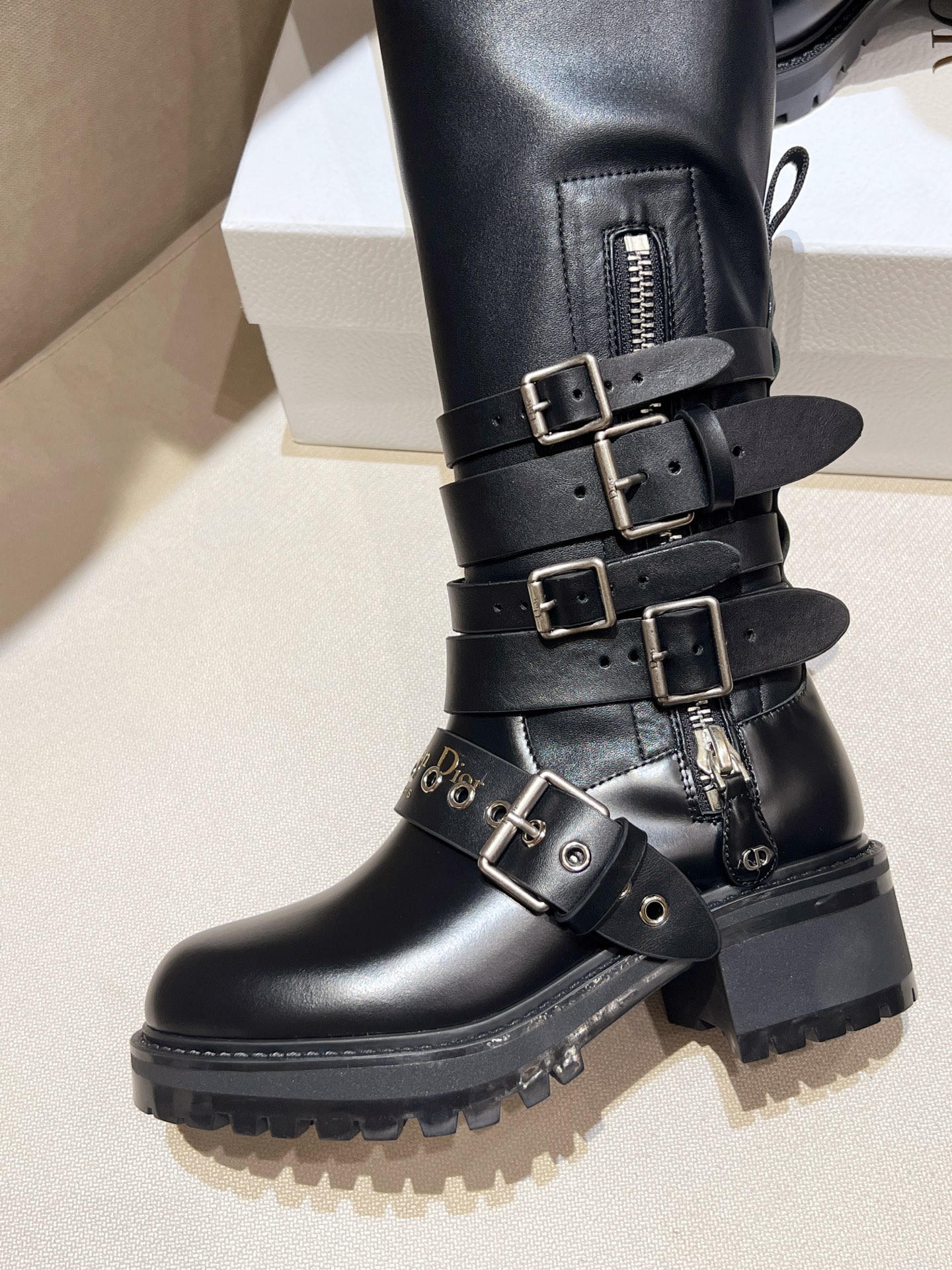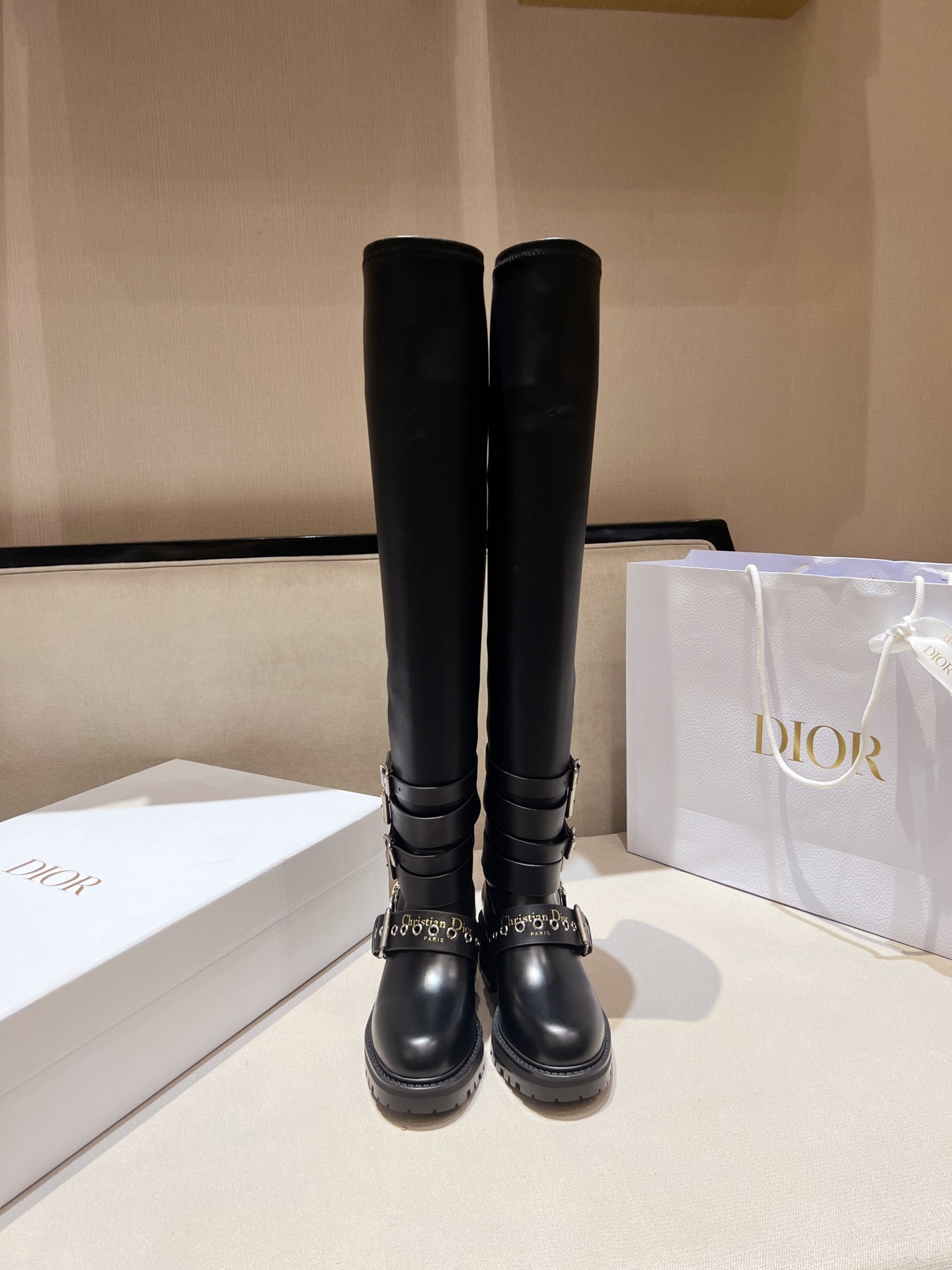 NIGO Dior D-Fight Women's Fall/Winter Classic Fashion Round-Toe Zipper Chunky Heel Leather Over-the Knee Boots Shoes #nigo78766