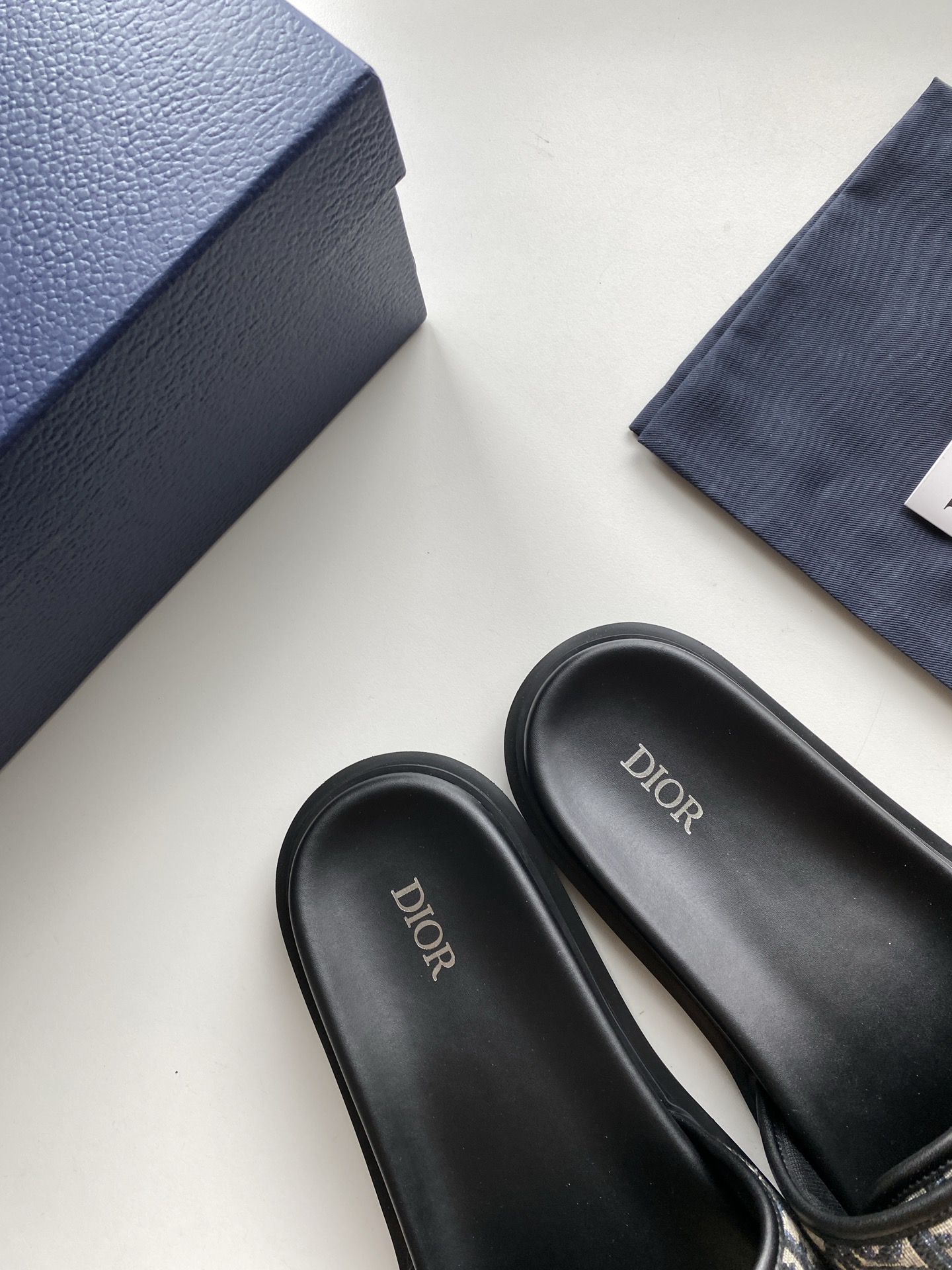 NIGO Dior Dior Aqua Men's And Women's Summer Fashion Casual Round Toe Open Back Oblique Print Fabric Flip Flops Sandals Shoes #nigo79178