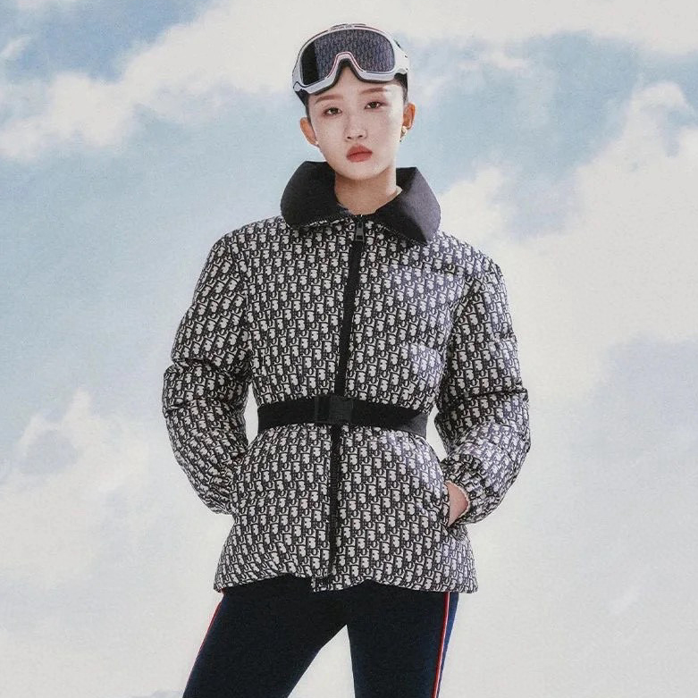 NIGO Dior DiorAlps Women's Winter Fashion Casual Twill Print Belted High-Neck Zipper Cotton Jacket #nigo78982