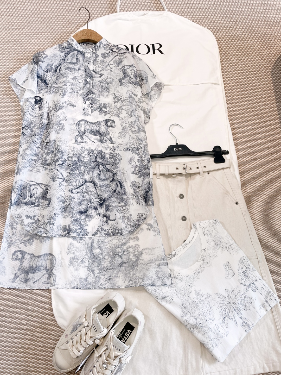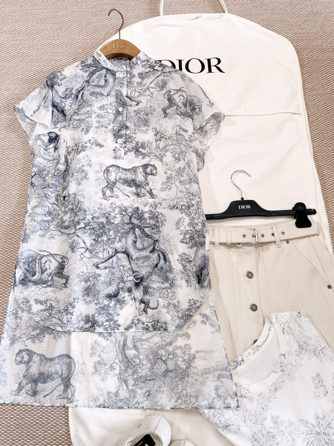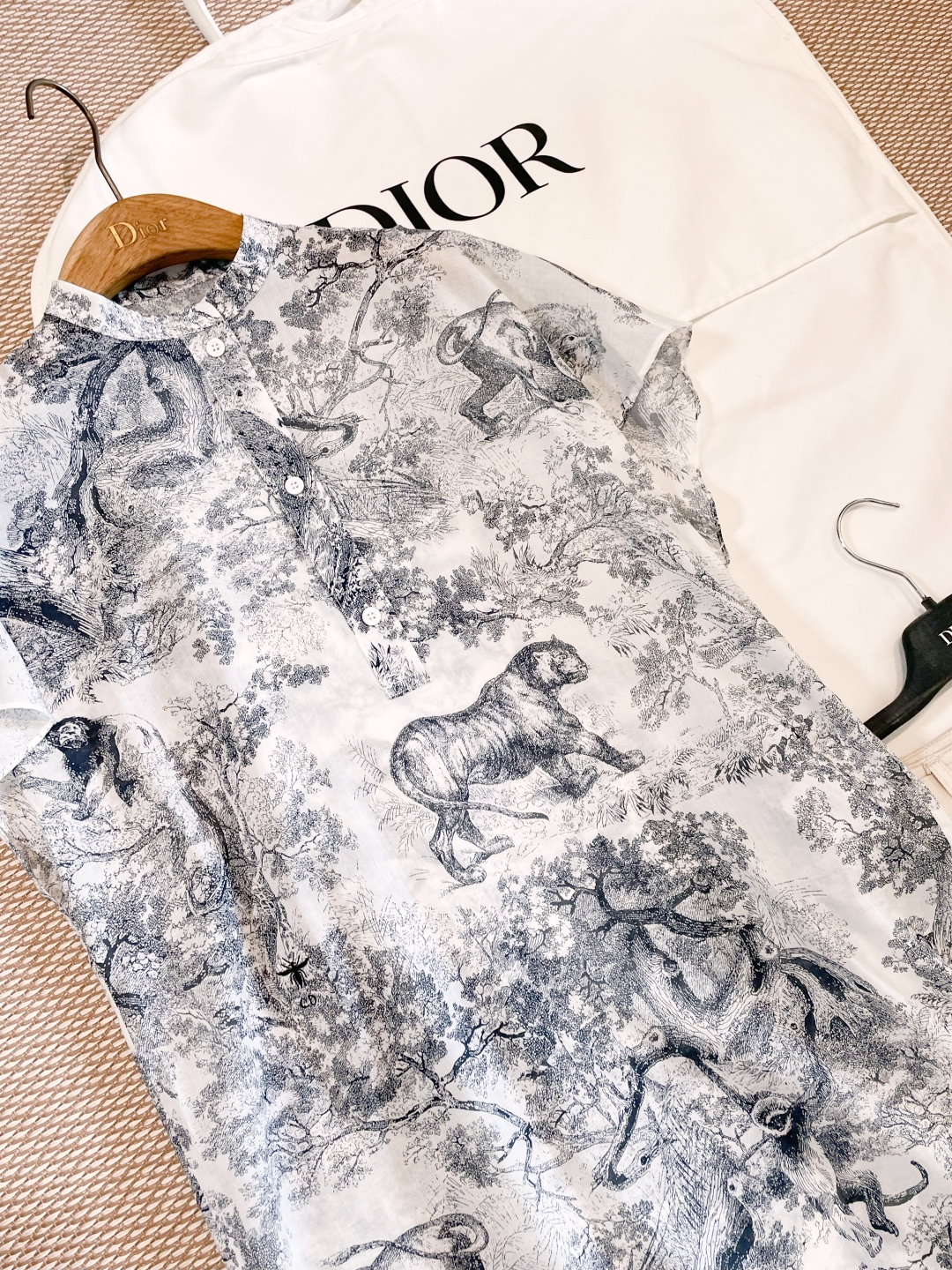 NIGO Dior Dioriviera Long Covered Sleeve Shirt Women's Summer White Cotton Fashion Button Standing Collar Long Top T-Shirt #nigo81235