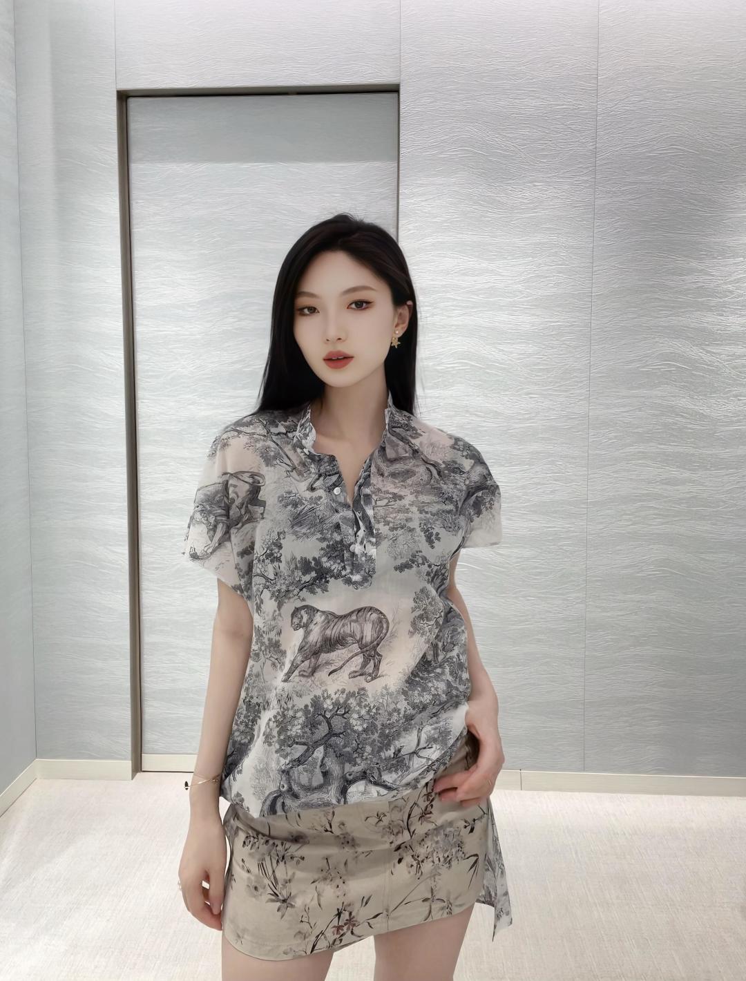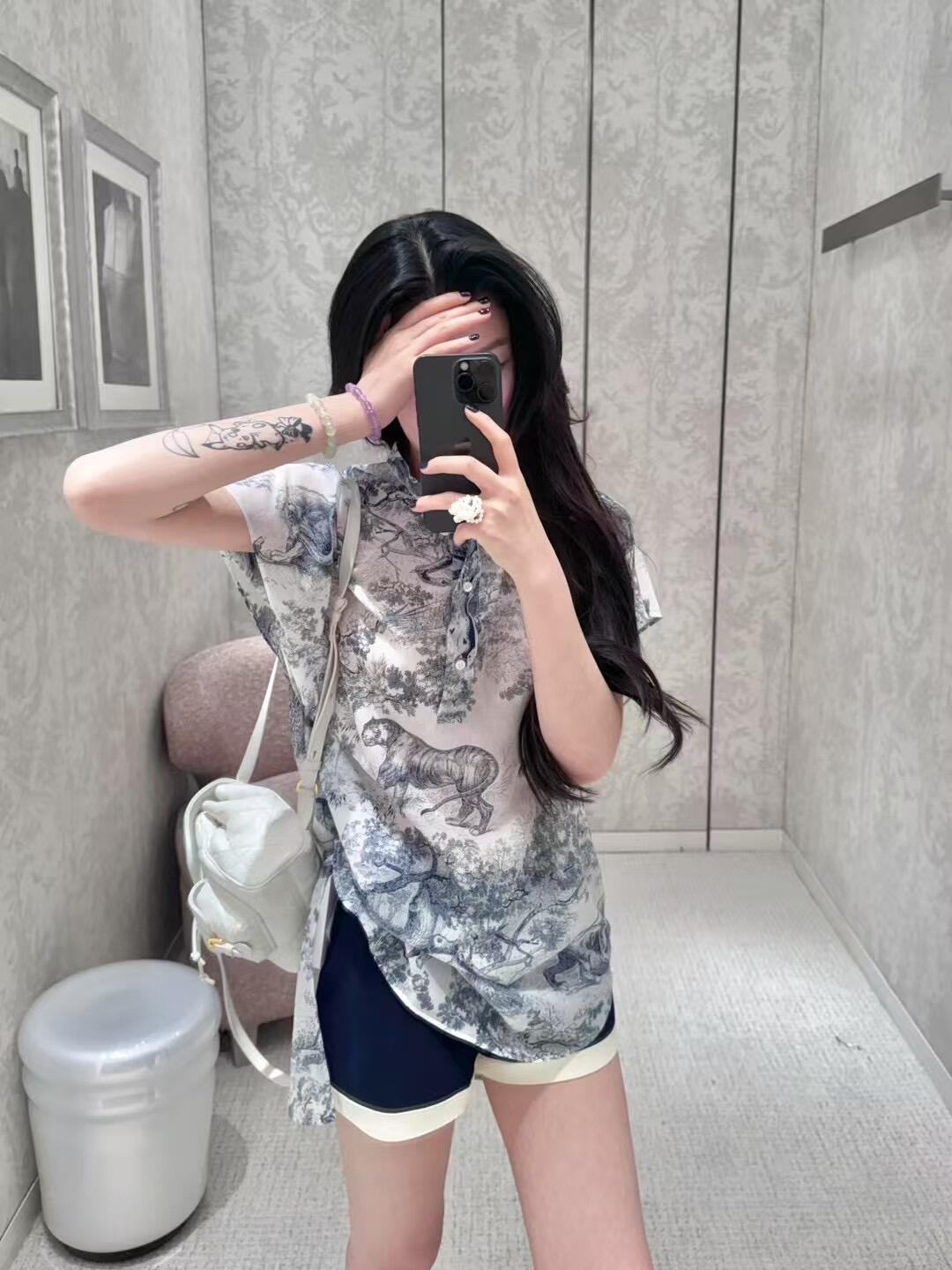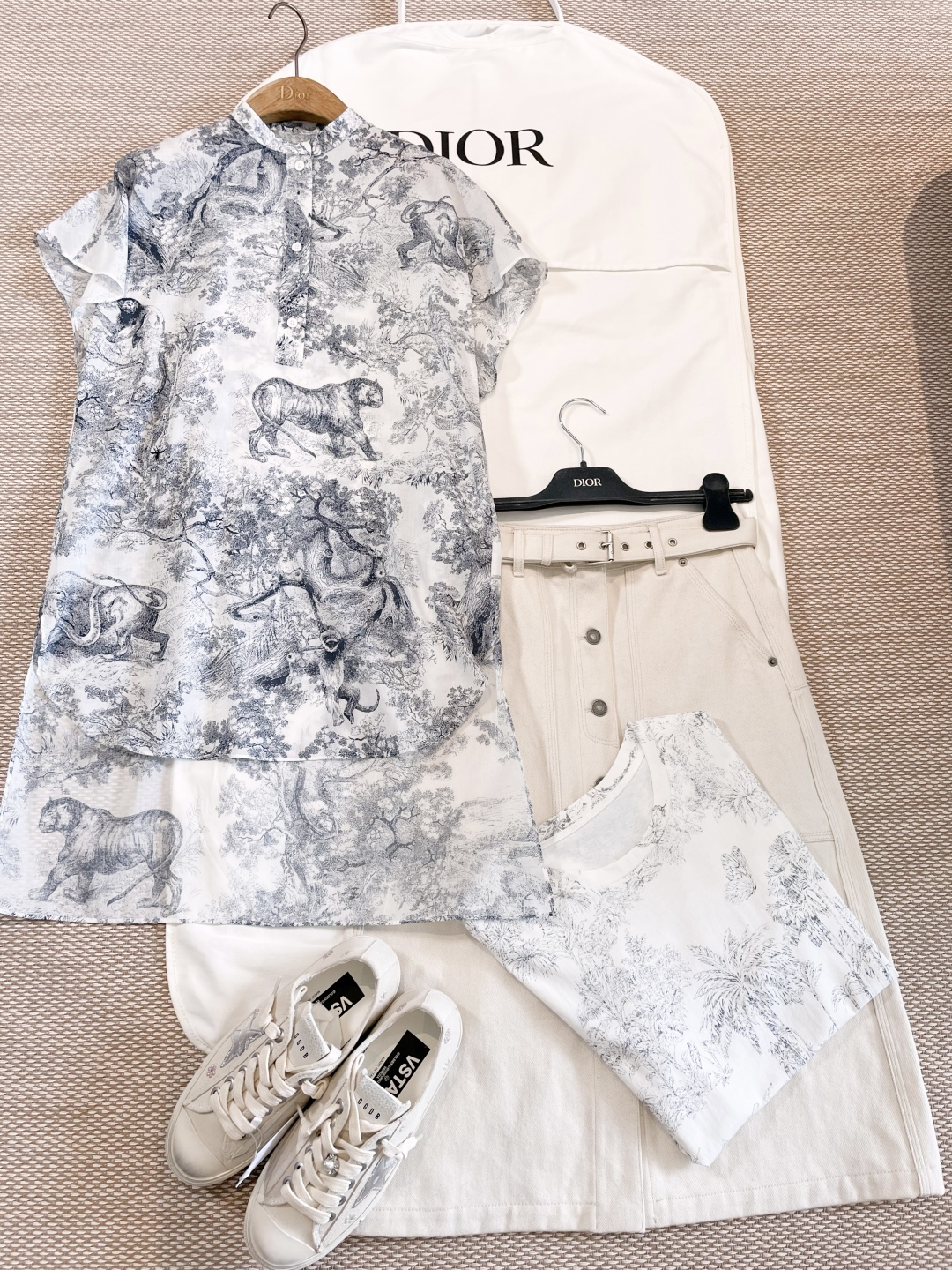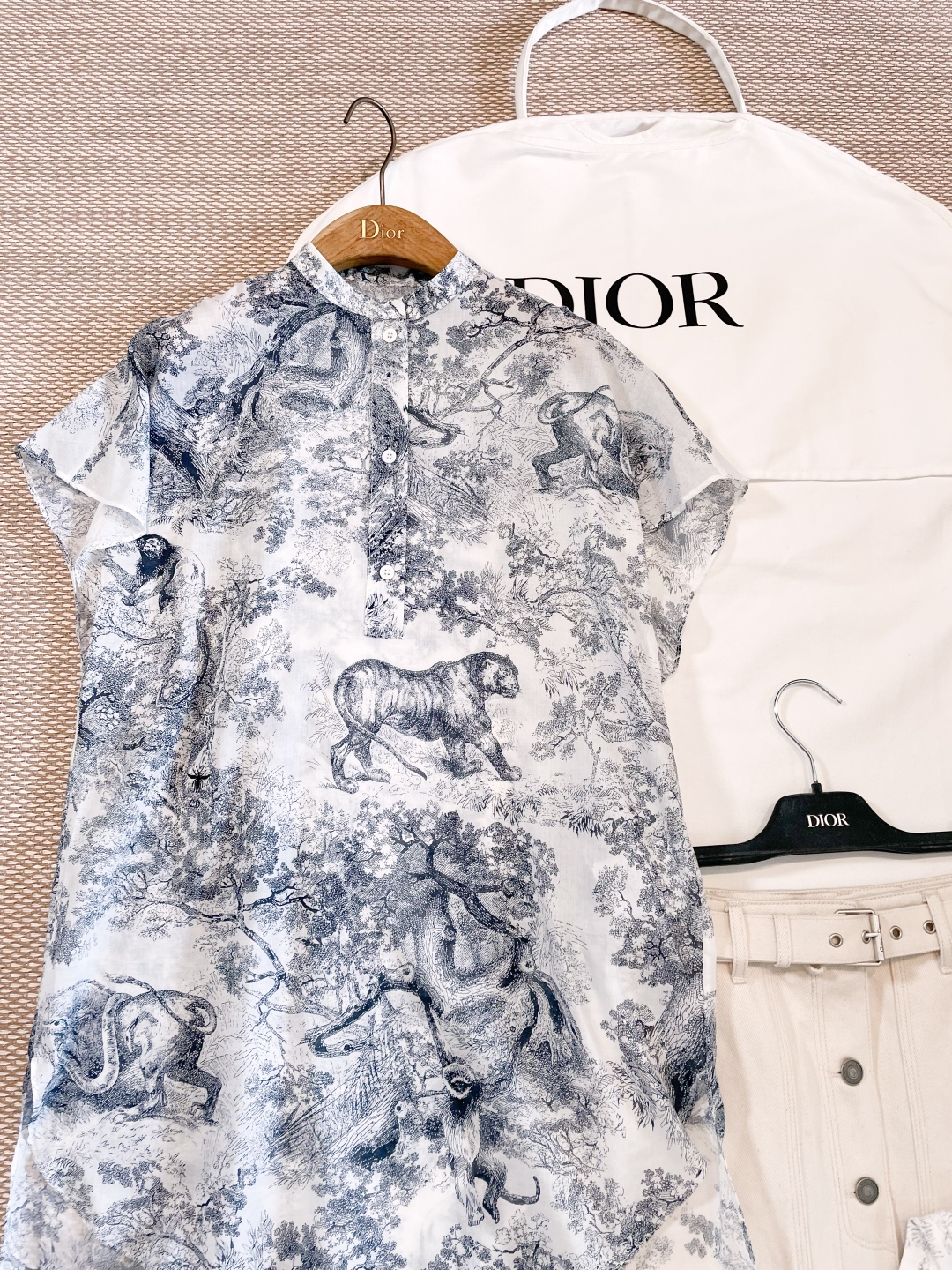 NIGO Dior Dioriviera Long Covered Sleeve Shirt Women's Summer White Cotton Fashion Button Standing Collar Long Top T-Shirt #nigo81235